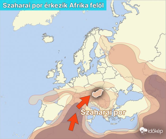 A meleg levegővel együtt a magasabb légrétegekben szaharai por is érkezik szerda délutántól, előbb a Dunántúl, majd a keleti országrész fölé is, amit a szerda estétől előforduló csapadék kimoshat a légkörből, így ismét saras eső eshet.