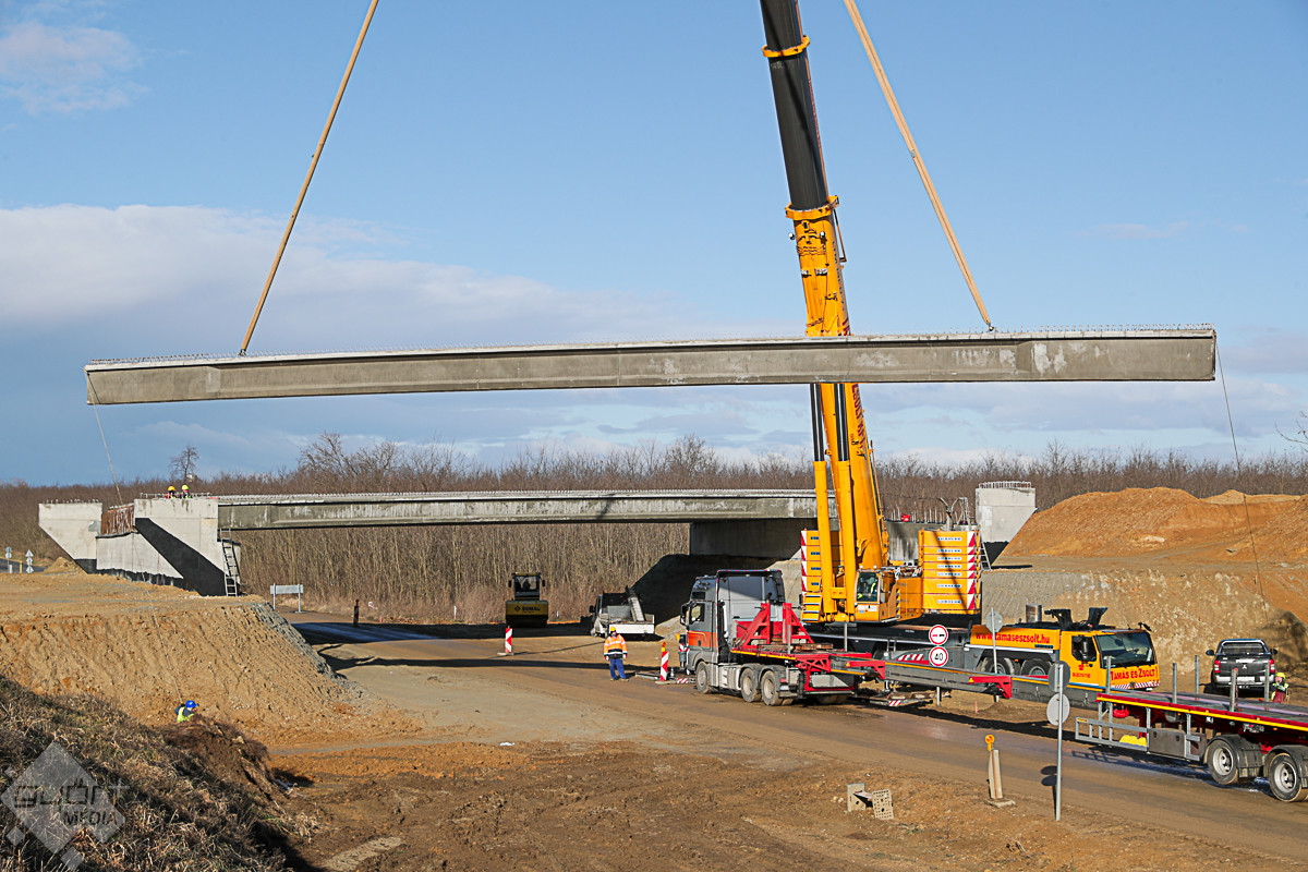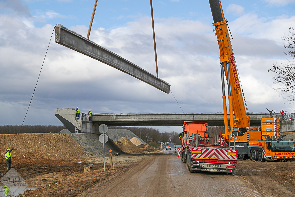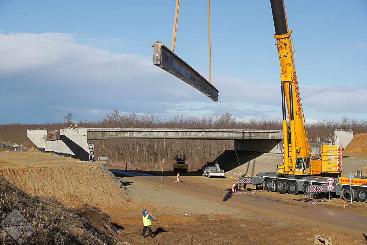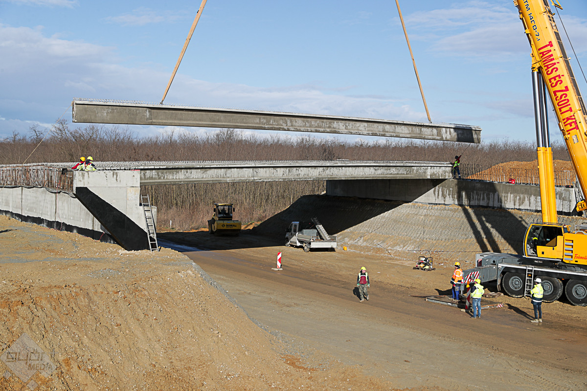 A kétnapos munka során 32 darab, egyenként több mint 30 méter hosszú és 26 tonnás vasbeton szerkezetet helyeznek el. A látványos munkálatokat szerdán, a helyszínen tekintette meg Kara Ákos és Kovács Zoltán. A térség országgyűlési képviselői megerősítették, a munkálatok a tervek szerint zajlanak.