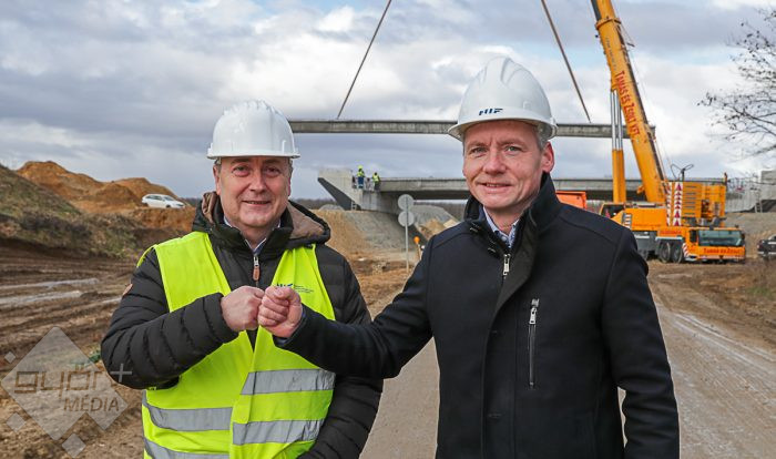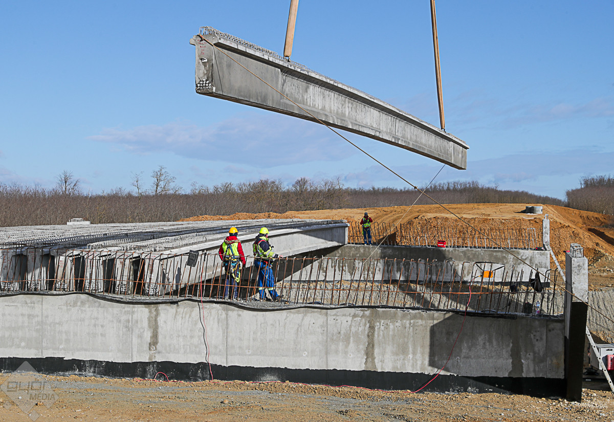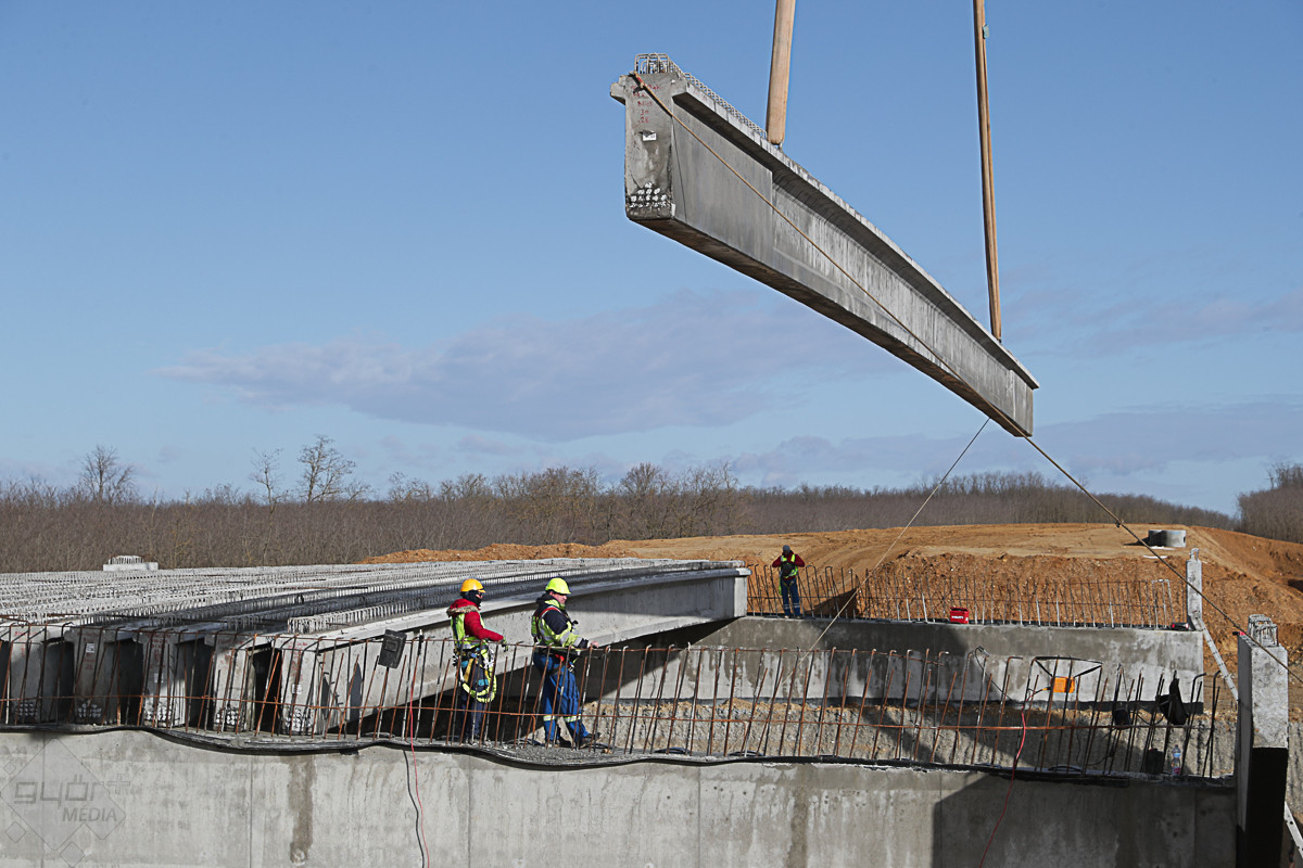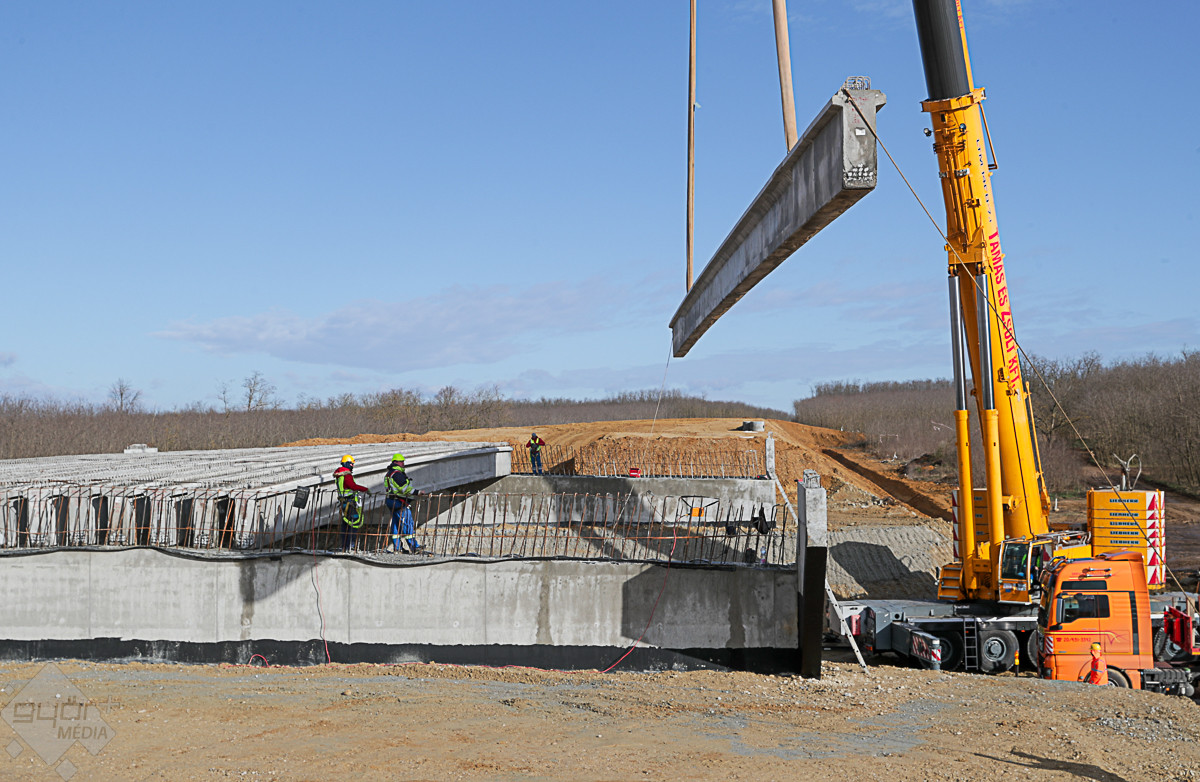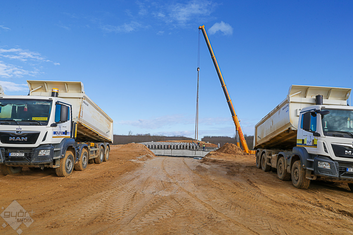 A kétnapos munka során 32 darab, egyenként több mint 30 méter hosszú és 26 tonnás vasbeton szerkezetet helyeznek el. A látványos munkálatokat szerdán, a helyszínen tekintette meg Kara Ákos és Kovács Zoltán. A térség országgyűlési képviselői megerősítették, a munkálatok a tervek szerint zajlanak.
