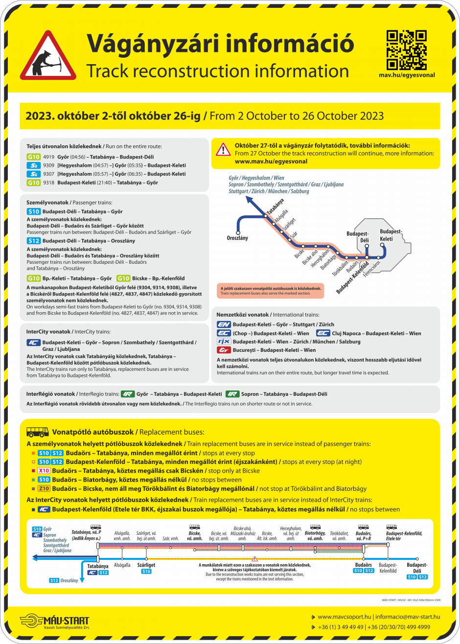 A változásokról és a menetrendekről a mav.hu/egyesvonal weboldalon tájékozódhatnak.