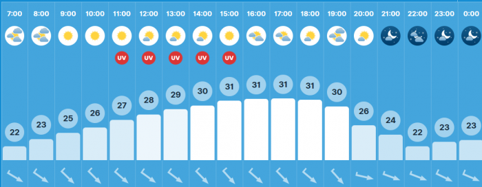 Érdemes árnyékban, fedett helyen tartózkodni 11 és 16 óra között.