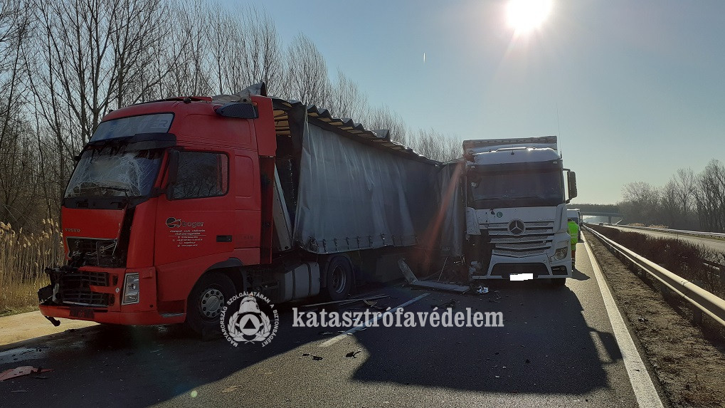 Három kamion karambolozott az M1-es autópálya 148-as kilométerénél, Lébény közelében, a Hegyeshalom irányába vezető oldalon hétfőn reggel. A balesethez a lébényi hivatásos tűzoltókat riasztották. Az egységek áramtalanították a járműveket. A balesetben egy ember könnyebben sérült, őt kórházba szállította a mentőszolgálat.