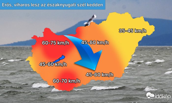 Sokfelé erős, helyenként viharos lesz az északnyugatira forduló szél. Kora délután 4-9 fokra van kilátás.