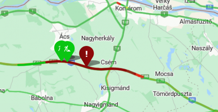 Komárom térségében aszfaltoznak, ami a jelek szerint egyre komolyabb kihívás a vasárnap délutáni forgalom számára. Az Útinform élő, online térképe szerint ugyanis több kilométeres torlódás alakult ki:
