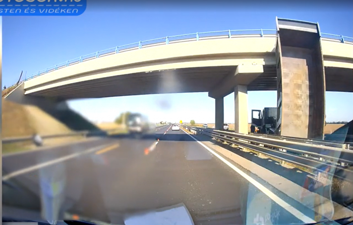 A BpiAutósok oldal kapta meg a felvételt, amelyet az egyik olvasójuk fedélzeti kamerája rögzített. A videóból kiderülnek a meghökkentő-, és igencsak veszélyes baleset részletei: a hatalmas nyergesvontatónak felnyitva maradt a billenőplatója, miközben az M1-es autópályán haladt, Hegyeshalom irányába. A videót ide kattintva lehet megnézni! Az esetről korábban mi itt írtunk: