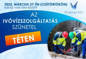 Téten: 2025. március 27-én (csütörtökön) 8:00 és 14:00 óra között hálózatrekonstrukciós munkákat végez Téten a Fő utcában az ivóvízhálózaton. A munkák idején az ivóvízellátás szünetelésére lehet számítani Téten a Fő utca páros oldalán a 12-től a 80. számú ingatlanig. Az időjárás függvényében a munkák időpontja változhat. Csapadékos időjárás esetén a munkákat társaságunk 2025. március 28-án … Bővebben: Vízelzárás Nyúlon és Téten
