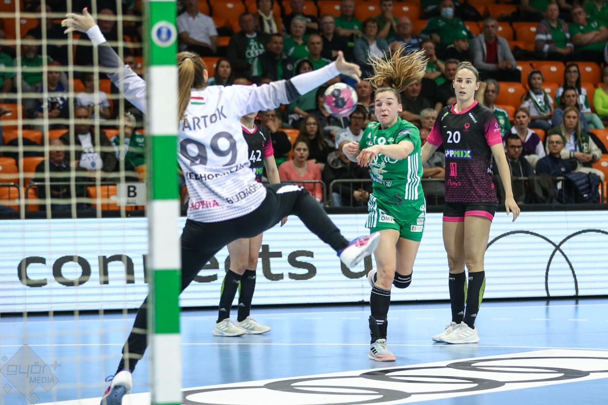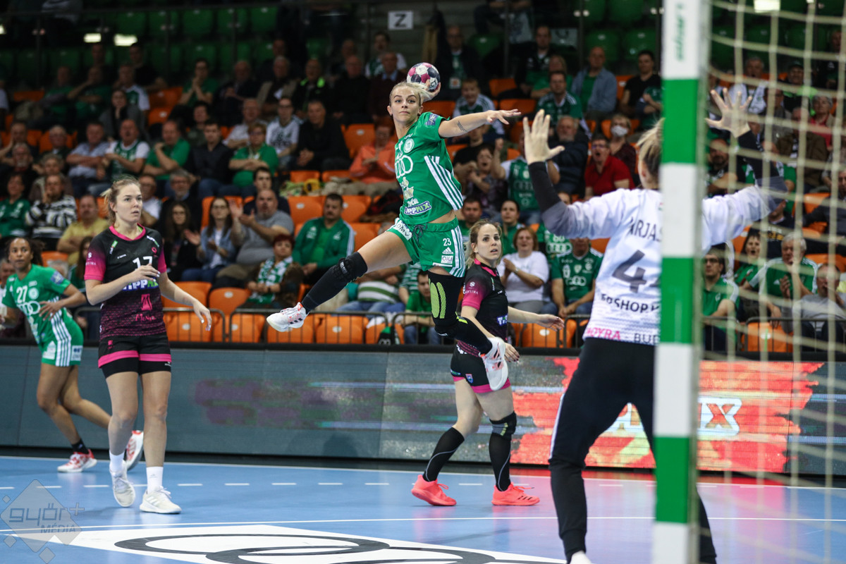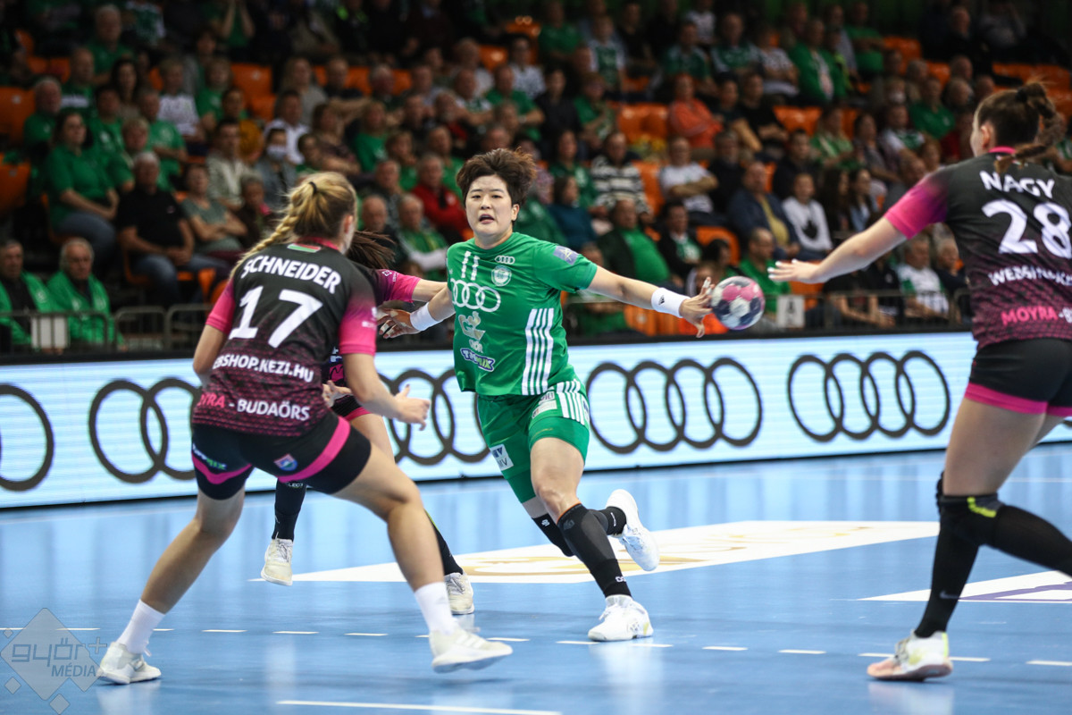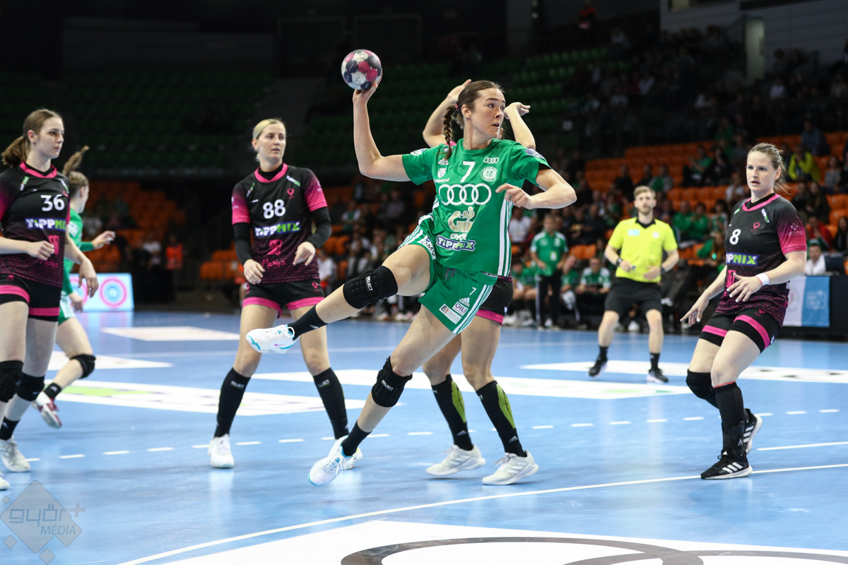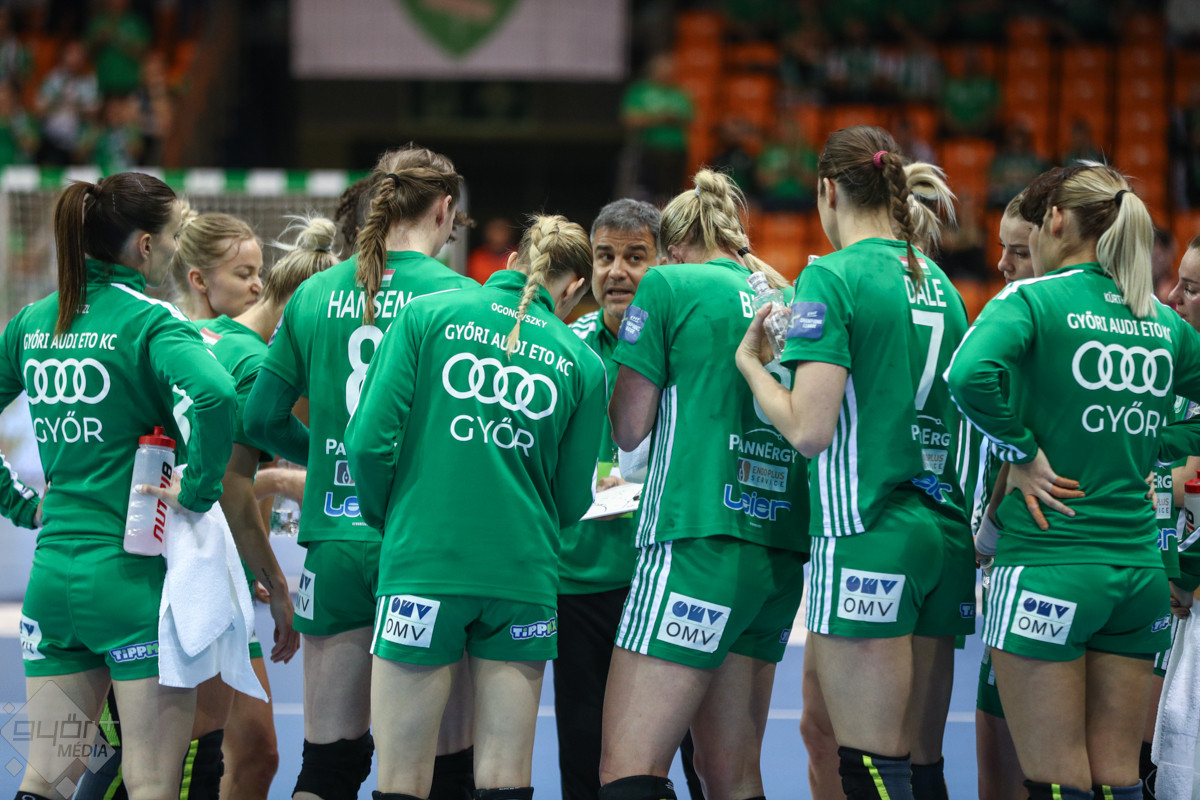 A Fodor, Oftedal, Hansen Blohm, Ryu, Faluvégi hatossal és Solberggel a kapuban kezdte meg a hazai csapat a találkozót. Az összecsapás egy 4-0-as győri sorozattal indult, és csak az ötödik percben tudtak először a remekül kezdő Solberg kapujába találni a vendégek (4 – 1). Negyedóra elteltével őrizte magabiztos előnyét a győri csapat, és Faluvégi góljával a 19. percben már 11 – 6-re vezetett. A félidő utolsó perceiben tovább nőtt a különbség a két együttes között, és végül az első félidő 21 – 13-as győri vezetéssel ért véget.