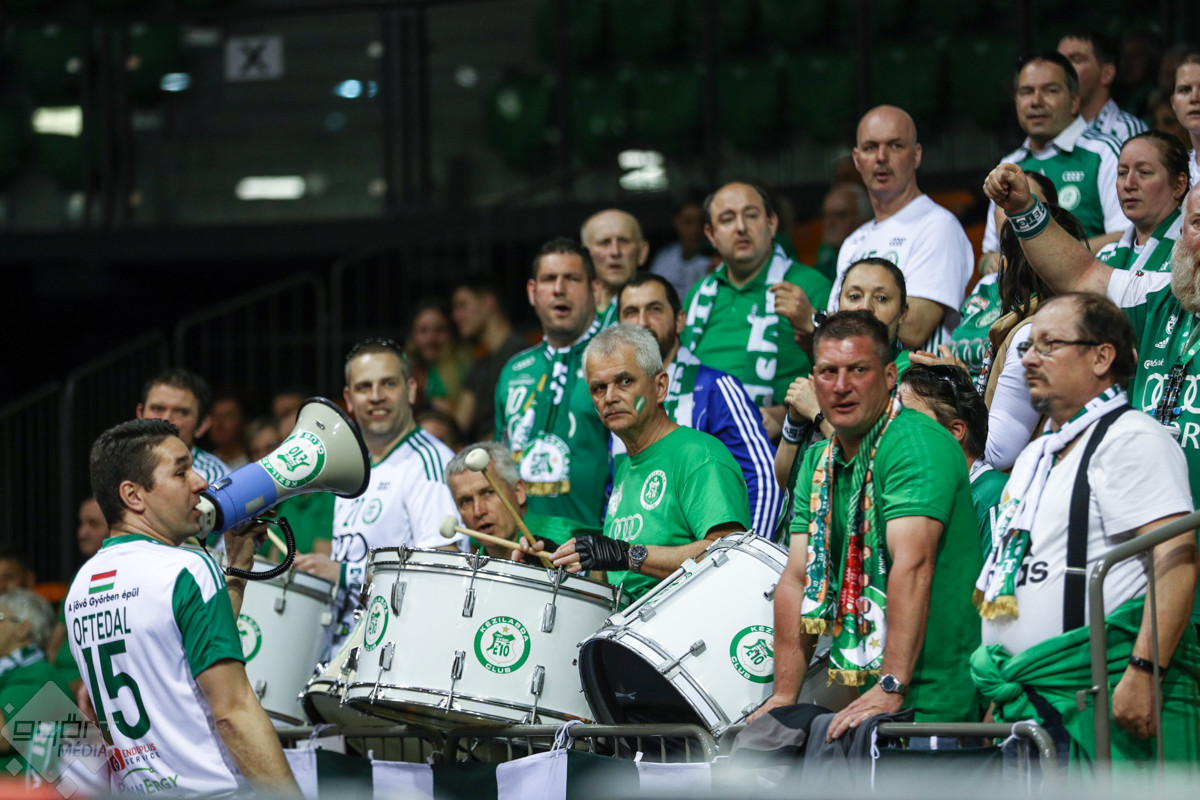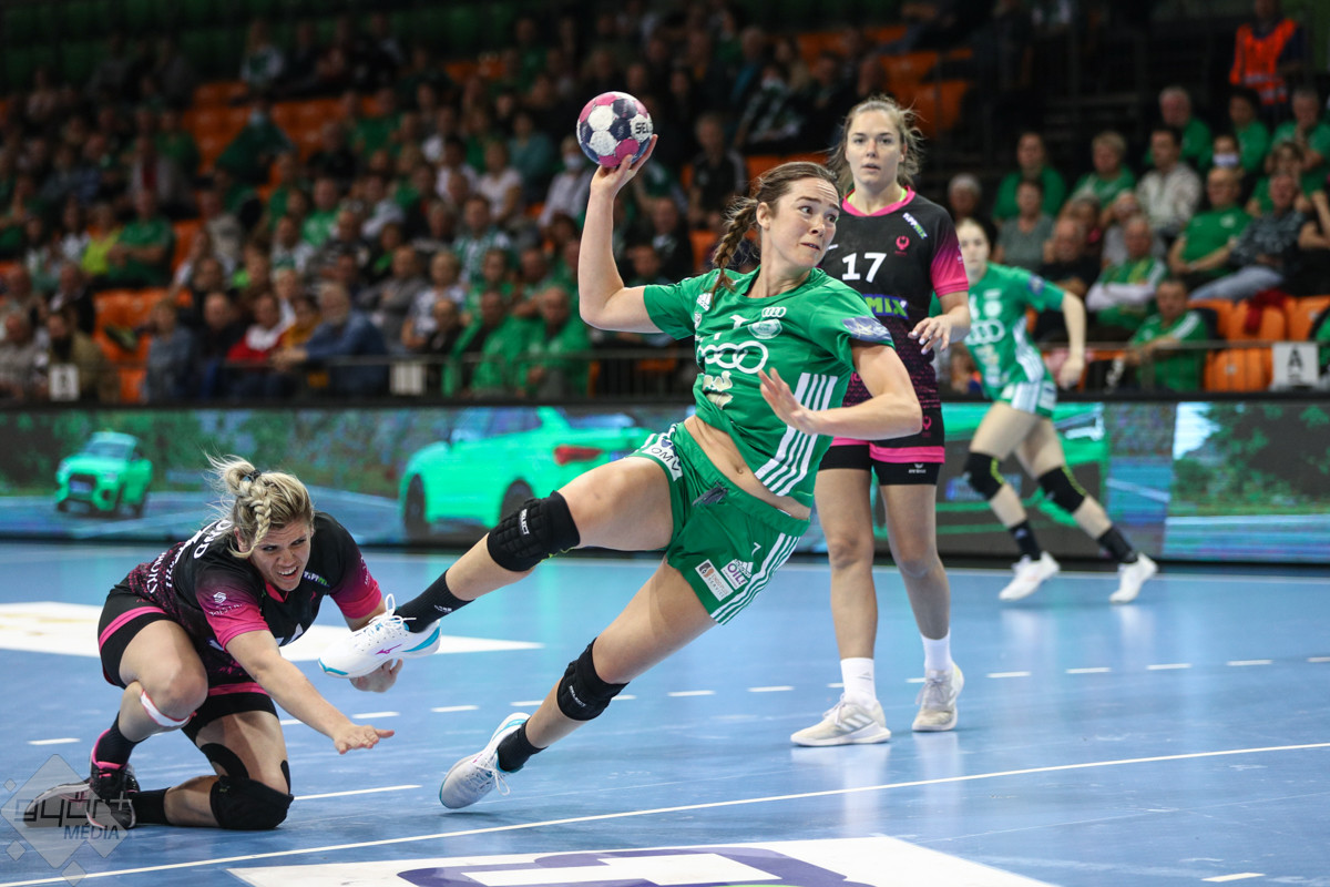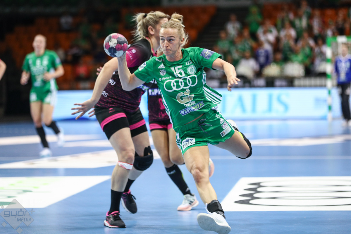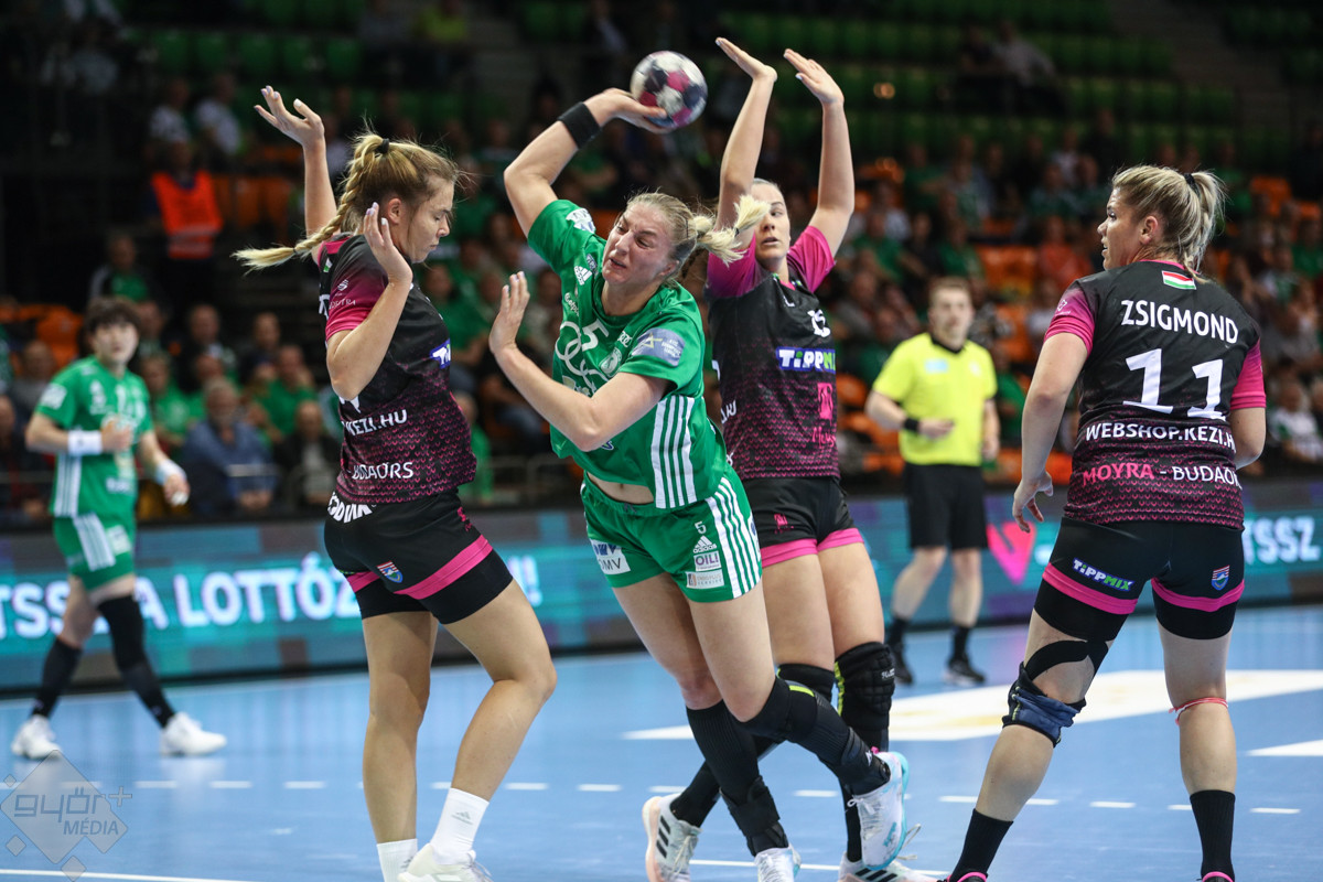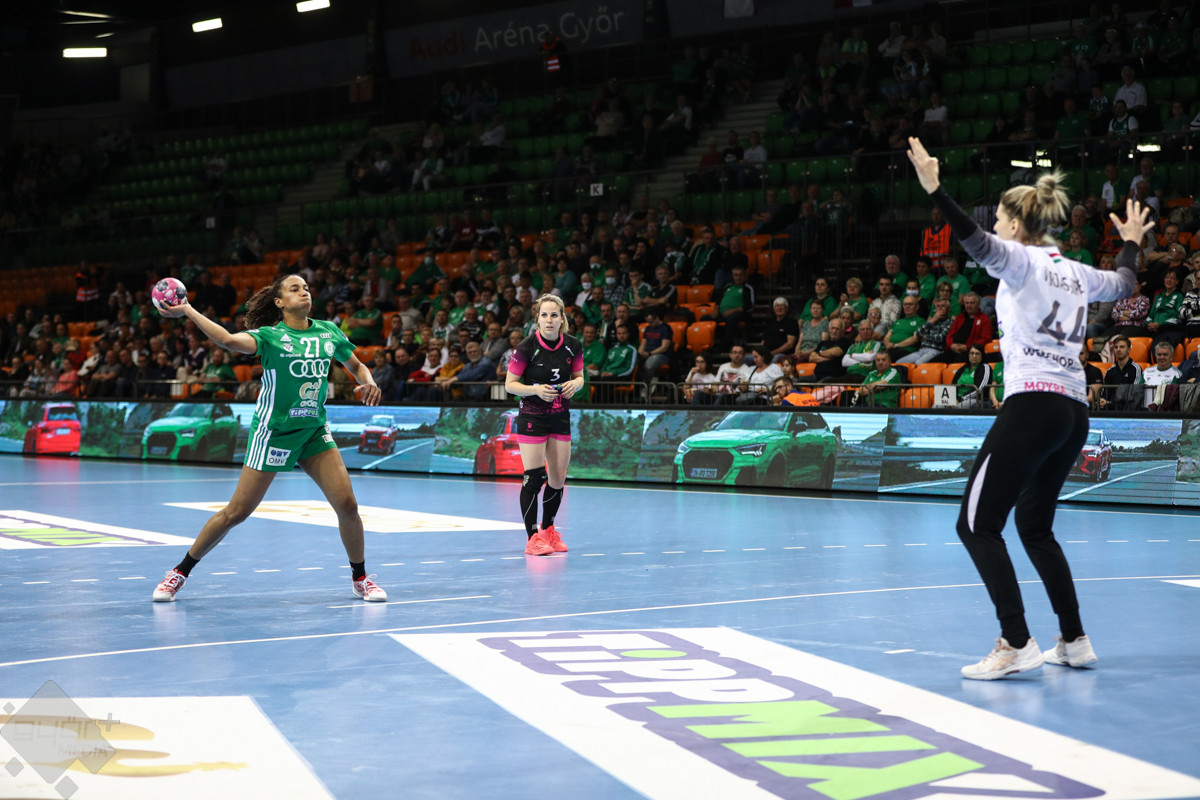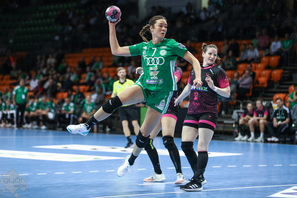 A Fodor, Oftedal, Hansen Blohm, Ryu, Faluvégi hatossal és Solberggel a kapuban kezdte meg a hazai csapat a találkozót. Az összecsapás egy 4-0-as győri sorozattal indult, és csak az ötödik percben tudtak először a remekül kezdő Solberg kapujába találni a vendégek (4 – 1). Negyedóra elteltével őrizte magabiztos előnyét a győri csapat, és Faluvégi góljával a 19. percben már 11 – 6-re vezetett. A félidő utolsó perceiben tovább nőtt a különbség a két együttes között, és végül az első félidő 21 – 13-as győri vezetéssel ért véget.