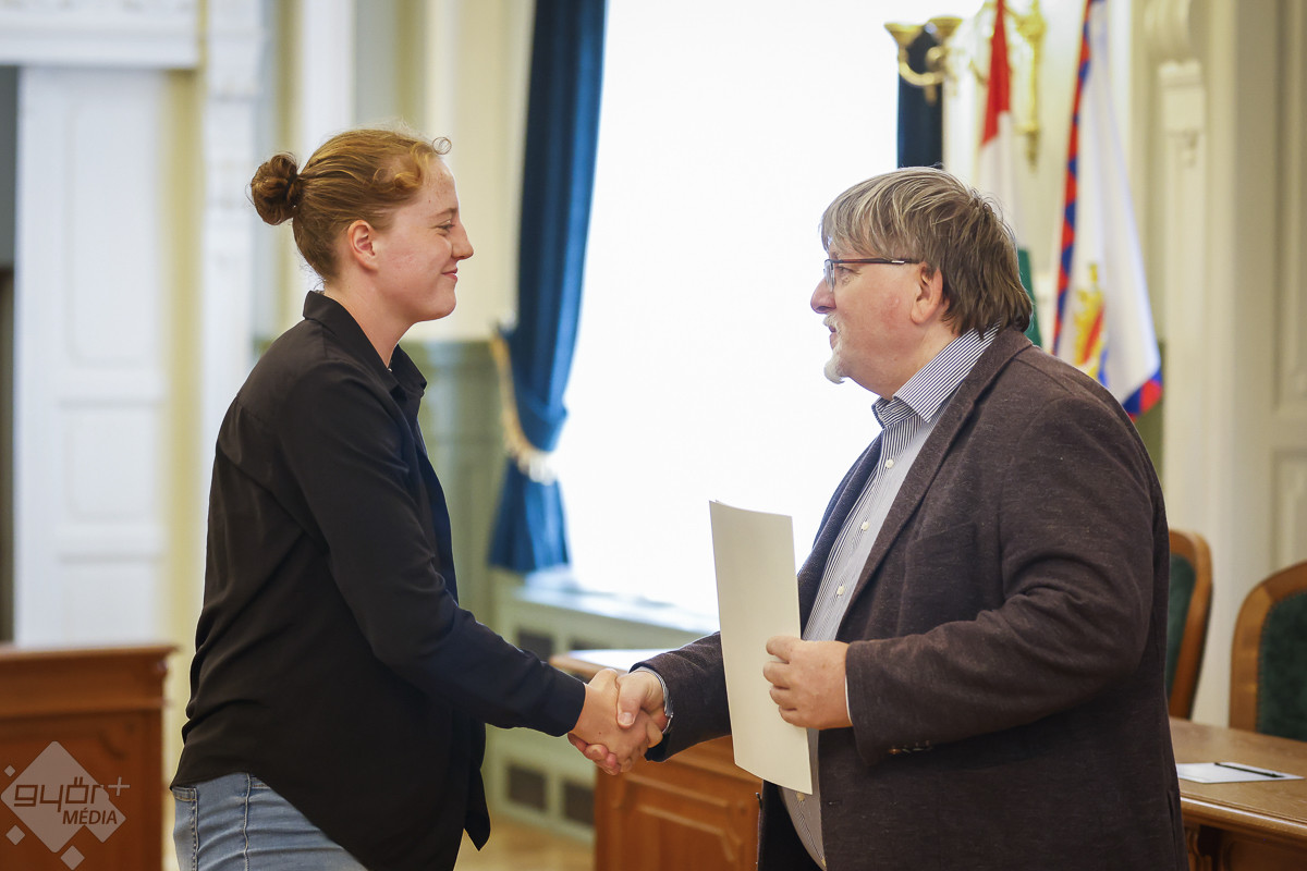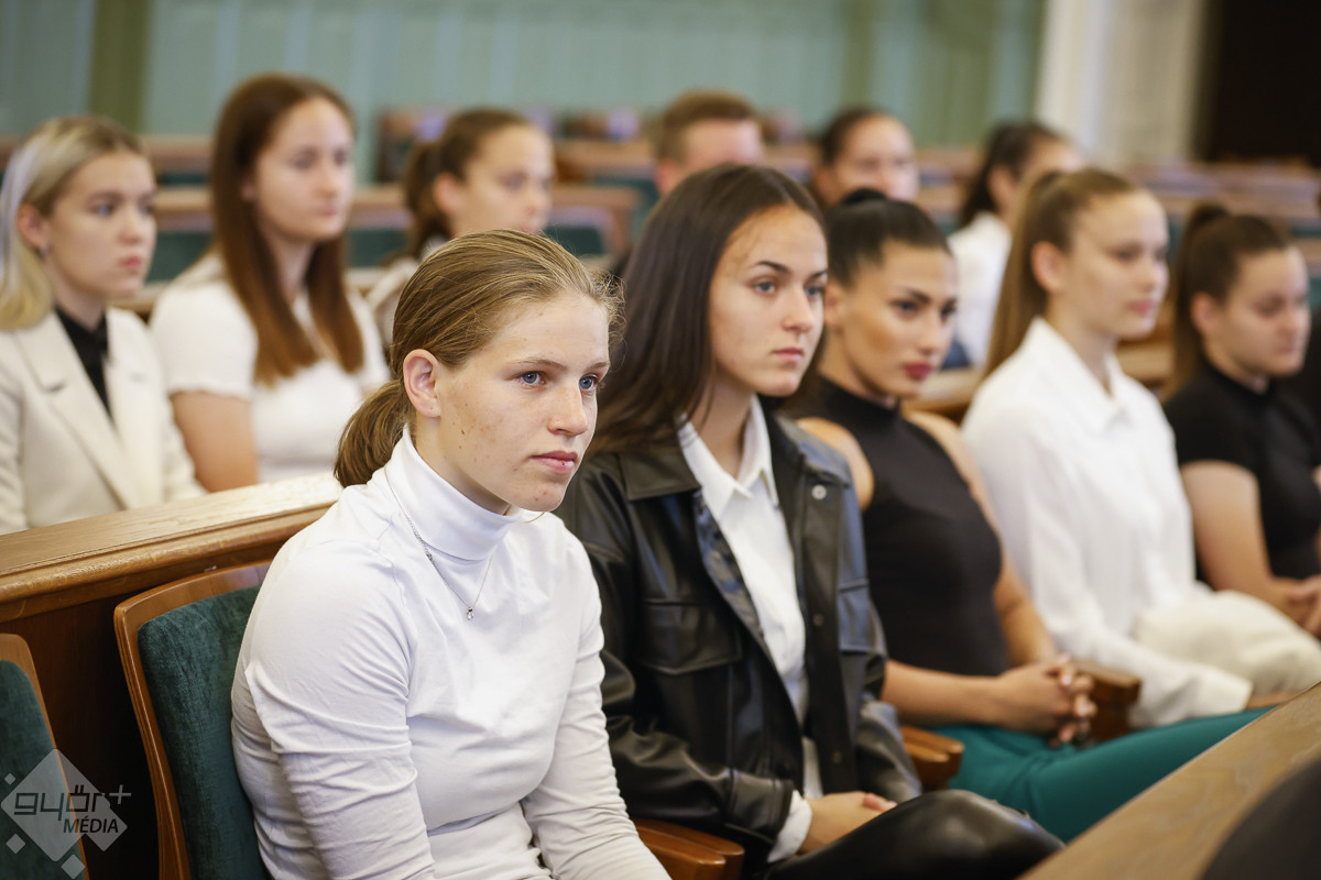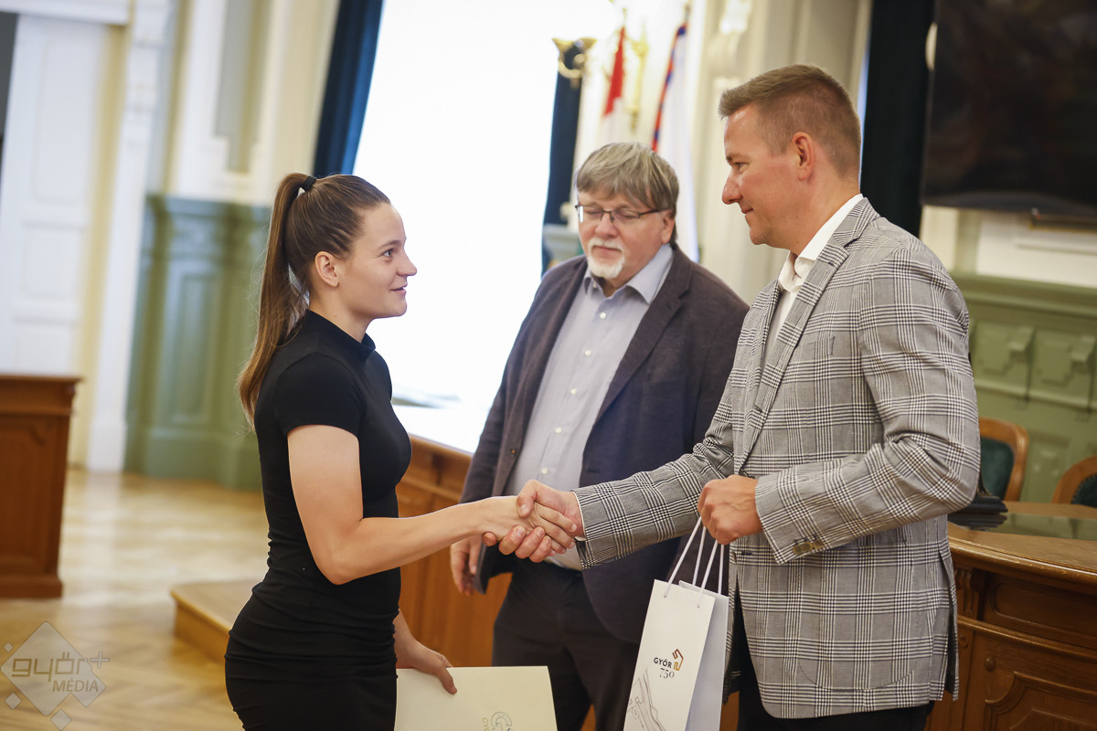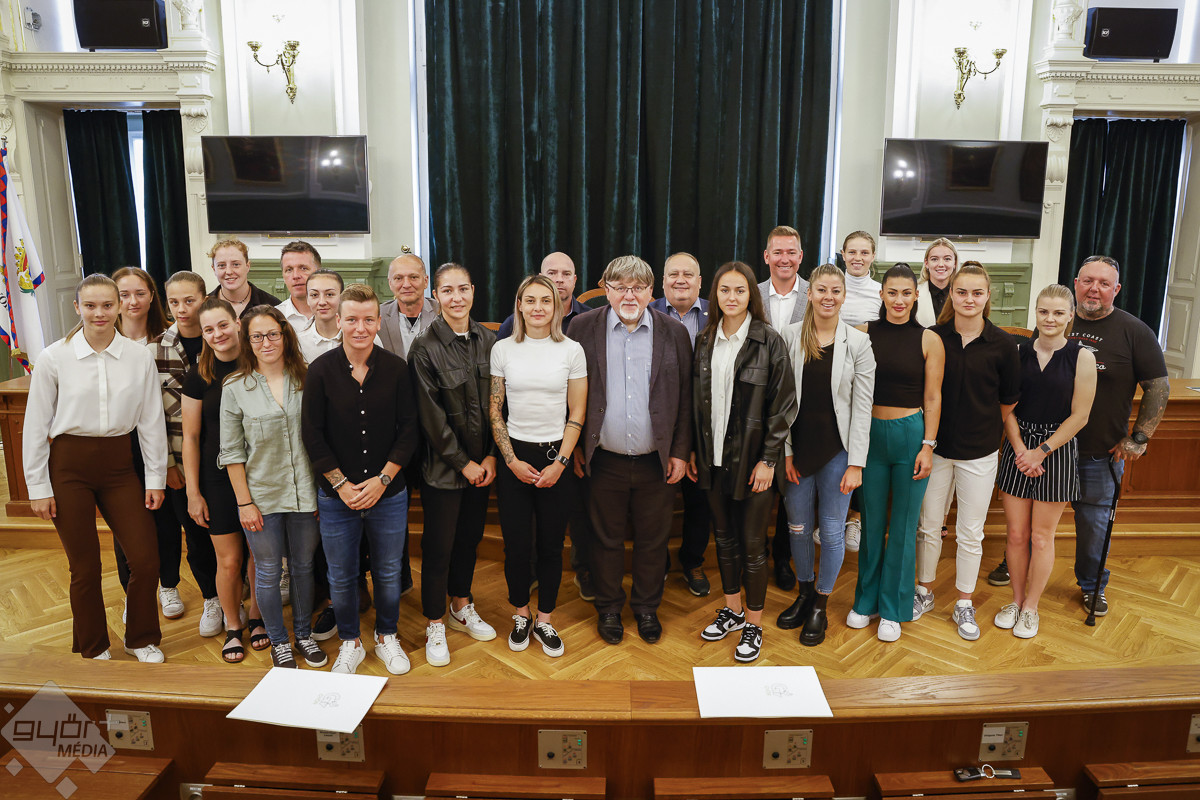 Ahogy tavaly, úgy idén is fantasztikus szezont zárt a labdarúgó-élvonalban szereplő ETO FC Győr női csapata. A zöld-fehér együttes megnyerte a Magyar Kupát, és ezüstérmet szerzett a bajnokságban. Az elmúlt két idényben összesen négy finálét játszott a gárda, amelynek tagjait pénteken a városháza dísztermében köszöntötte dr. Dézsi Csaba András polgármester, Radnóti Ákos sportért is felelős alpolgármester és Patkás Tamás, Győr parasport-nagykövete.