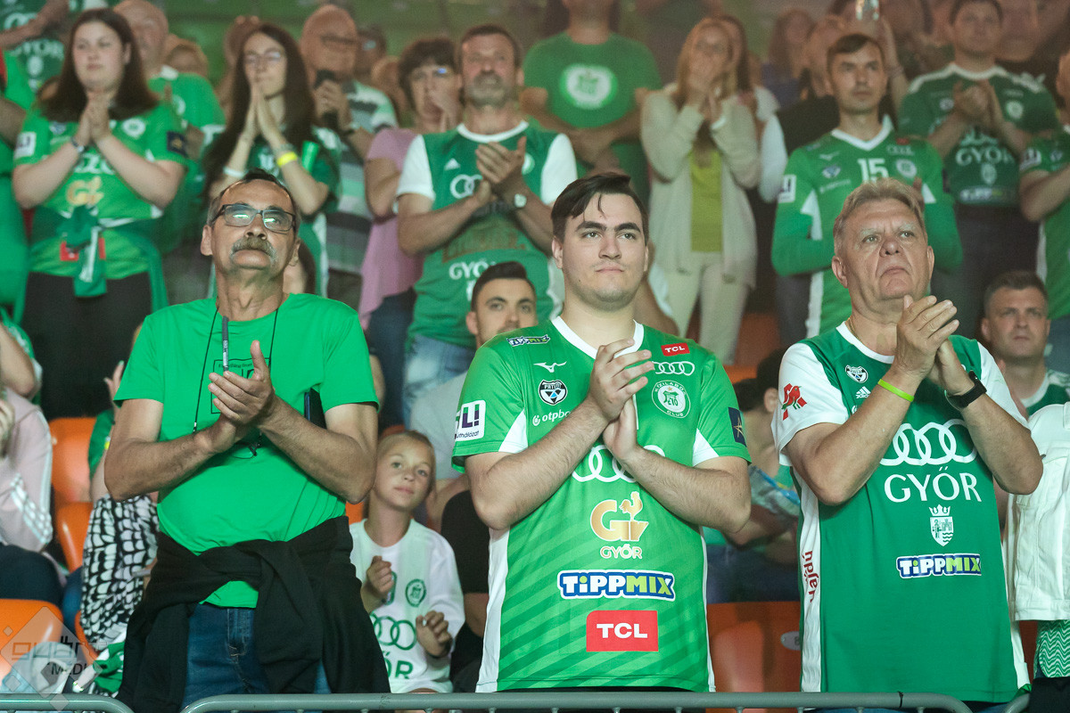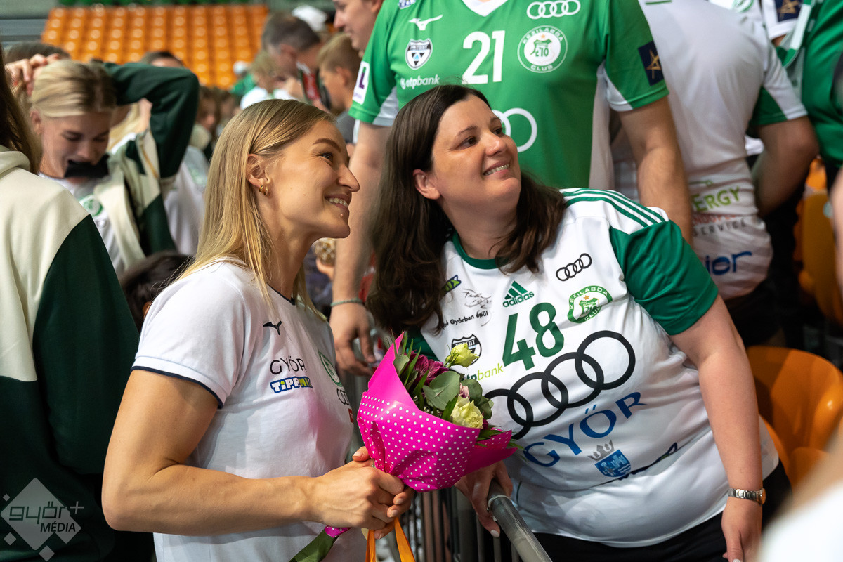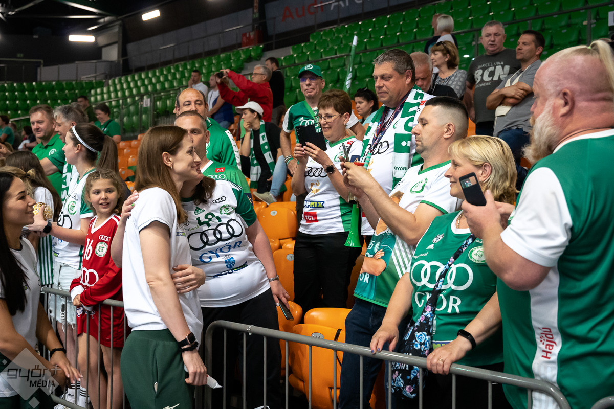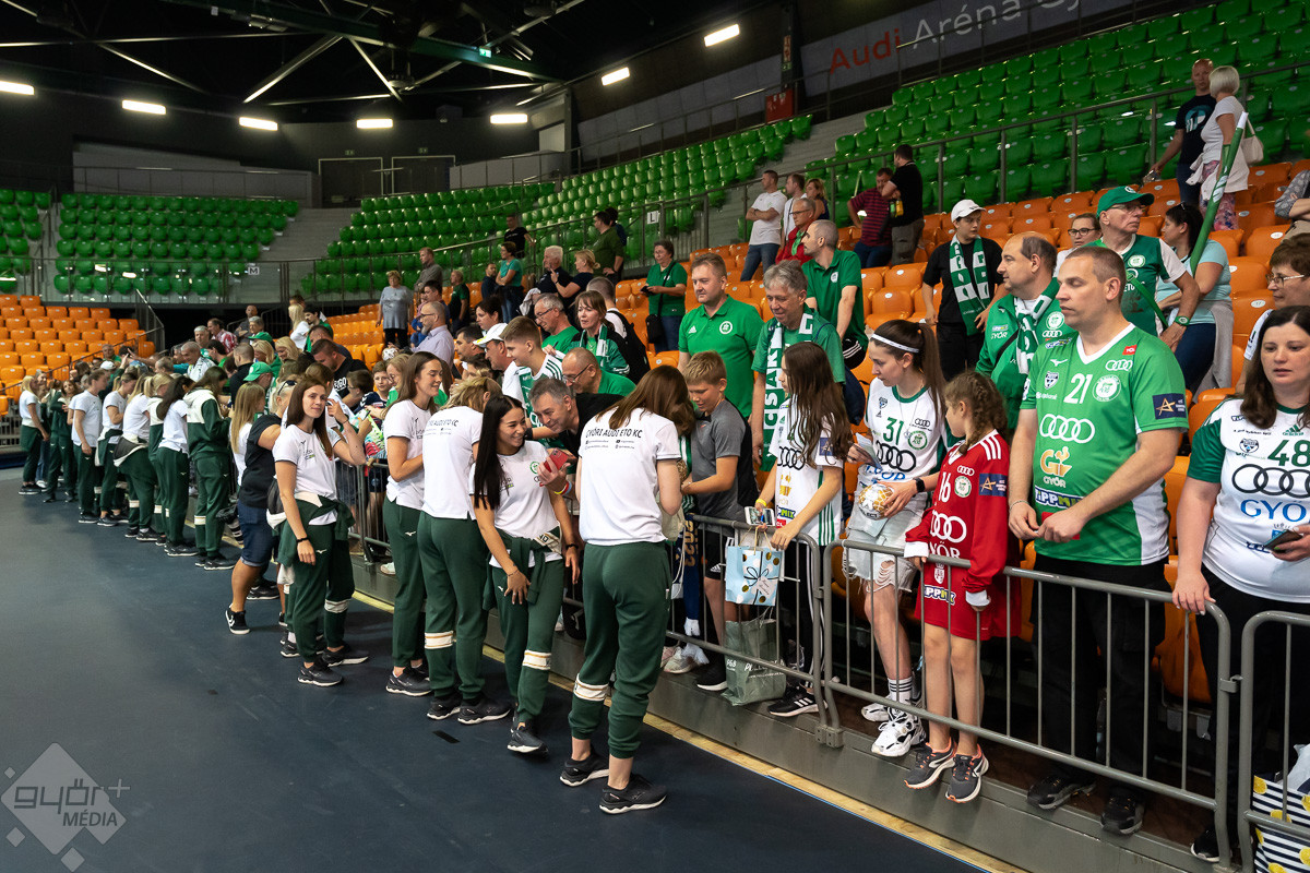 Hétfő este a csapat otthonában, az Audi Arénában ünnepelhették meg a drukkerek az együttest, amely rekordnak számító, 17. alkalommal nyerte meg a hazai bajnokságot, és ezüstérmes lett a Magyar Kupában. A klubtól elbúcsúzott a spanyol vezetőedző Ambros Martín, akinek az irányításával korábban négyszer nyerte meg a BL-t az ETO.
