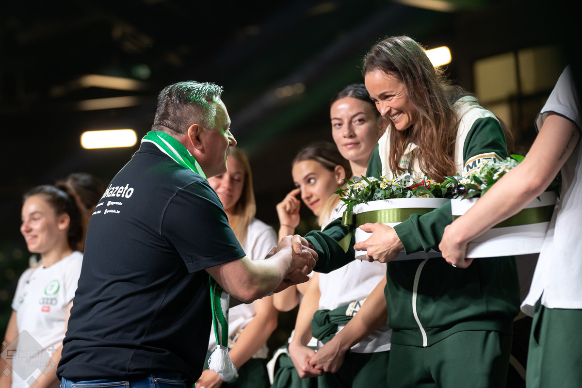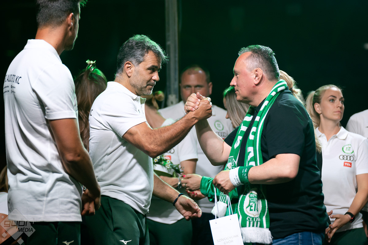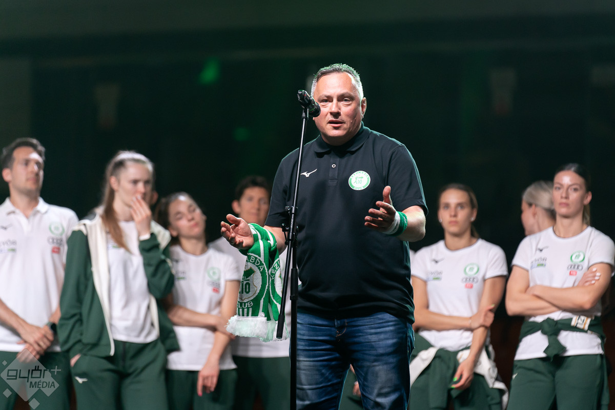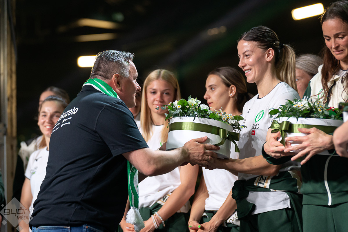 Hétfő este a csapat otthonában, az Audi Arénában ünnepelhették meg a drukkerek az együttest, amely rekordnak számító, 17. alkalommal nyerte meg a hazai bajnokságot, és ezüstérmes lett a Magyar Kupában. A klubtól elbúcsúzott a spanyol vezetőedző Ambros Martín, akinek az irányításával korábban négyszer nyerte meg a BL-t az ETO.