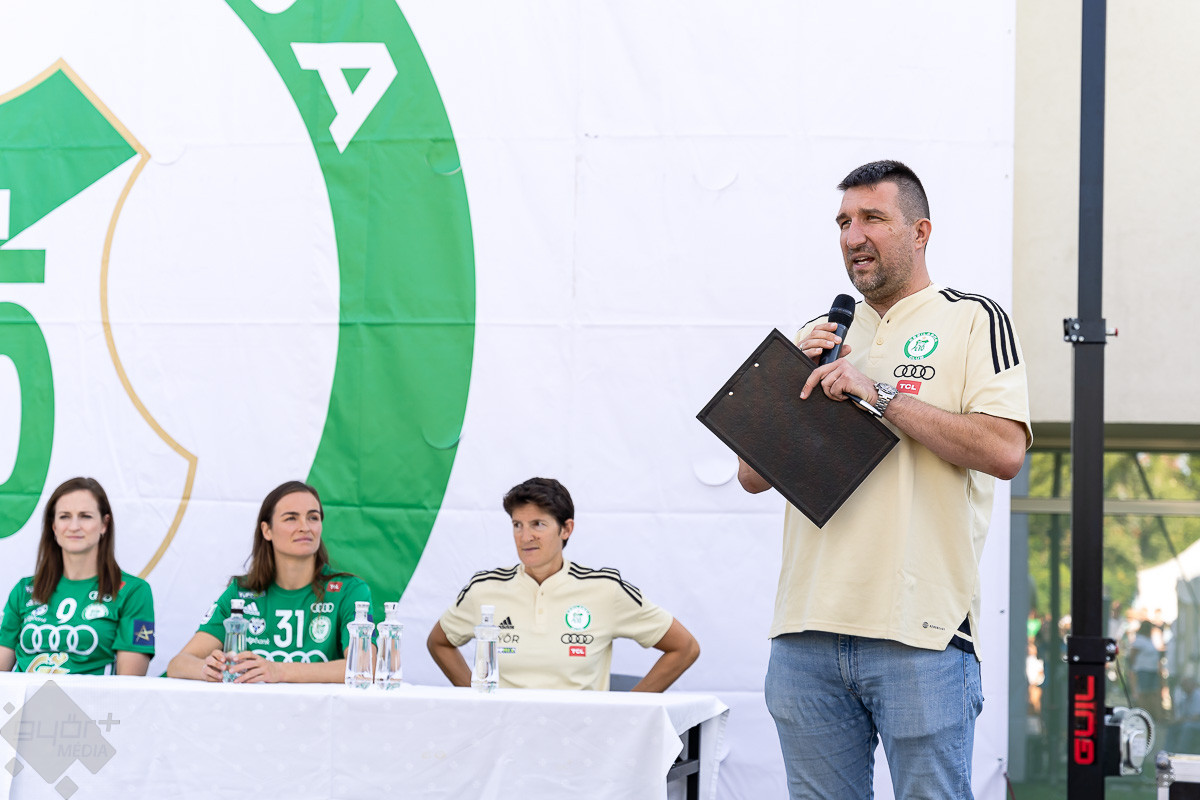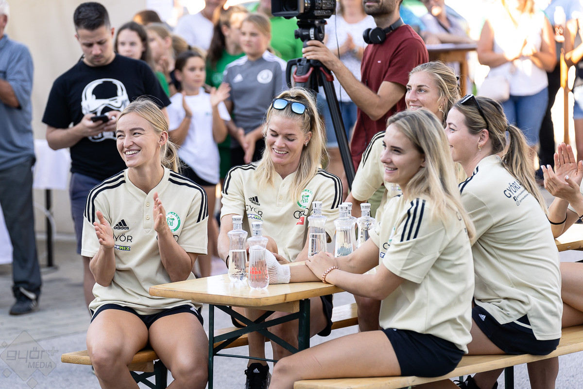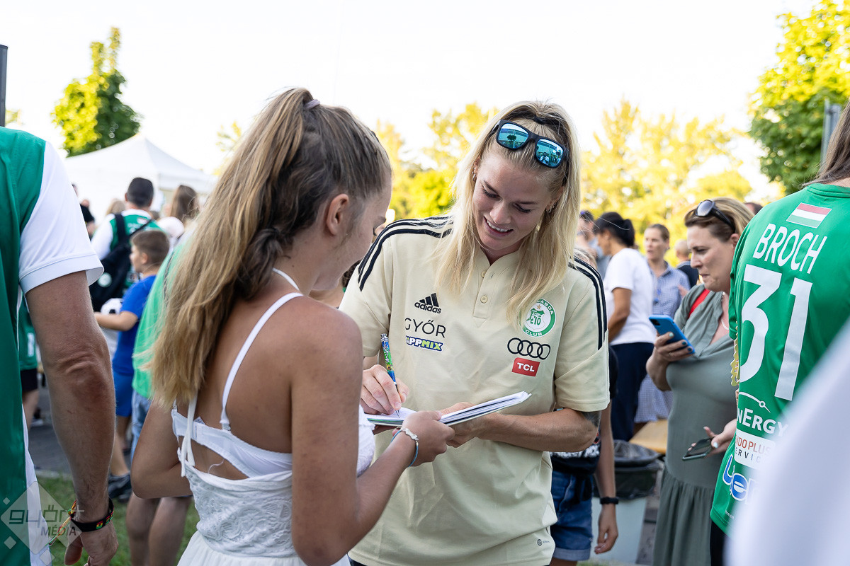 A pikniken bemutatkoztak a Győri Audi ETO KC új igazolásai: Sandra Toft, Line Haugsted, Yvette Broch és Ana Gros. Utóbbi kettő egyébként korábban már játszott a zöld-fehér együttesben. Gros 10 év után tért vissza Győrbe.