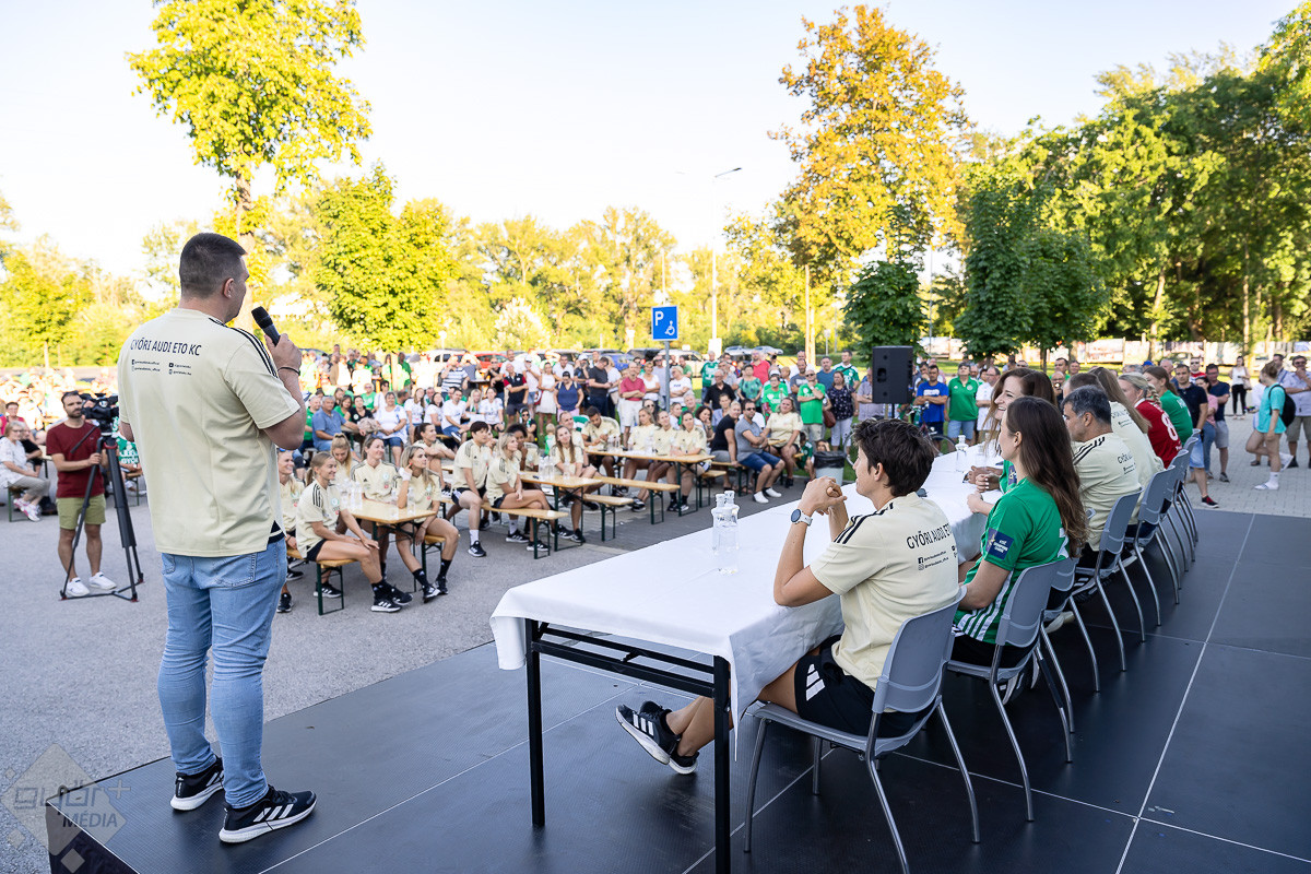 A régi hagyományokat idézve évadnyitó piknikezésre hívta szurkolóit a Győri Audi ETO KC. A zöld-fehér kézilabadacsapat az Audi Aréna melletti területen vendégelte meg a drukkereket, akik kötetlenül beszélgethettek a játékosokkal, a szakmai stáb tagjaival és az együttes vezetőivel. A klub ráadásul egy tál gulyáslevesre is meghívta a gárda szimpatizánsait. Remek hangulatban telt az esemény, a szurkolók ráadásul kiváló, napsütéses időben találkozhattak kedvenceikkel. Az ETO-tábor tagjai biztosították a kézilabdázókat arról, hogy a 2022/23-as idényben is maximálisan támogatják majd őket a lelátóról.