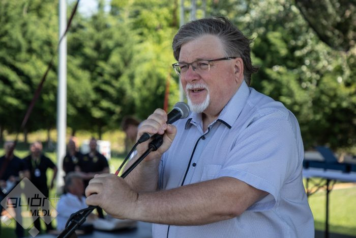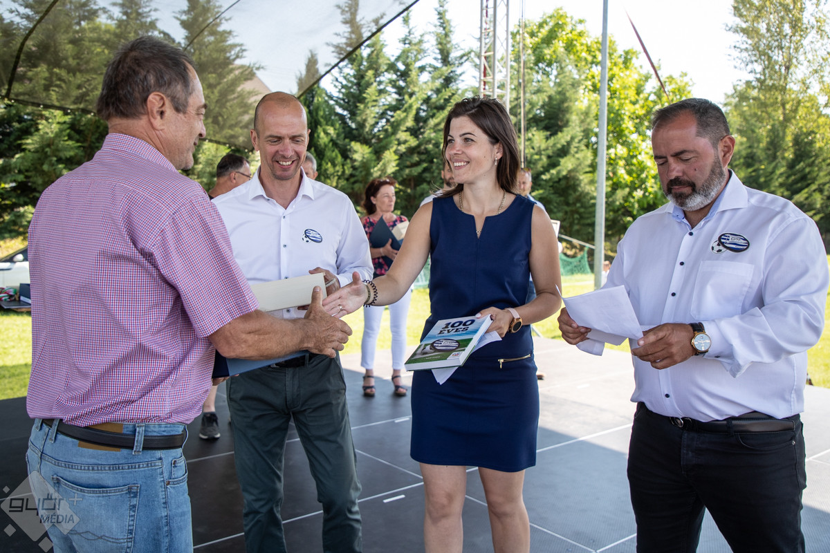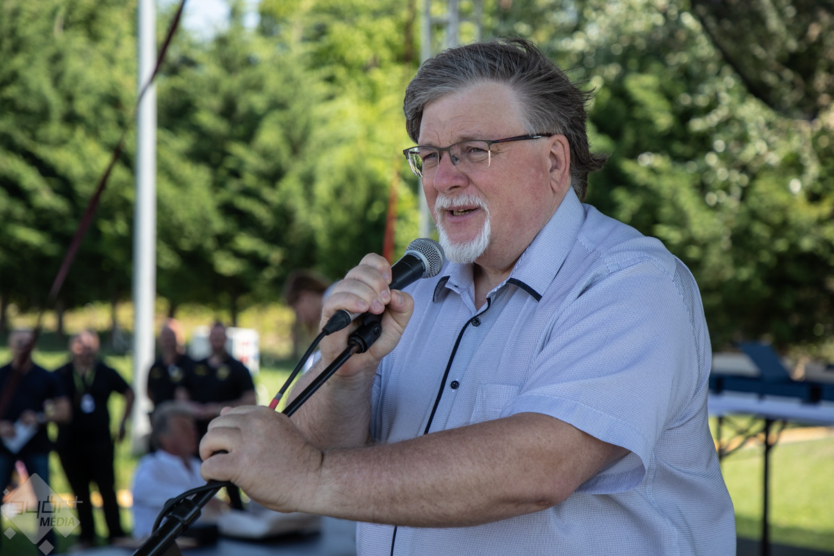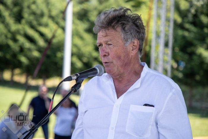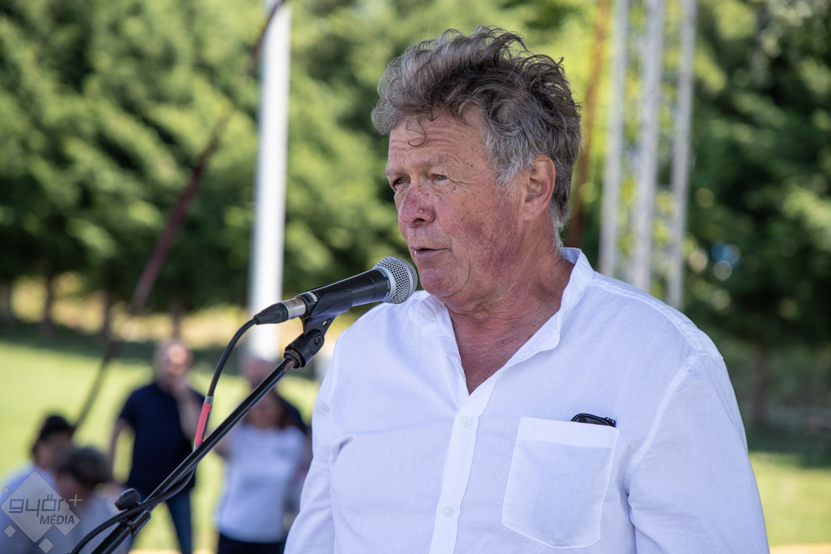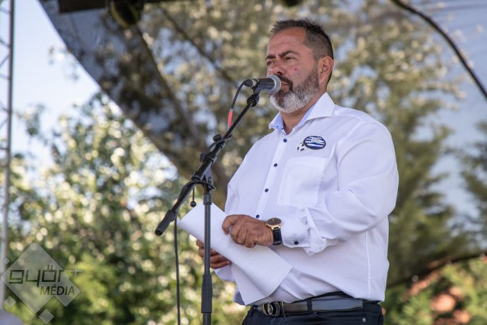 Glázer Péter, a Győrszentiváni Sport Egyesület elnökét a műsorvezetőként is meghívott Dj Dominique szólított mikrofon elé, aki köszöntőjében az alábbiakra tért ki a centenáriumi ünnepségen: