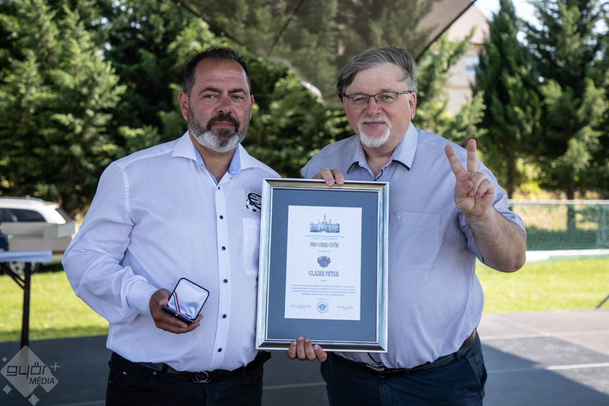 „Győrszentiván mindig nagyon stabil település volt, s mióta Győrhöz tartozik, jelentősen gazdagította a várost. Nem pusztán arra gondolok, hogy itt van az Ipari Park, hanem az itt élő emberekre is, akik például kultúrában és sportban is sokat adnak a városnak, de lehetnek még hosszan sorolni. Jó győrinek és jó győrszentiváninak is lenni! Jó tudni azt, hogy élnek itt olyan emberek, akik a szűkebb közösségért is tesznek, ápolják a hagyományokat. Nem fizetségért, hanem azért, mert a lelkükből fakad. Glázer Péter is egy ilyen ember, elkötelezett támogatója a győrszentiváni intézményeknek. Neki köszönhető, hogy a sportklub megélhette a 100. évét, mert bizony voltak itt komoly bajok. Pontosan azért, mert sokat és erőn felül tett a városért, úgy határoztunk nemrég, hogy Glázer Péternek Pro Urbe díjat adunk, megköszönve eddigi fáradozásait.” – hangsúlyozta dr. Dézsi Csaba András polgármester, majd a nemrégiben, a közgyűlésen megszavazott Pro Urbe díjat át is adta a Győrszentiváni SE elnökének.