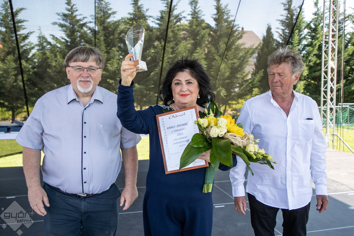 „Ilust ezért a könyvért, az emlékeink ápolásáét, azért, hogy Győrszentivánt a határainkon túl is megismerték, tavaly a Falu Embere címmel ismertük el!” – mondta dr. Sík Sándor, majd a szép kitüntetést dr. Dézsi Csaba Andrással közösen adták át a szerzőnek.