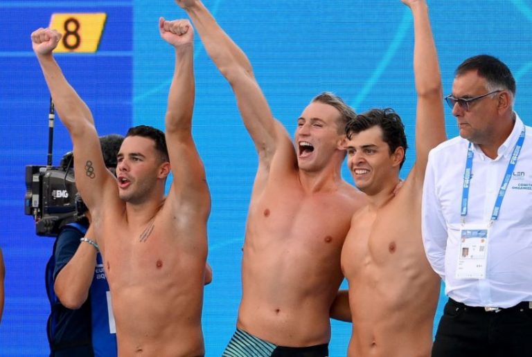 (19:23) A Németh Nándor, Márton Richárd, Holló Balázs, Milák Kristóf összeállítású 4×200 méteres magyar férfi gyorsváltó országos csúccsal aranyérmet nyert a római úszó Európa-bajnokság csütörtöki nyitónapján. Ez a magyar úszósport történetének 100. aranyérme a kontinensviadalokon. A 2017-es indianapolisi junior világbajnokságon aranyérmes együttes júniusban a Duna Arénában rendezett világbajnokságra “állt újra össze”, akkor 7:06.27 perces országos … Bővebben: Három magyar érem, közte a 100. magyar arany a nyitónapon