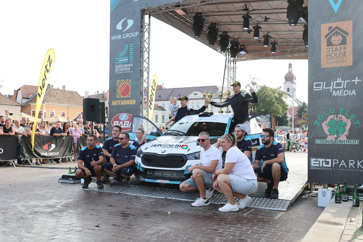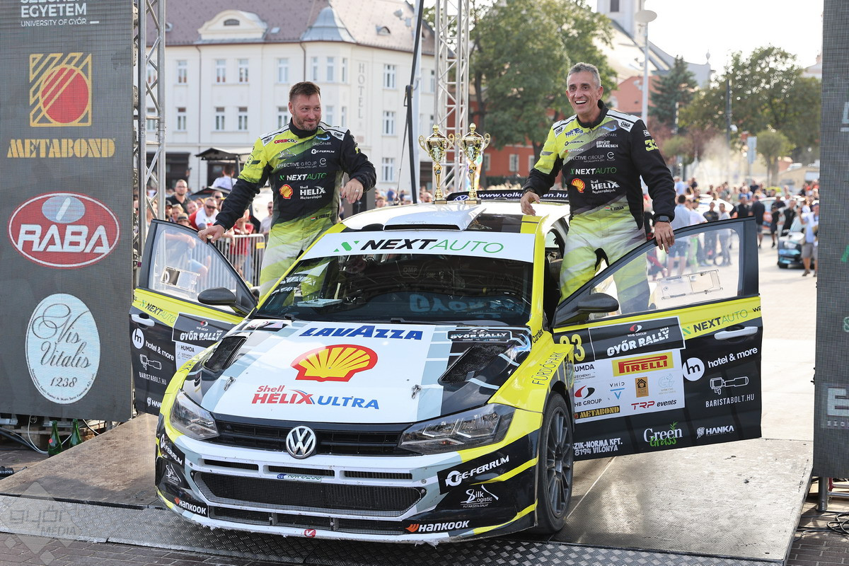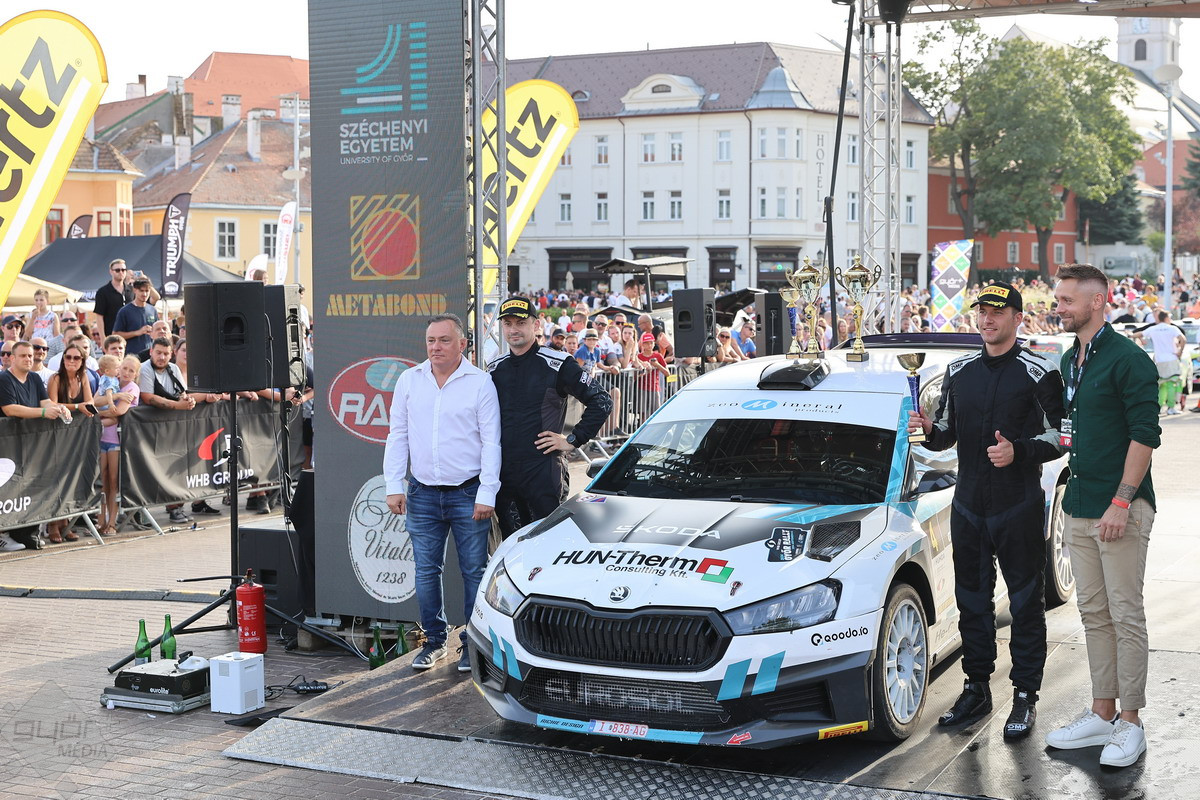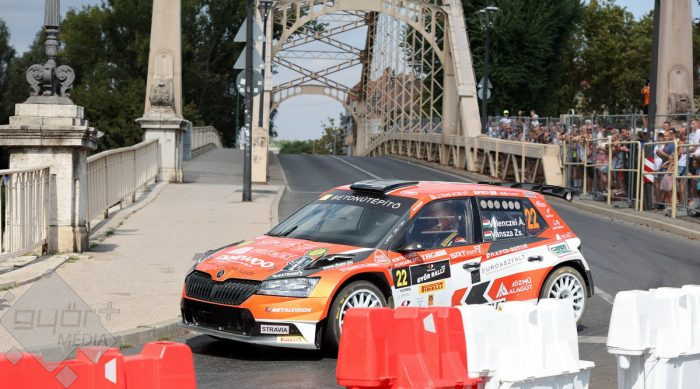 Szombat délelőtt még hatalmas adok-kapok alakult ki Német Gábor, Turán Frigyes és Velenczei Ádám között, majd Németék Rábaringen aratott szakaszgyőzelmükkel egyben a második helyet is megszilárdították. Vasárnap ugyanezzel a lendülettel folytatta a duó, a beállítások is meglettek, az új szakaszon, Bakonybélen is gyorsak voltak, majd a szupergyors ravazdi pályán is magabiztosak voltak, és a belvárosi kacskaringóson is remekeltek. A második helyük nem forgott veszélyben, a győzelemben pedig csak reményedtek, mert Mixiék előnye bőséges volt, és ők is tudták, hogy a rivális ERC rutinja mennyit számít. Ennek ellenére a pilóta a szokott szerény mosollyal érkezett a célceremóniára.