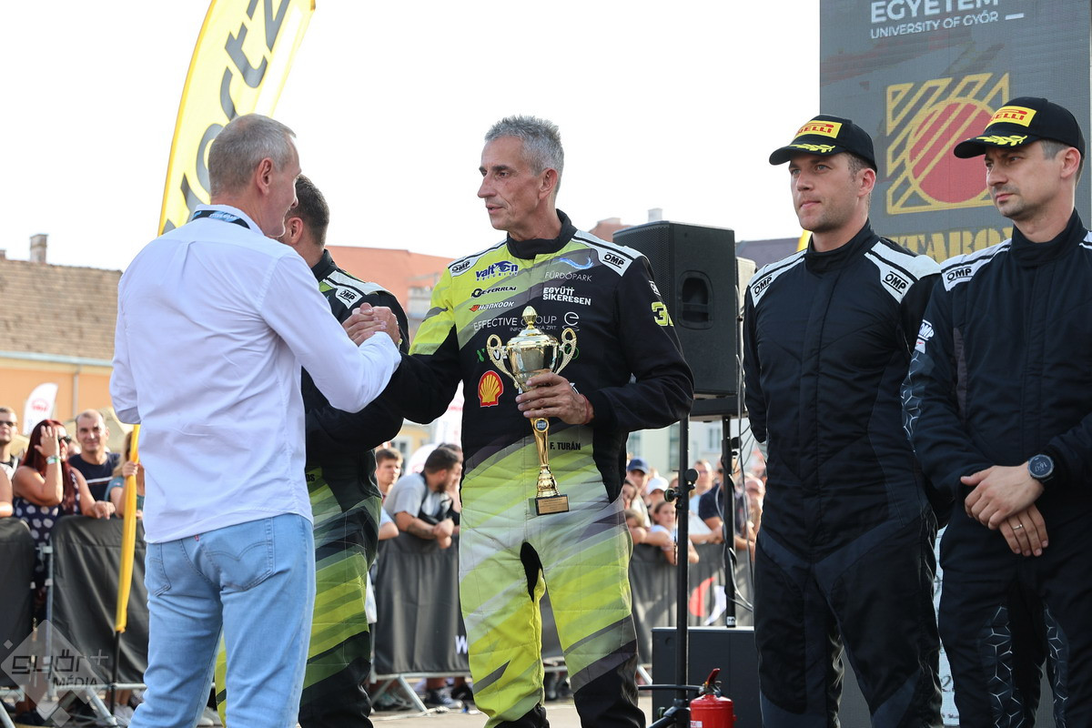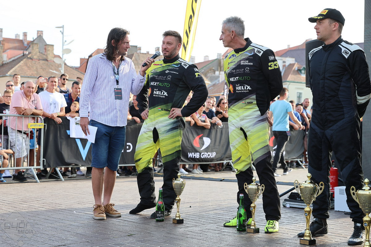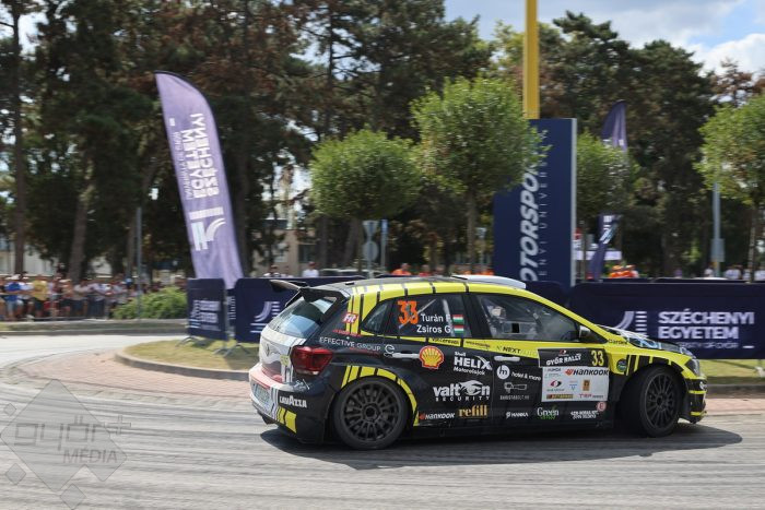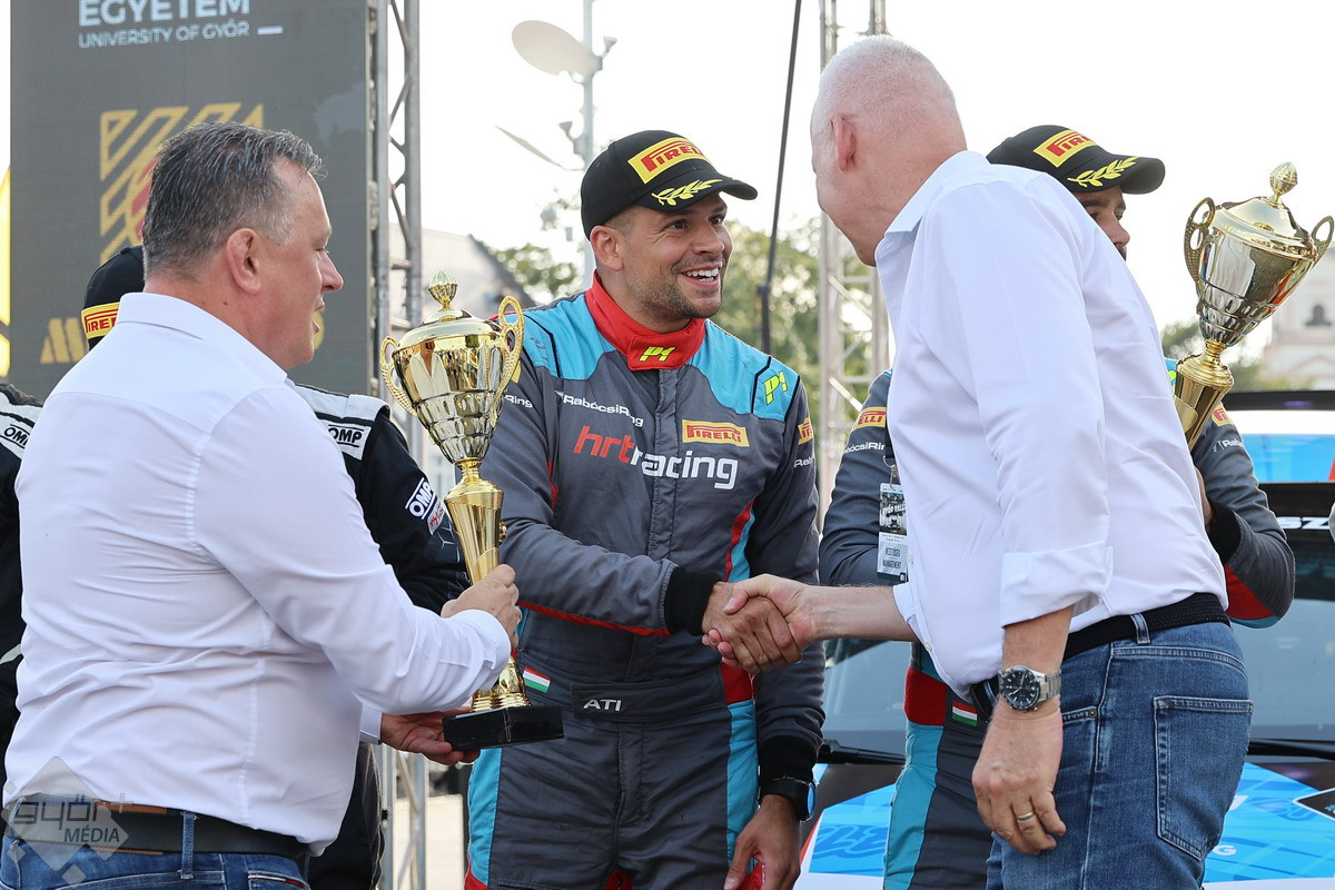 Szombat délelőtt még hatalmas adok-kapok alakult ki Német Gábor, Turán Frigyes és Velenczei Ádám között, majd Németék Rábaringen aratott szakaszgyőzelmükkel egyben a második helyet is megszilárdították. Vasárnap ugyanezzel a lendülettel folytatta a duó, a beállítások is meglettek, az új szakaszon, Bakonybélen is gyorsak voltak, majd a szupergyors ravazdi pályán is magabiztosak voltak, és a belvárosi kacskaringóson is remekeltek. A második helyük nem forgott veszélyben, a győzelemben pedig csak reményedtek, mert Mixiék előnye bőséges volt, és ők is tudták, hogy a rivális ERC rutinja mennyit számít. Ennek ellenére a pilóta a szokott szerény mosollyal érkezett a célceremóniára.