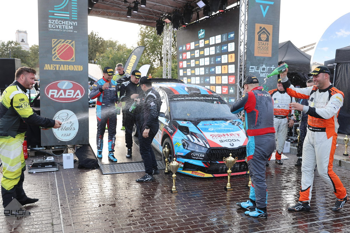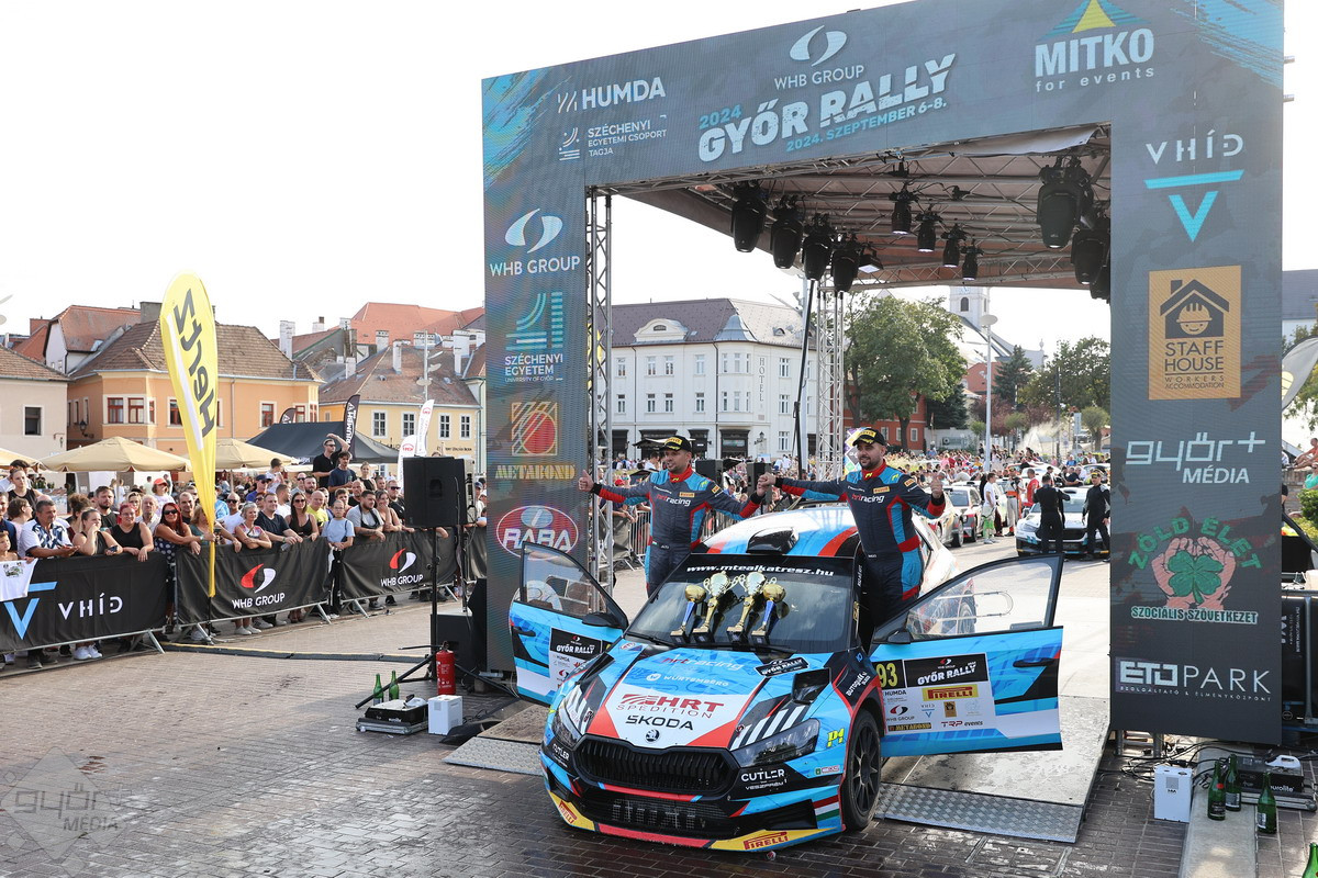 Csomós Mixi és Nagy Attila mosolya felhőtlen volt. Szombaton az első hét gyorsasági szakaszon 22 másoperces előnyt építettek ki, majd a második körben a Rábaringen már kiengedtek, igaz az egész nap használt gumik is közrejátszhattak abban, hogy második helyen fejezték be a nyolcadik szakaszt. Vasárnap az első három gyorsaságin szintén nem siettek. A belvárosi pályára kilátogató 20 ezer néző is igazolhatja, hogy Mixiék nekik is autózva feláldoztak néhány másodpercet. A második Bakonybéli felfutáson ellenben már jelezték, hogy a Power Stage-en újra odateszik magukat és Németékkel hajszálra ugyanolyan időt futottak. A Power Stage-en pedig valóban besöpörték az öt pluszpontot. A versenyt végül 14.3 másodperces előnnyel nyerték.