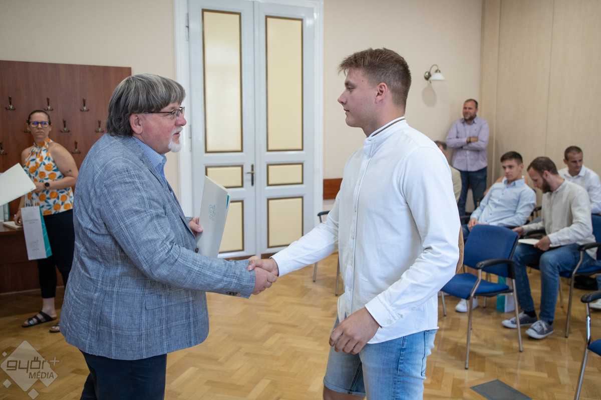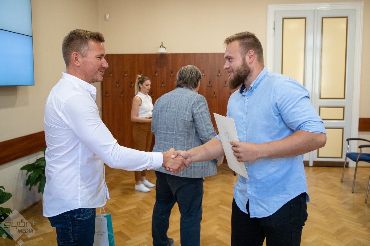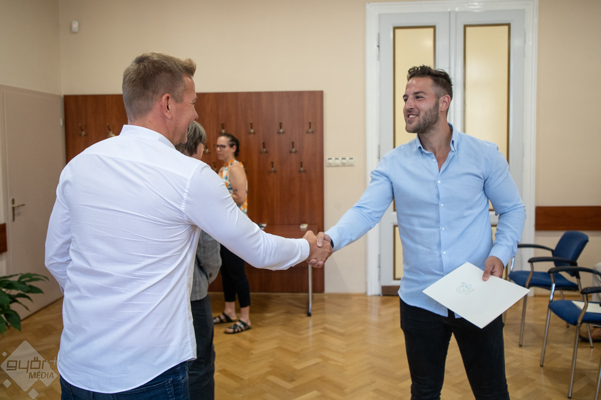 A Magyar Egyetemi-Főiskolai Országos Bajnokságon első helyezést elért Agrofeed ETO-UNI Győr férfi kézilabda csapatát köszöntötte pénteken a polgármester és a területet felügyelő alpolgármester. Dr. Dézsi Csaba András és Radnóti Ákos személyesen gratuláltak a gárdának és adták át a város ajándékcsomagját a sportolóknak és vezetőiknek. A polgármester kiemelte, ezek a fiatal sportolók a többi fiatal számára lehetnek példaképek, amellett, hogy Győrnek is komoly büszkeséget szereztek.