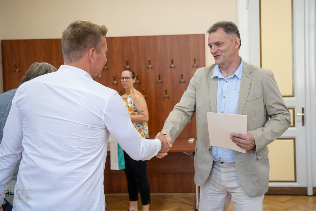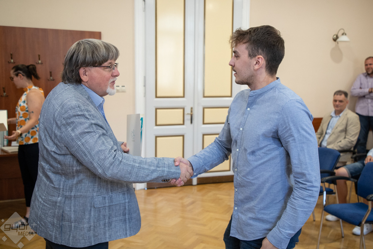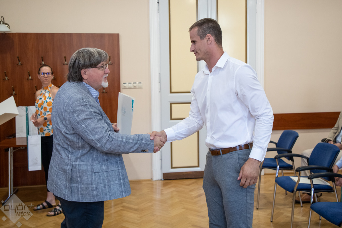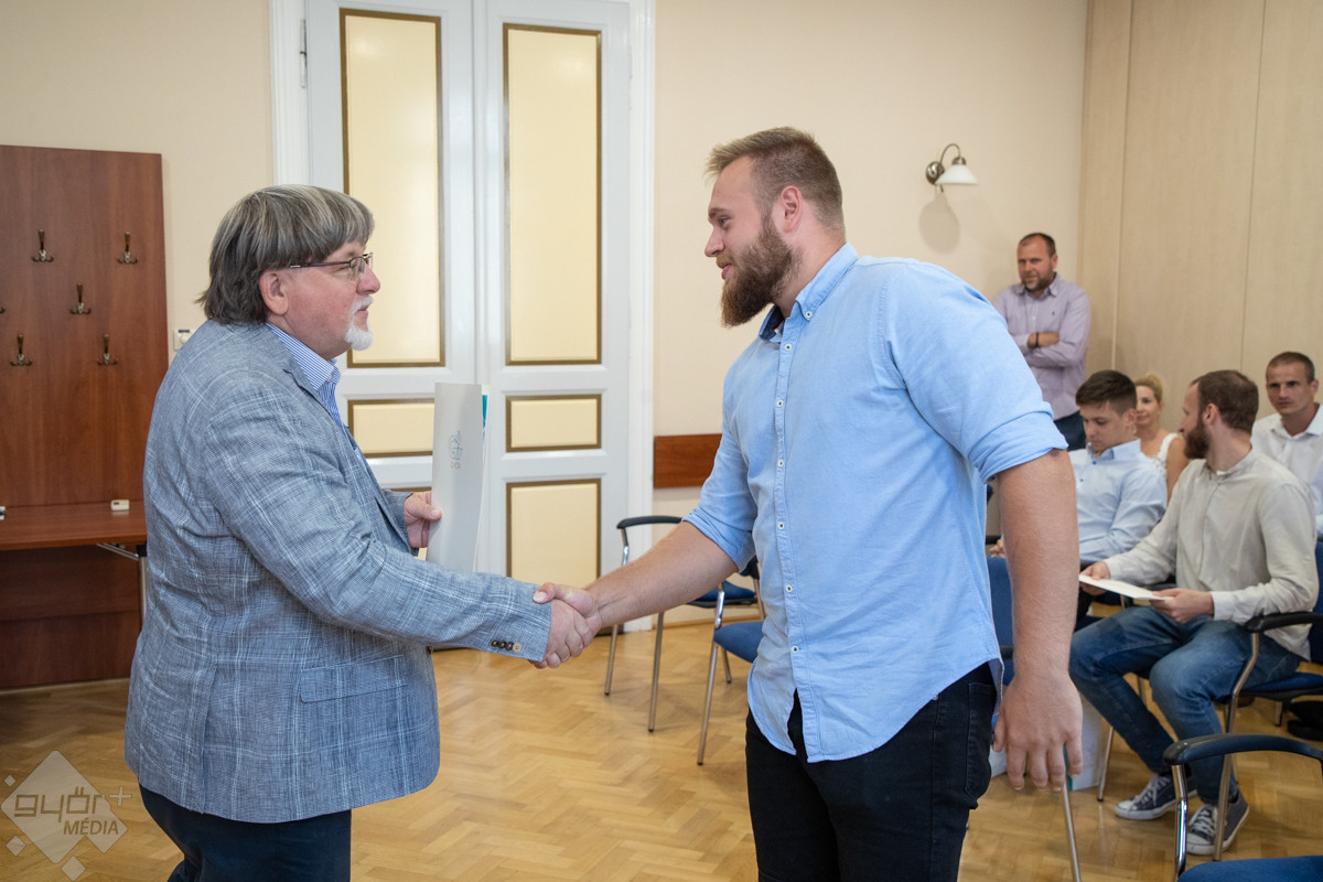 A Magyar Egyetemi-Főiskolai Országos Bajnokságon első helyezést elért Agrofeed ETO-UNI Győr férfi kézilabda csapatát köszöntötte pénteken a polgármester és a területet felügyelő alpolgármester. Dr. Dézsi Csaba András és Radnóti Ákos személyesen gratuláltak a gárdának és adták át a város ajándékcsomagját a sportolóknak és vezetőiknek. A polgármester kiemelte, ezek a fiatal sportolók a többi fiatal számára lehetnek példaképek, amellett, hogy Győrnek is komoly büszkeséget szereztek.