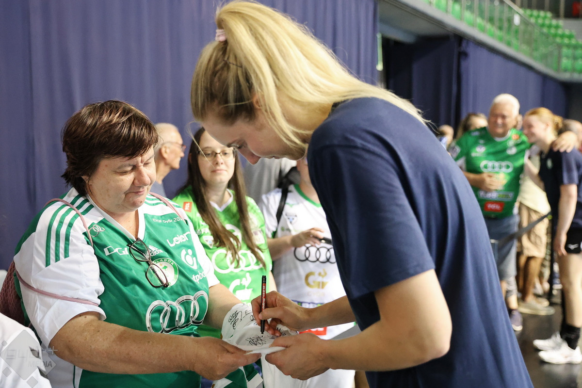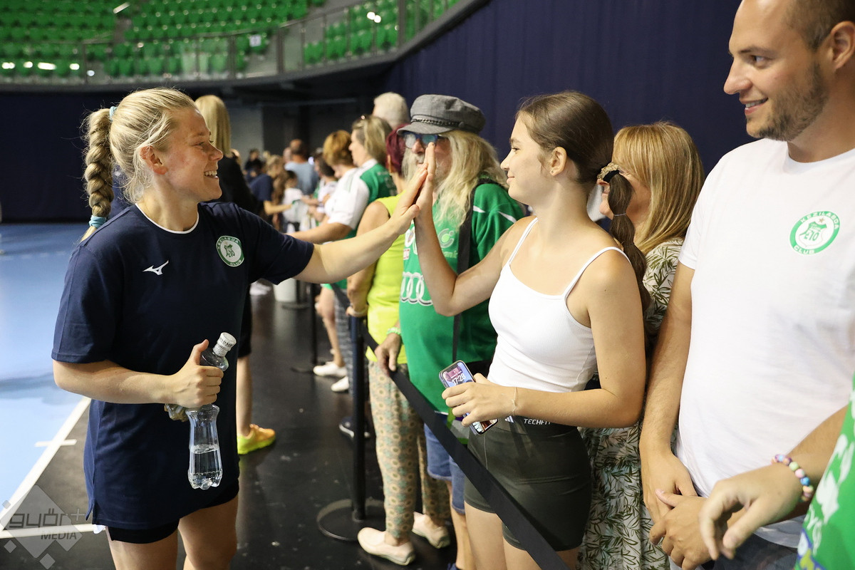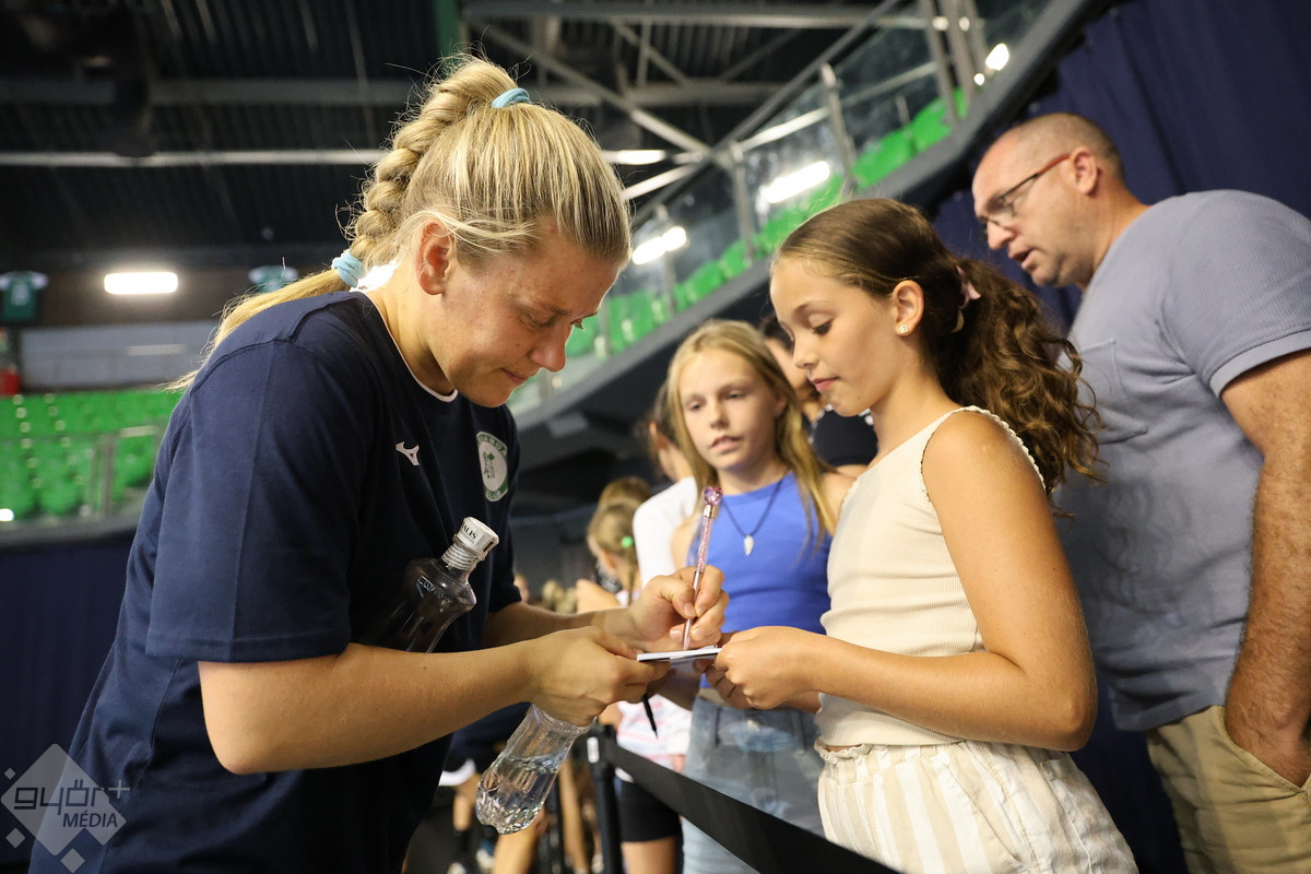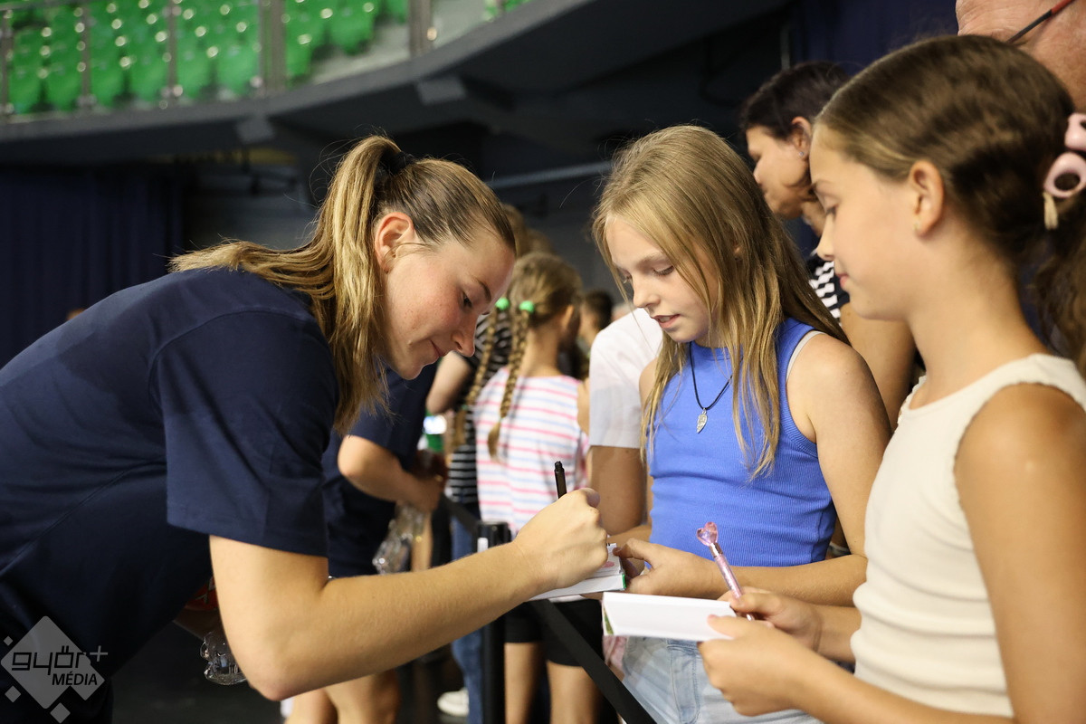 Megtartotta idénynyitó nyilvános edzését a Győri Audi ETO KC, amely előtt a sajtó munkatársai kérdezhették a visszatérő játékosokat, majd a labdás gyakorlás után a szurkolókon volt a sor – begyűjthették az első autogramokat és közös fotókat a lányokkal.