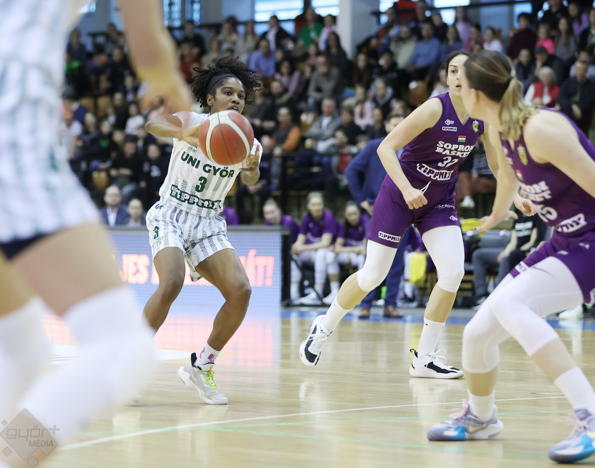 Jobban jött ki a második félidőre a Sopron, Brooks tripláival hamar 9 pontra növelték az előnyüket. Egy perccel később Fegyverneki hármasával már 10 volt közte, majd Magbergor 42-54-re alakította az állást, amire Cziczás László rögtön időt kért. Jelena Brooks félelmetes százalékkal dobta a triplákat, a harmadik negyed 6. percében már 5 sikeres dobásnál járt, ezzel pedig 13 pontos előnyhöz juttatta csapatát. Két perccel a negyed vége előtt már a győrieknek is behullott egy hármas, Bach Bogi állt bele a dobásba.