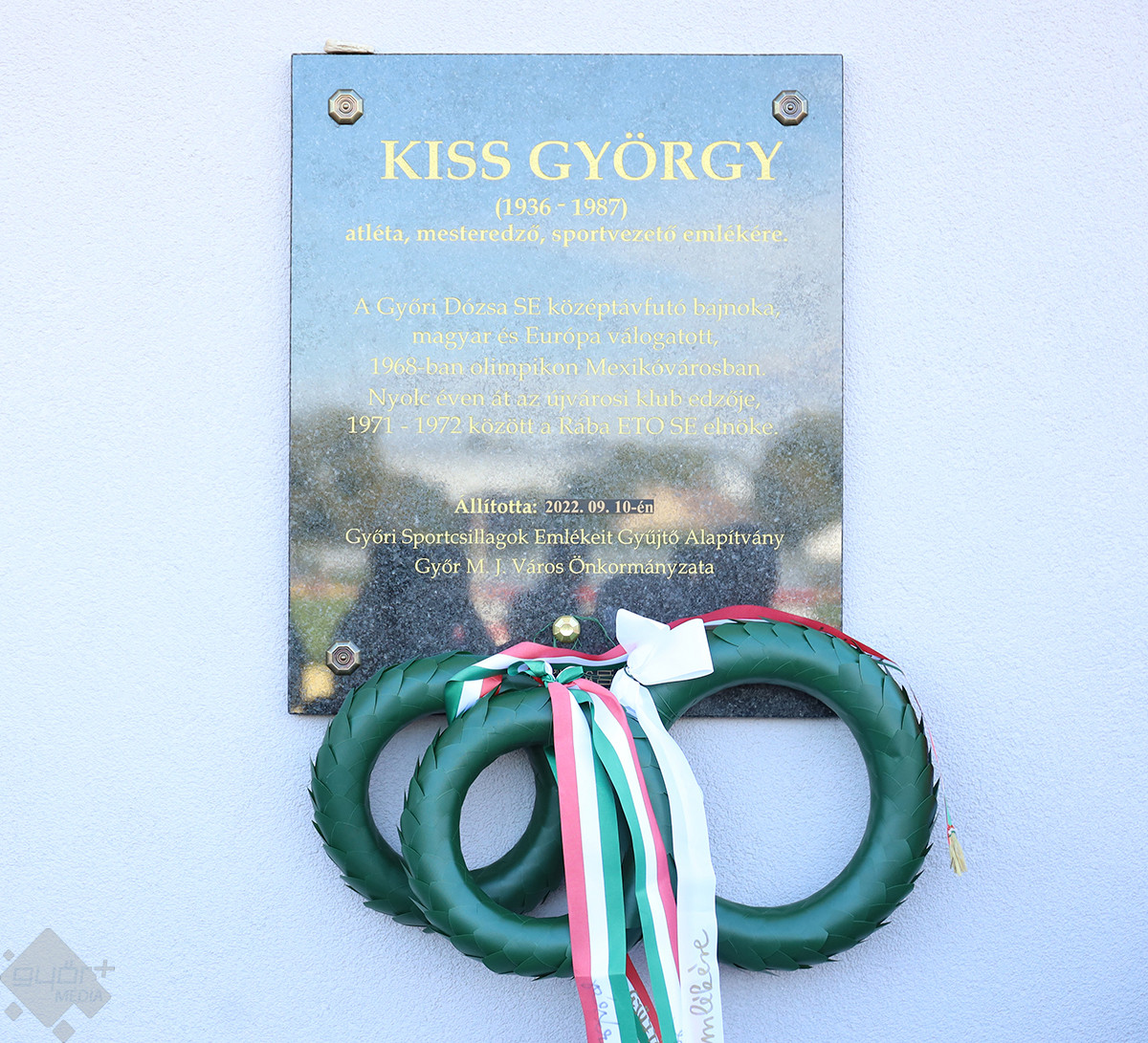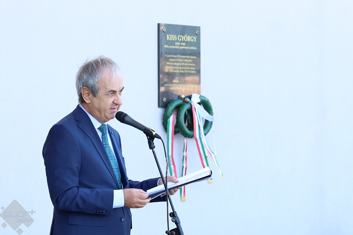 Kiss György, atléta emléke előtt tisztelegve avattak márványtáblát az Olimpiai Sportparkban szombaton. Az emléktáblát Győri Sportcsillagok Emlékeit Gyűjtő Alapítvány és a város önkormányzata állíttatta.