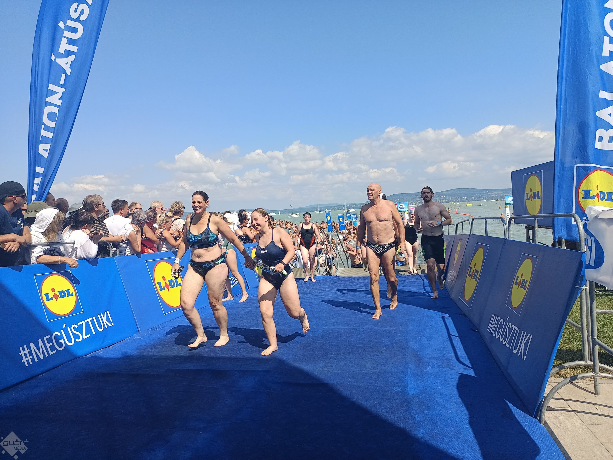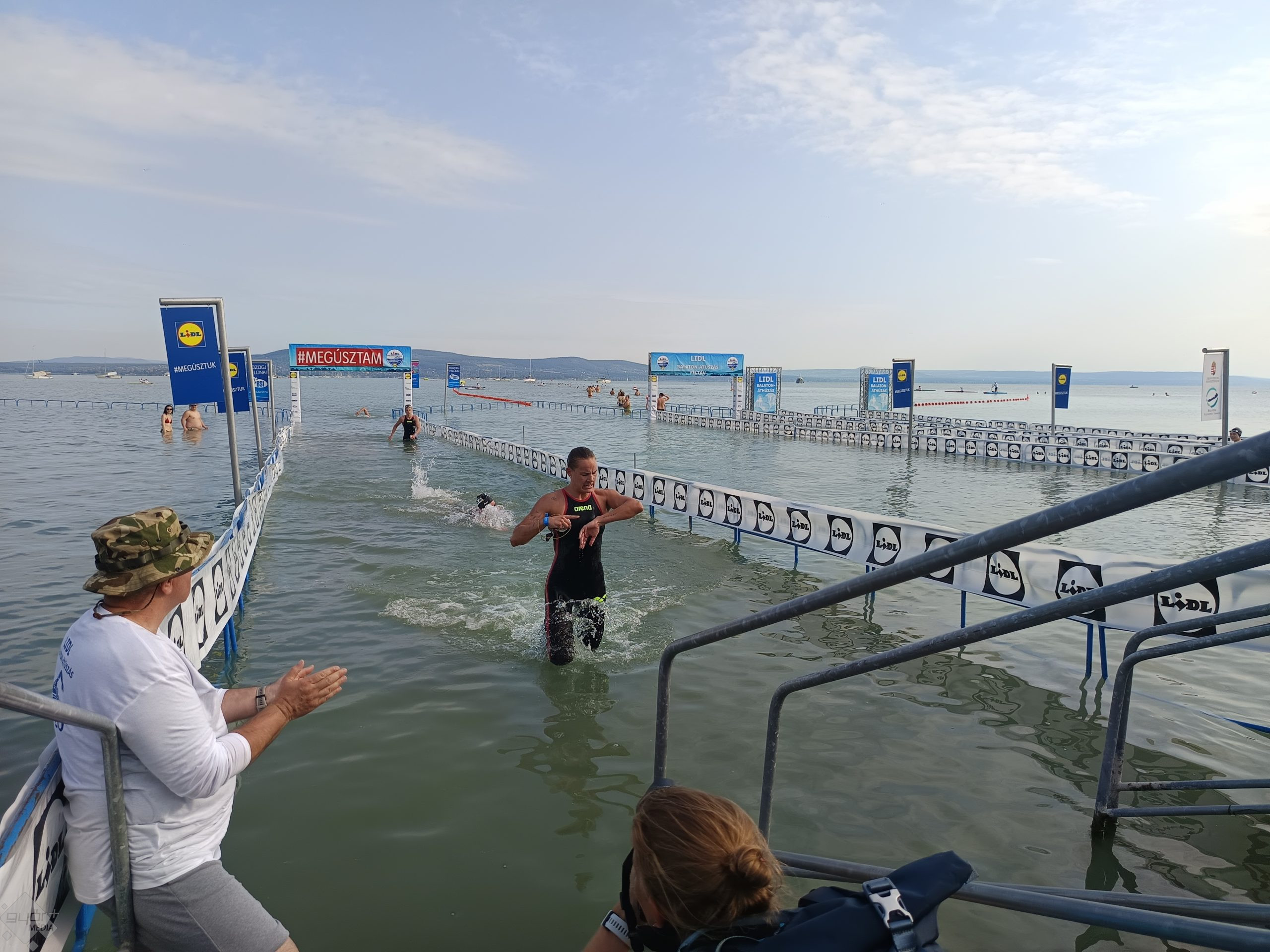 Volt olyan hölgy is, aki 15 éve kezdett el nyílt vízen úszni. „A déli parthoz közeledve tapasztaltam nagyobb hullámokat, de kellemes volt. Tavaly rosszabb volt. Az úszósávon végig vitorlások vannak, nem rémisztő a nyílt vízen úszni”.