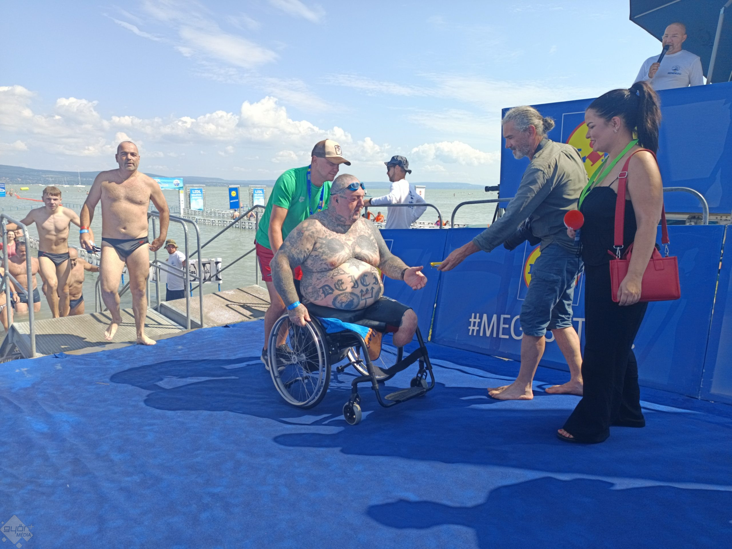 Patkás Tamás, a győriek Rocky Tomija 3 óra 16 perc után érte el a déli partot. A paraúszó háromezer méter után érezte a hullámok okozta nehezítést: „Jobbról veszem a levegőt, és folyamatosan jobbról jöttek a hullámok és elég sok hajó volt bent, ami gerjesztette a hullámokat. Azt mondom, küzdős volt.” A kiváló parasportoló a tizedik, jubileumi versenyét teljesítette, mindenféle időcél nélkül, edzés gyanánt teljesítette a távot. „A Balaton különleges, a tengervíz jobban fenntartja a testet” – utalt a Csendes-óceáni úszására a sportoló, ahol jóval hűvösebb, 13 fokos vízben úszott nemrég. „Ez nekem már meleg, a 20 fokos vizet szeretem általában” – tette hozzá.