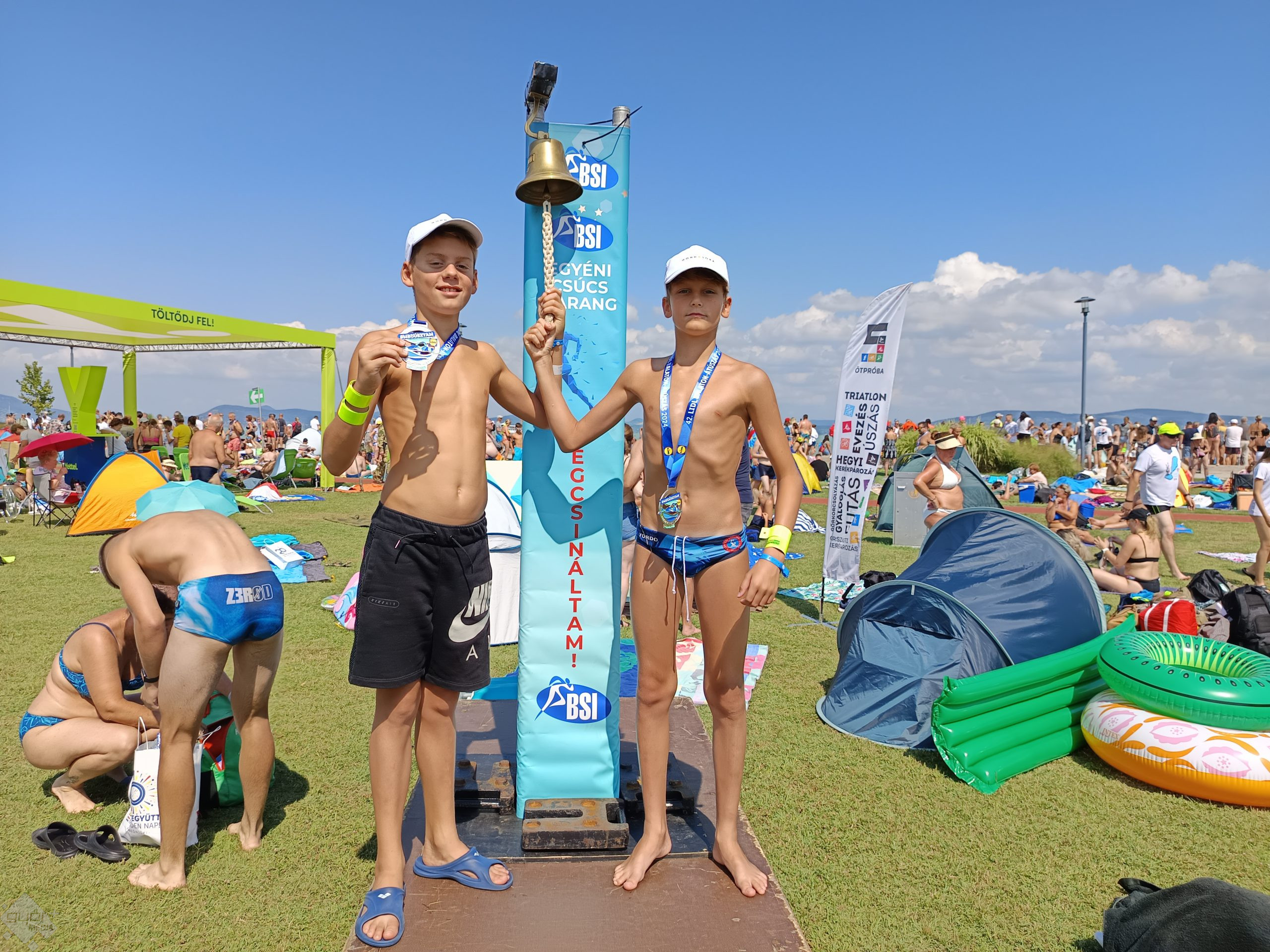 Ifjú titánokból sem volt hiány. Komáromi Vilmos a verseny előtti napon ünnepelte a tizenkettedik születésnapját, barátjával, az azonos korú Bíró Vencellel úszott. „ A szél miatt mindig kisodródtunk. Néha jött a komp is és nagy hullámok lettek.” Vilmos úszó, Vencel vízilabdázik, így nem volt ismeretlen számukra a terep. Kicsit aggódtak azon, hogy a versenyt tovább halasztják az időjárás miatt. „Szentesiek vagyunk, már pénteken érkeztünk egy rokonhoz, és út közben láttuk meg, hogy megtartják.” A stratégiájukról elárulták: „Négy kilométernél megbeszéltük, hogy addig együtt megyünk, utána ment mindenki a tempójában. Végig gyorsúszásban voltunk, csak néhány tempót úsztunk mellben, hogy pihenjünk”. Vilmos 1 óra 58 perc, Vencel kerek kettő óra alatt ért célba.