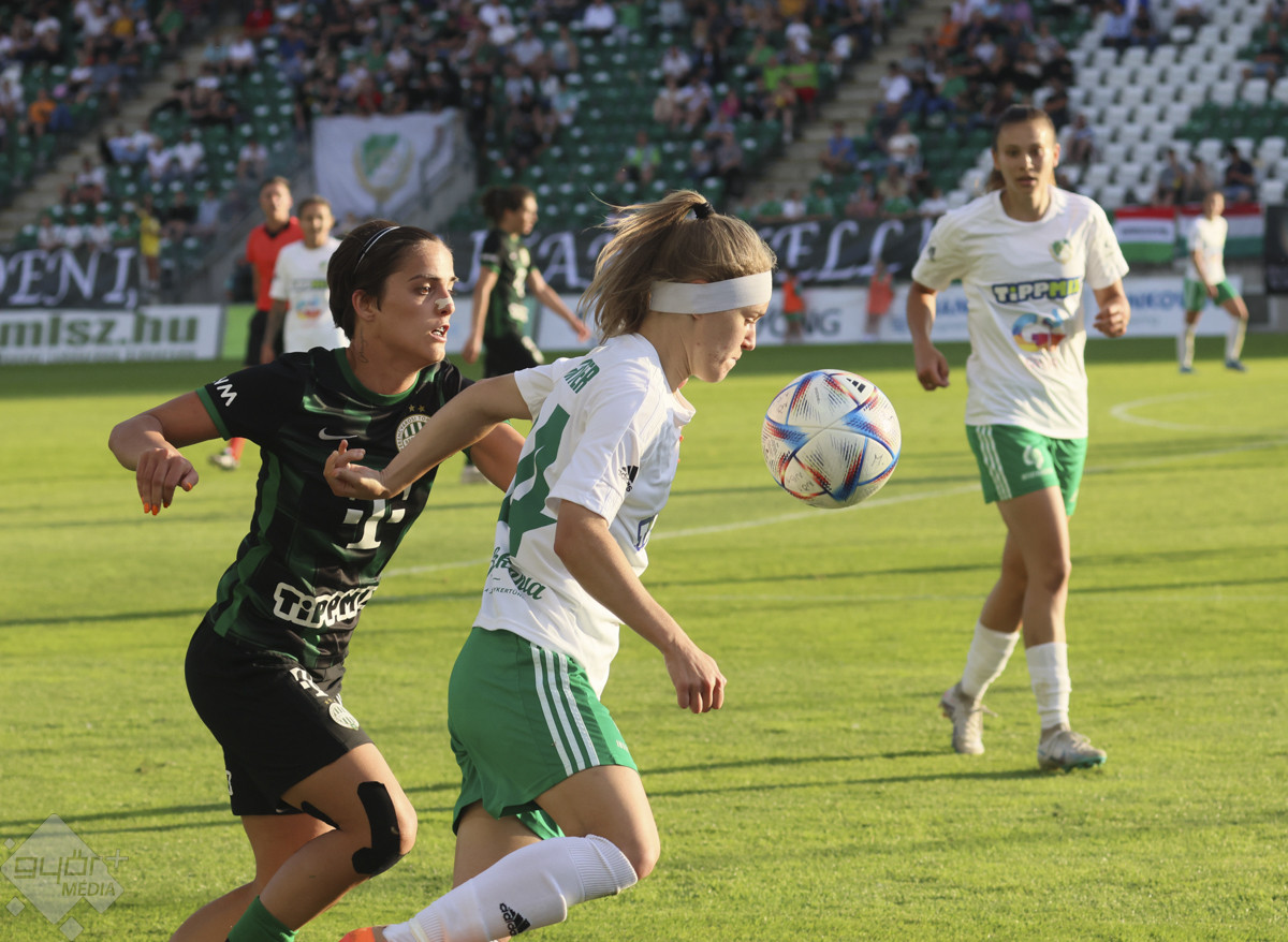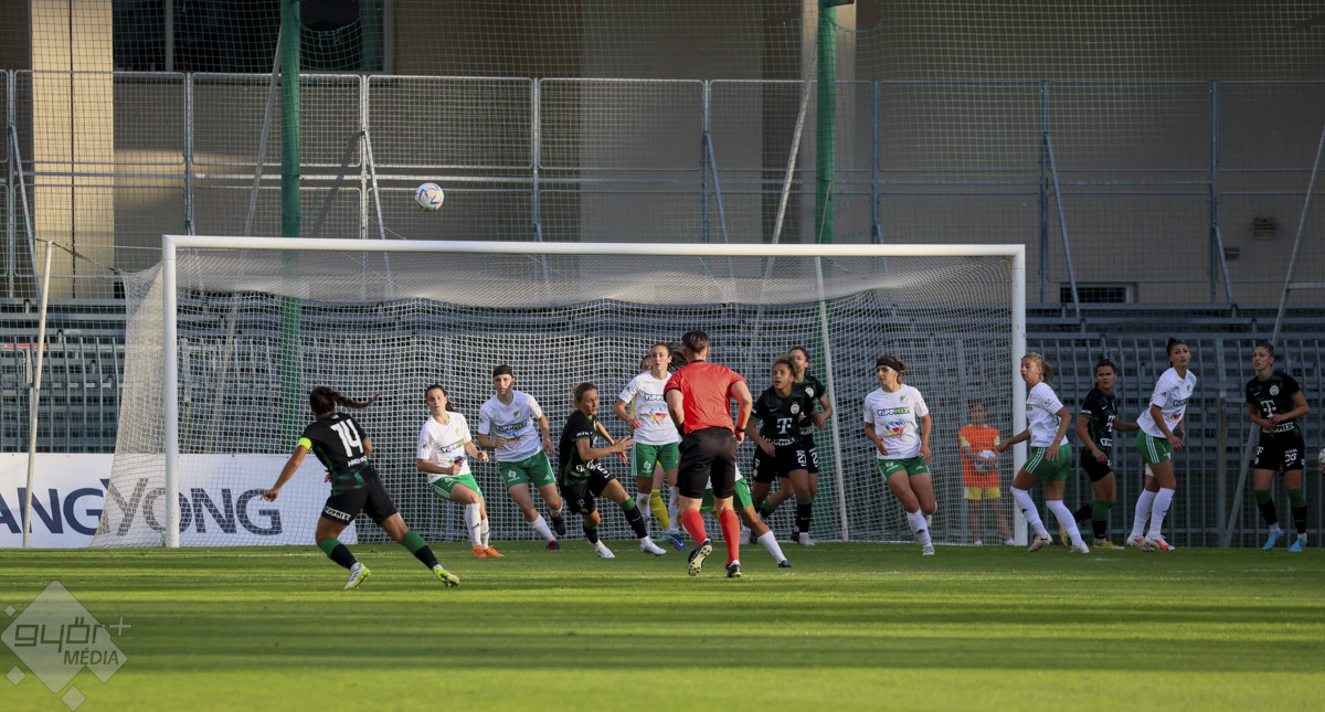 A kezdőrúgást Verebes Krisztina, Verebes József lánya végezte el. Hosszú percekig tartó küzdelem árán sikerült a Fradi térfelére átmozgatni a labdát, és bár Vachter azonnal rámozdult a kapusnak rúgott labdára, gyorsasága nem vezetett eredményre. Az első kísérletet Öreg tette, de nem talált hálót. A Fradi részéről a 24. percben érkezett az első kapurarúgás Diószegitől, ami a felső lécre pattant. Savanya indítását Kovács Laura kísérelte meg érvényesíteni, majd a kapusról kipattanó labdát követő szögletrúgásnak sem lett gyümölcse. Ladhani a 37. percben jutott újabb lehetőséghez szabadrúgással, de ebből sem született gól. Nagy bombája az ETO kapujának felső lécét találta. Kubassova sárgát érő szabálytalanságát követően Kovács rúgta a szabadot. A kapu előtt kialakult nagy bolyból nem tudták az ETO játékosai a labdát a kapuba kanalazni. Kettő perc hosszabbításban Vachter jutott lehetőséghez, de ismét a kapus kezébe pattant a labda.