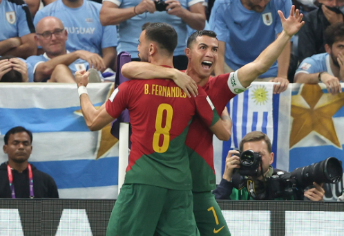 A portugál válogatott Bruno Fernandes góljaival 2-0-ra legyőzte az uruguayi csapatot a katari labdarúgó-világbajnokság H csoportjának hétfői második fordulójában, ezzel bejutott a nyolcaddöntőbe.