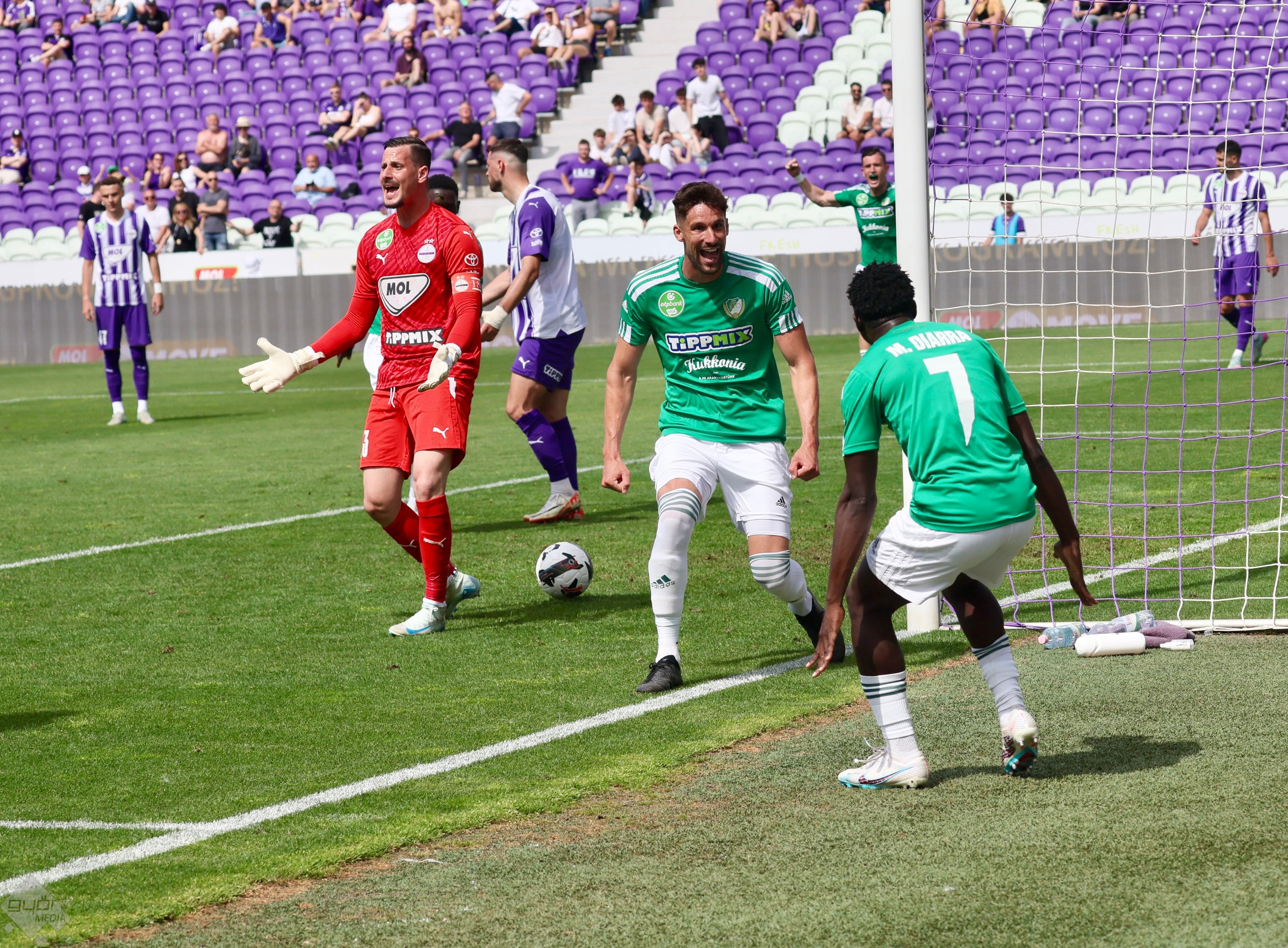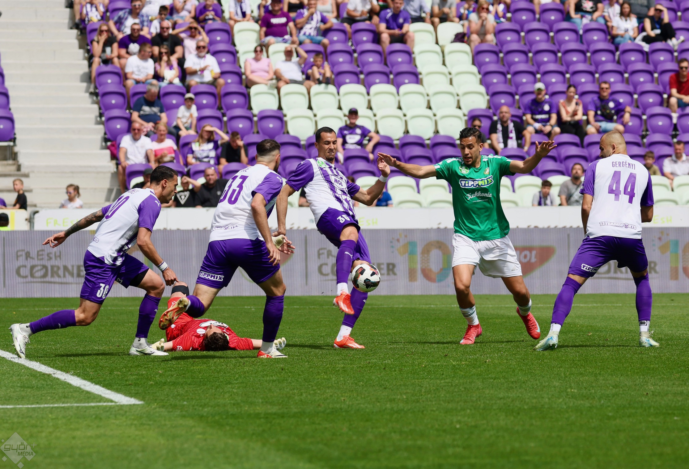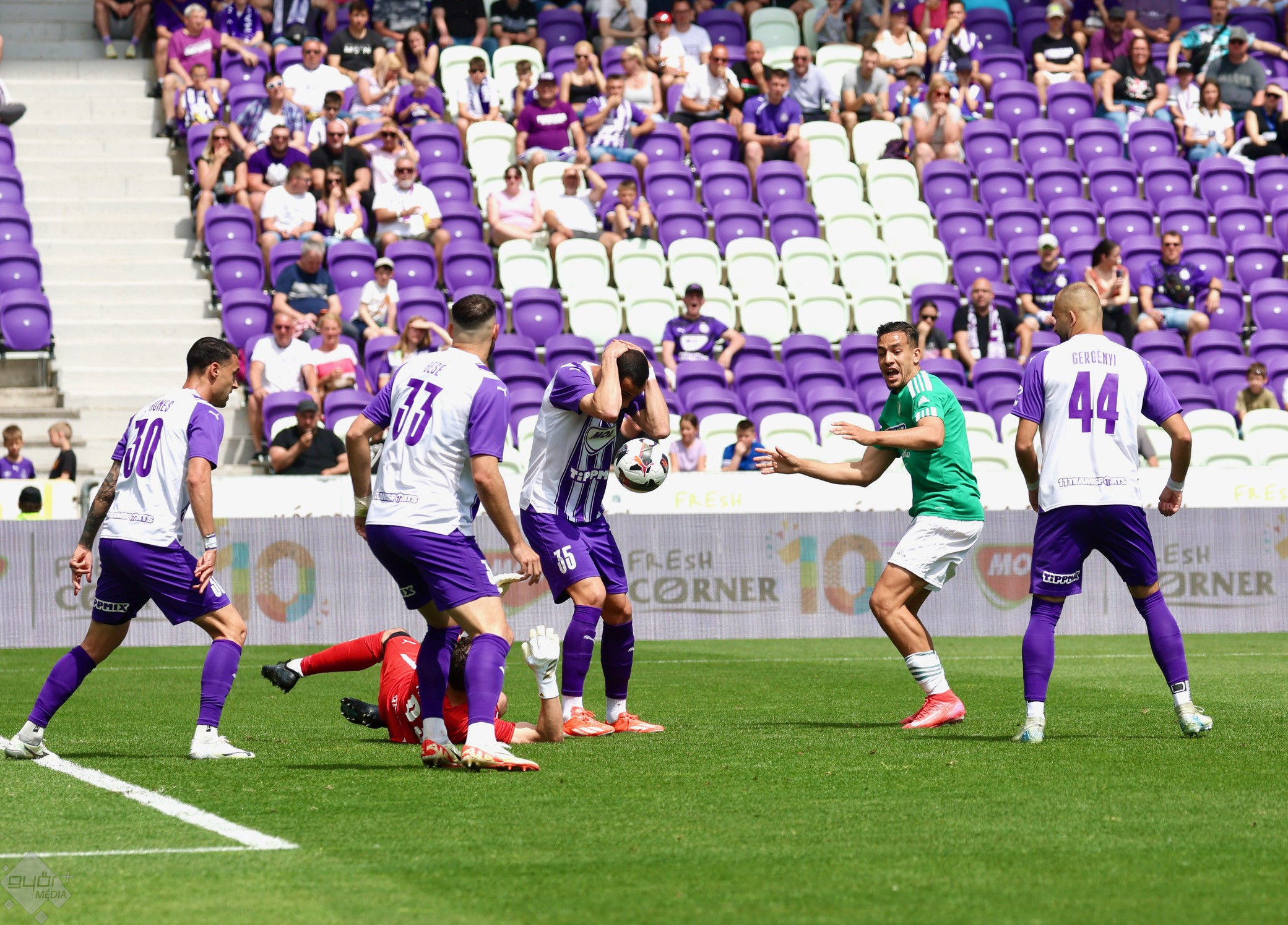 A győri mozgósítás jól sikerült: több mint 500 szurkoló kísérte kedvenc csapatát a Megyeri úti stadionba, megtöltve a vendégszektort. A fővárosban a sportoláshoz már annyira nem ideális, 25 fok feletti hőmérséklet fogadta a játékosokat.