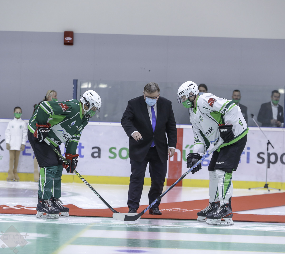 ,,Győrben olyan emberek veszik körül a korcsolyázást, a jégkorongot, akik szívüket-lelküket beleteszik. Közülük is kiemelnék két nevet, akik nélkül ma nem lehetnénk itt, hiszen az sem biztos, hogy létezne ez a klub, a sportág Győrben. Bartalis Józsefnek és Szarvas Zoltánnak sok család köszönheti azt, hogy közelebb került a jeges sportokhoz, a gyerekek megtanultak korcsolyázni. Minderre a következő generációknak is lehetőségük lesz, de az új létesítményben már jobb körülmények között” – hangzott el Kara Ákos győri országgyűlési képviselőtől.