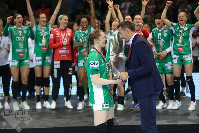 Az már egy héttel ezelőtt eldőlt, hogy a listavezető győriek megvédik címüket az élvonalban, de a játékosok és a szakmai stáb tagjai csak a mostani mérkőzés után kapták meg aranyérmeiket.