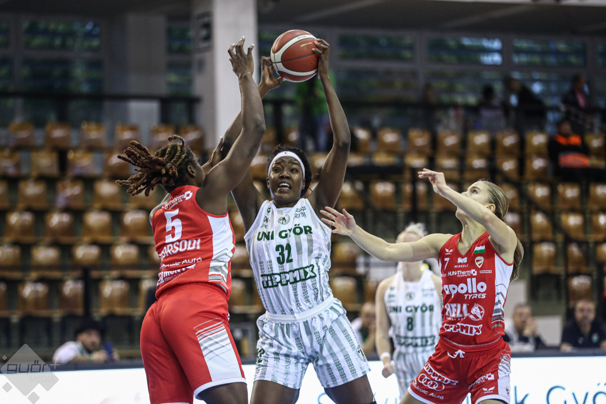 UNI Győr: ELLENBERG 22/15, DOMBAI 24/6, Bach 2, Varga Zs. 2, MOMPREMIER 21. Cs.: RUFF-NAGY D. 4, Török Á. 2, Dubei 2, Williams 7, Rozmán, Oroszová 2. Edző: Cziczás László.