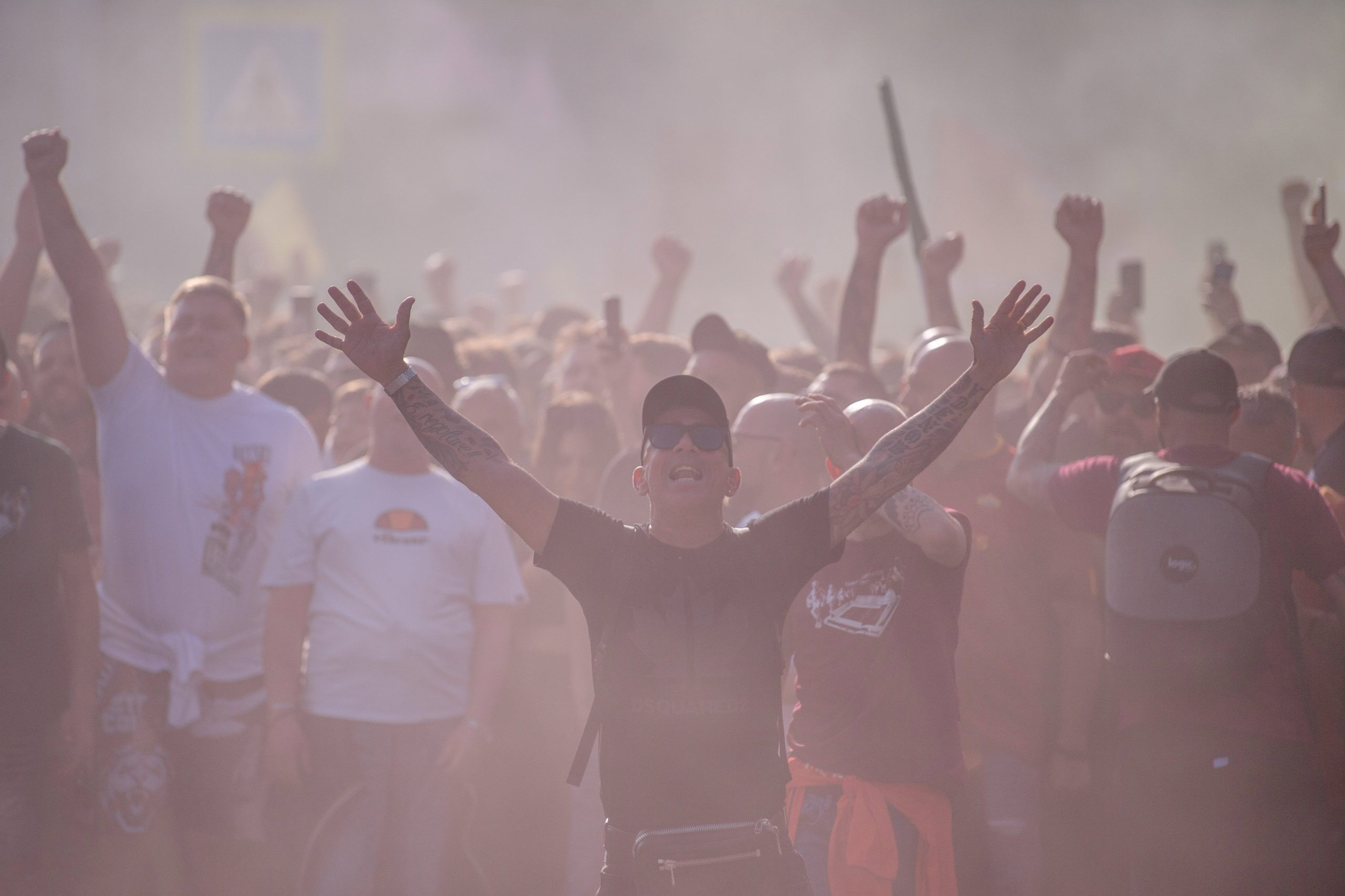 A Puskás Arénában rendezik a labdarúgó Európa-liga döntőjét, ahol spanyol Sevilla FC az AS Romával csap össze. A szurkolók nem várták meg a kezdő sípszót.