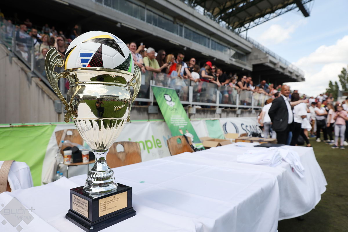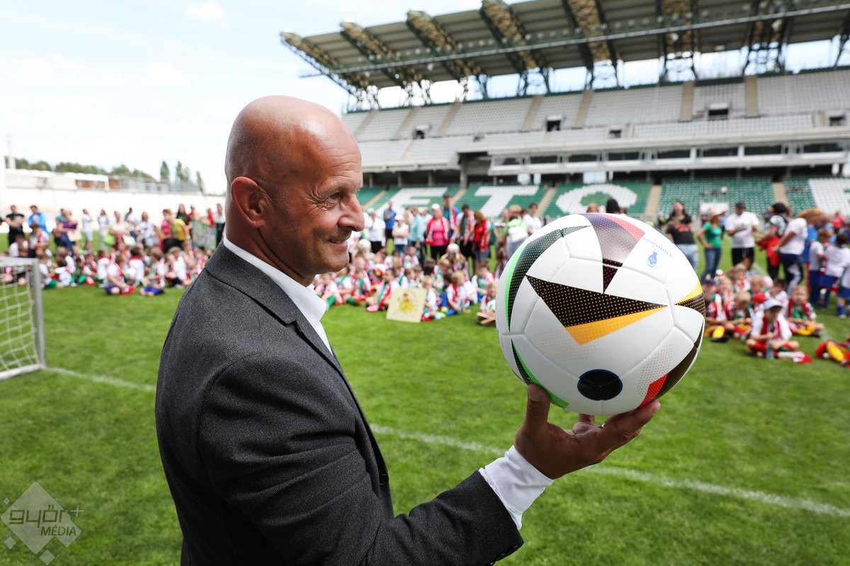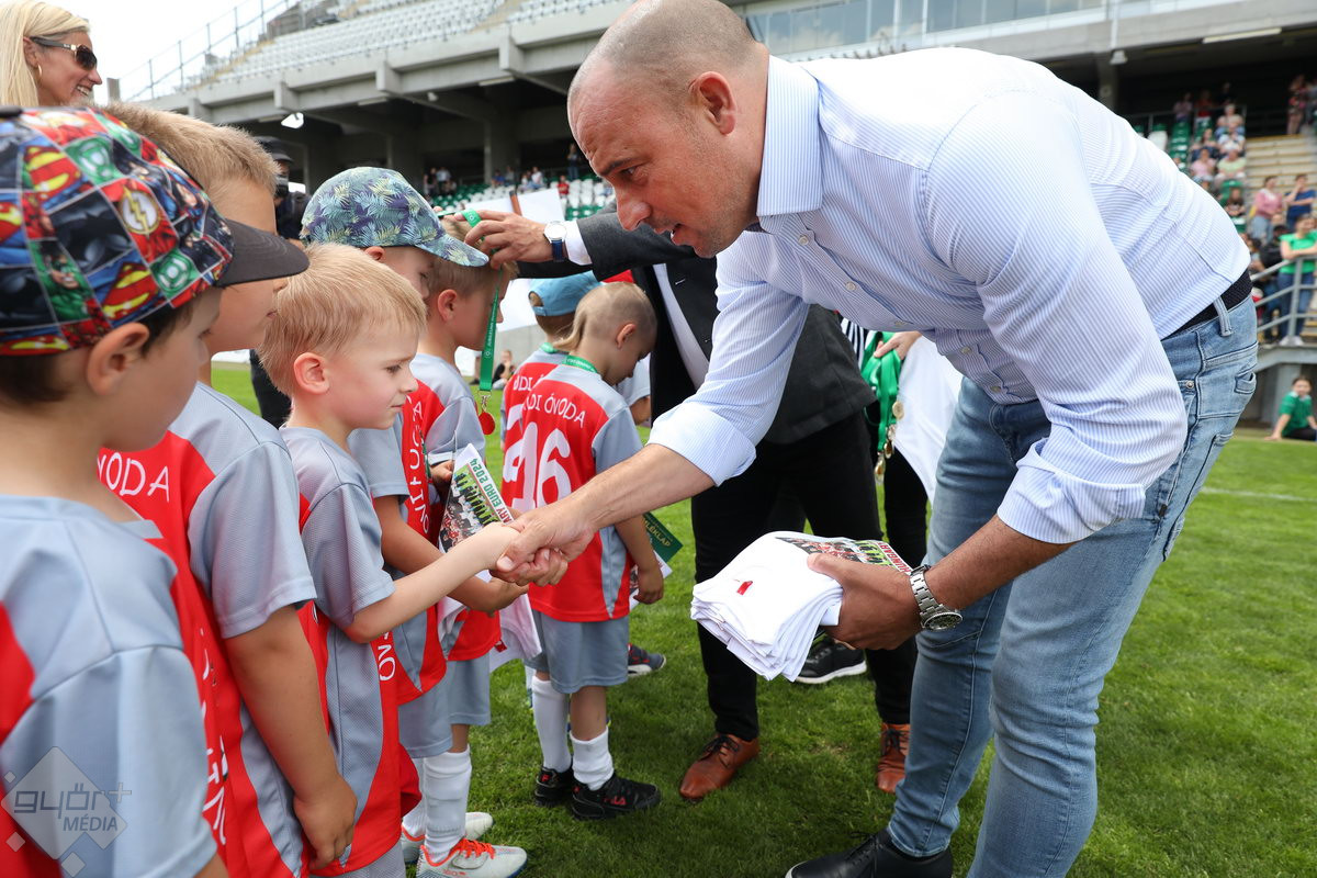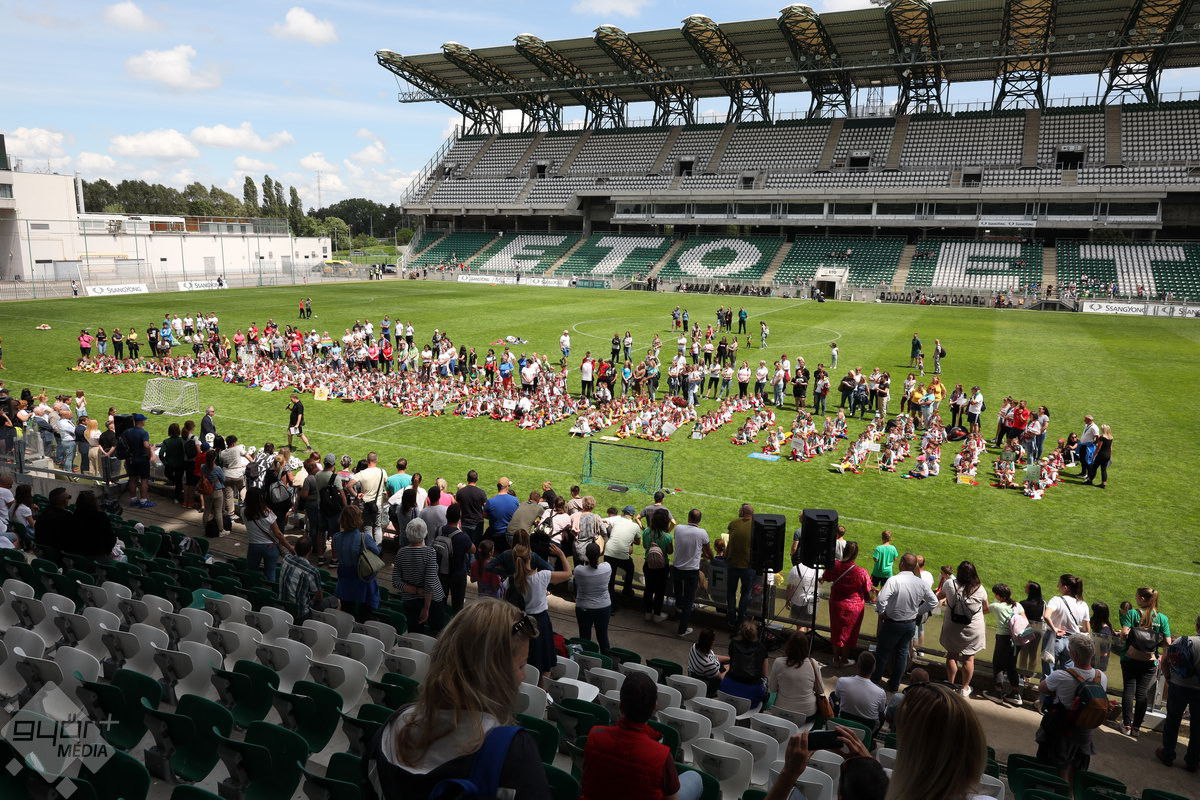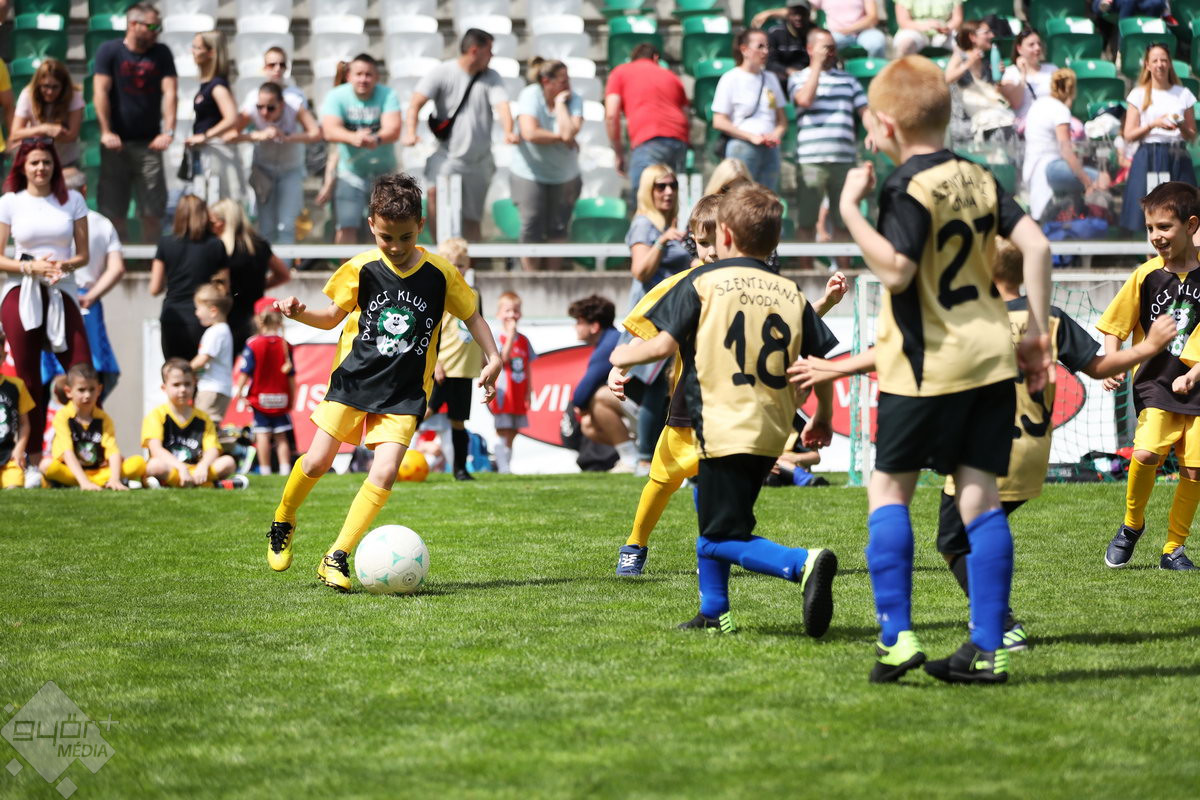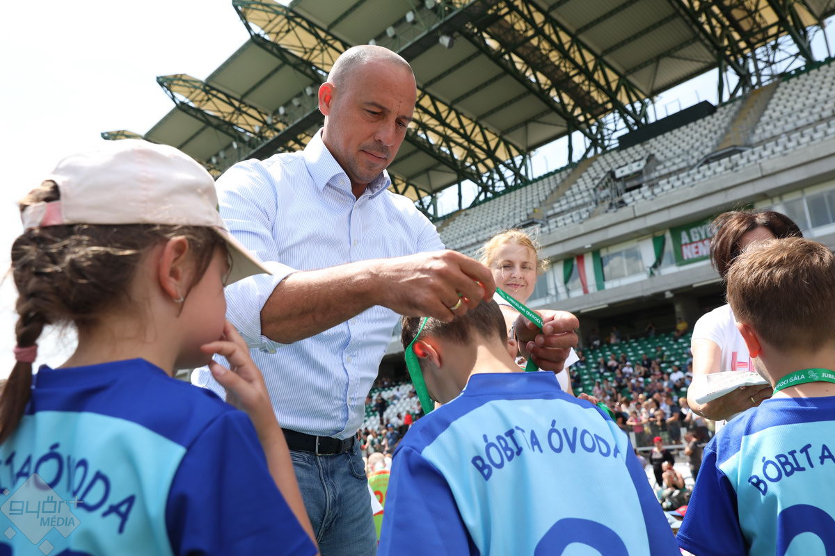 Idén ünnepli alapításának negyedszázados évfordulóját a Győri Ovifoci Klub. A 25 éves jubileumra nagyszabású gálát szerveztek szombaton délelőtt az ETO Stadion centerpályáján, ahol 33 óvoda hétszáznál is több focista palántája vonult fel és játszott izgalmas meccseket egész délelőtt.