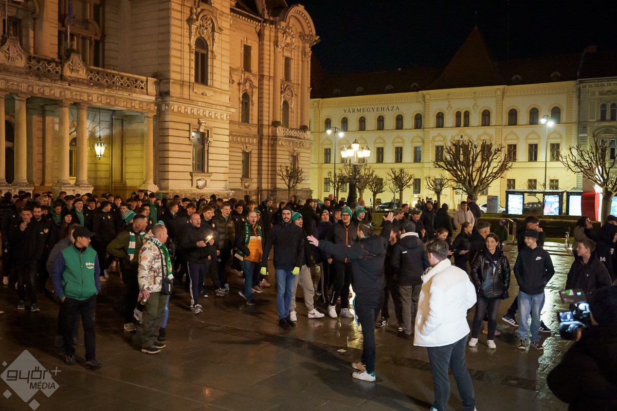 Szerdán 18 órától hangolódásra várták az ETO FC szurkolókat a Városháza előtti téren, hiszen csütörtökön fontos meccset vívnak a zöld-fehérek a Magyar Kupában.
