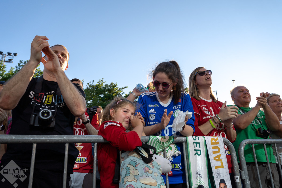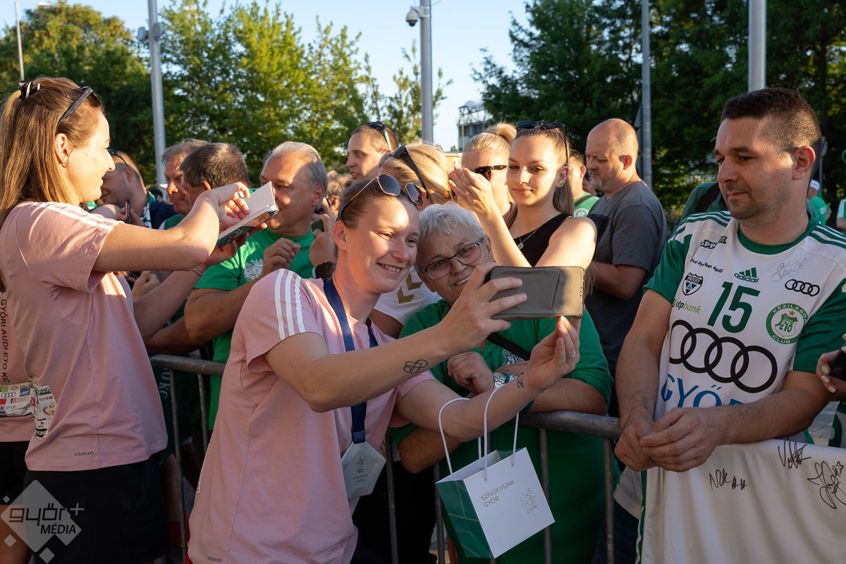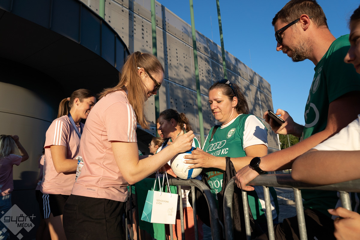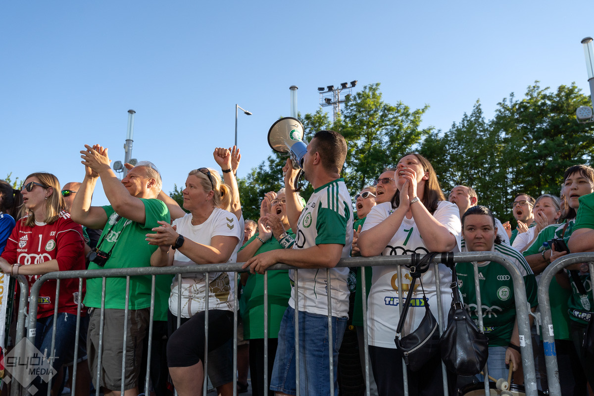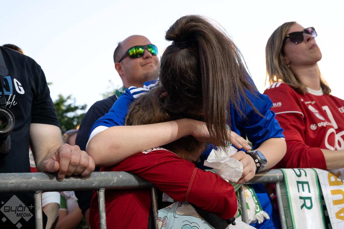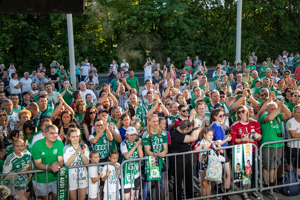 Több tucat győri drukker gyűlt össze az Audi Arénánál, az ETO szurkolói végig éltették a csapatot, amely egészen a végsőkig három sorozatban is az első helyért harcolt. Látszott, a közönség rendkívül hálás a kézilabdázóknak. Zúgott a hajrá ETO, teli torokból kiabálták, hogy szép volt, lányok!