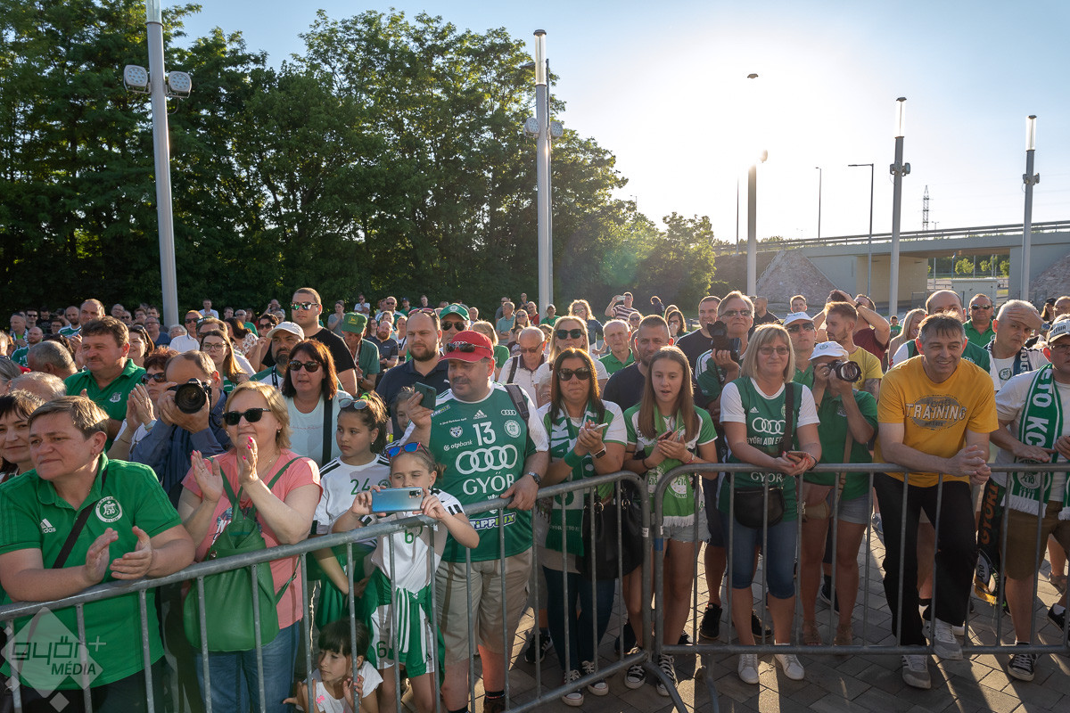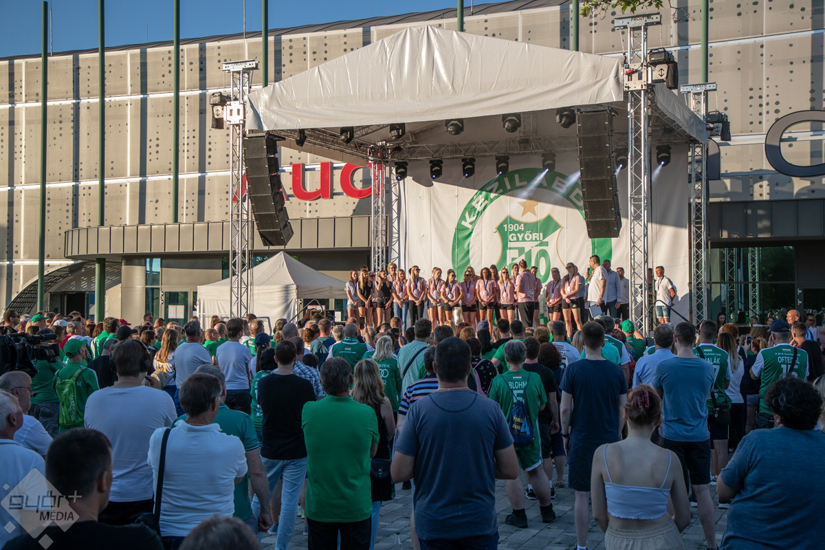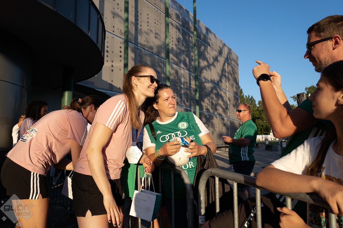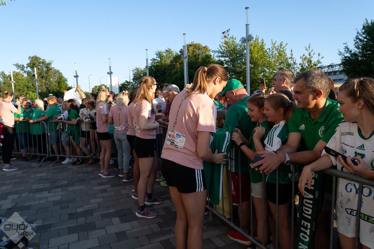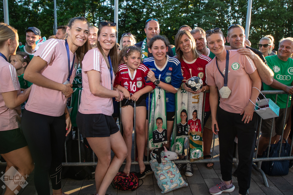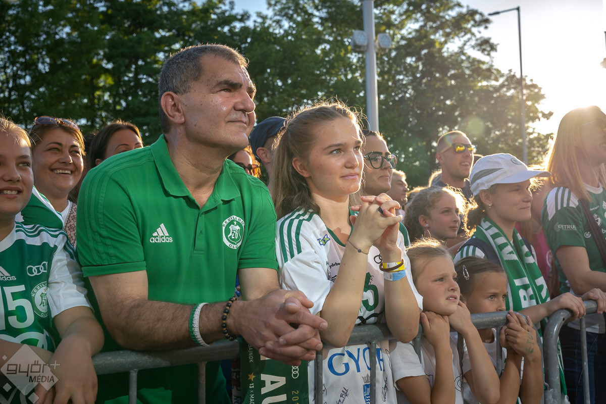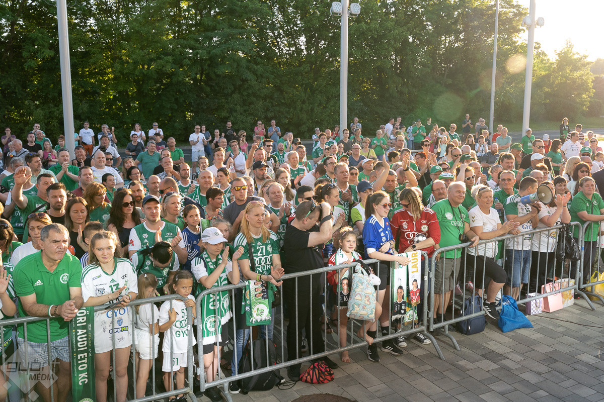 Több tucat győri drukker gyűlt össze az Audi Arénánál, az ETO szurkolói végig éltették a csapatot, amely egészen a végsőkig három sorozatban is az első helyért harcolt. Látszott, a közönség rendkívül hálás a kézilabdázóknak. Zúgott a hajrá ETO, teli torokból kiabálták, hogy szép volt, lányok!
