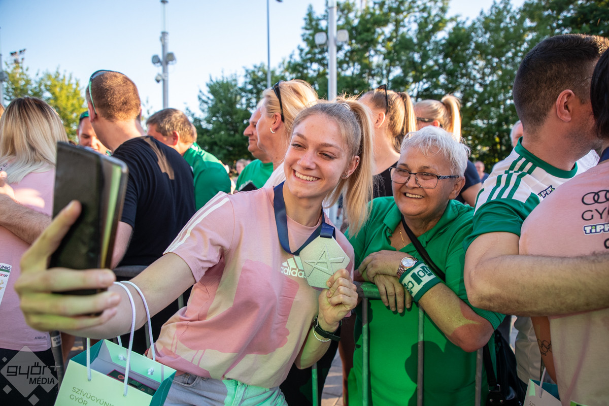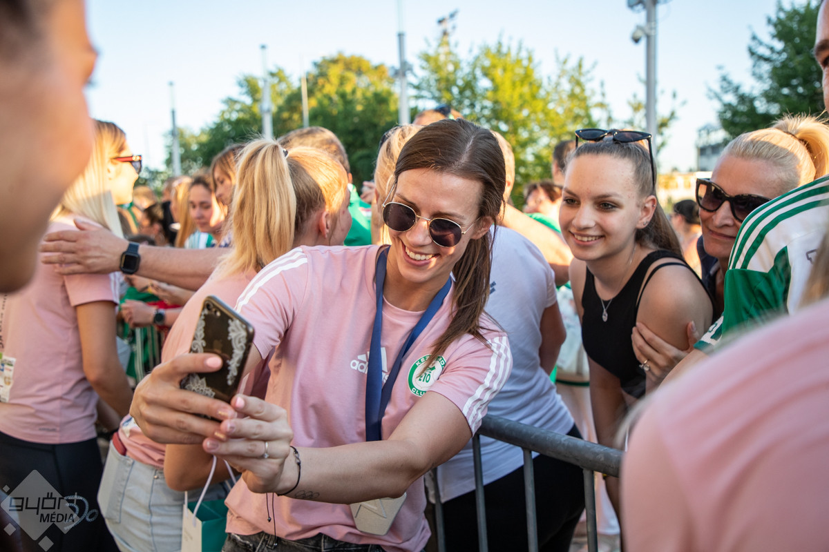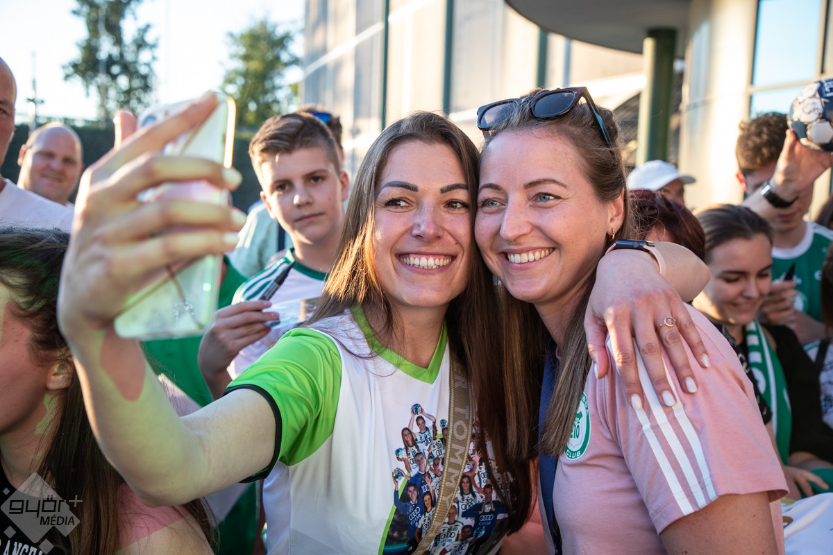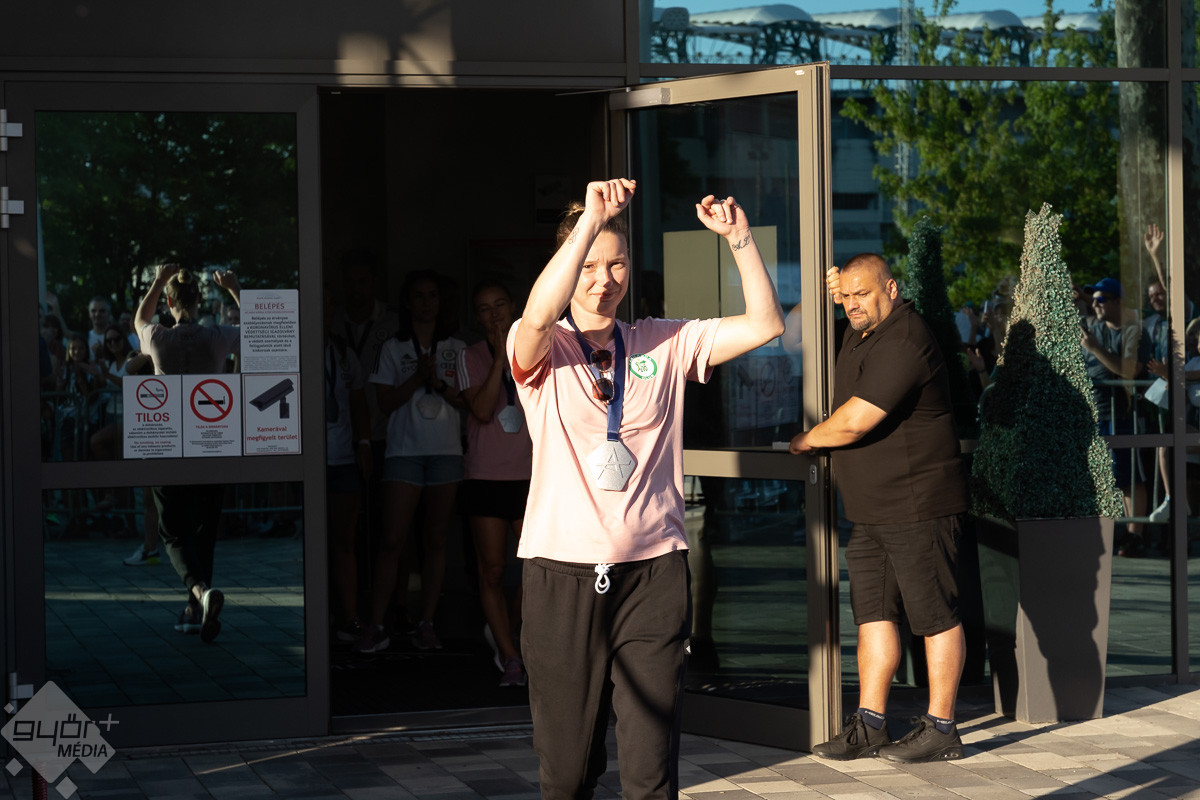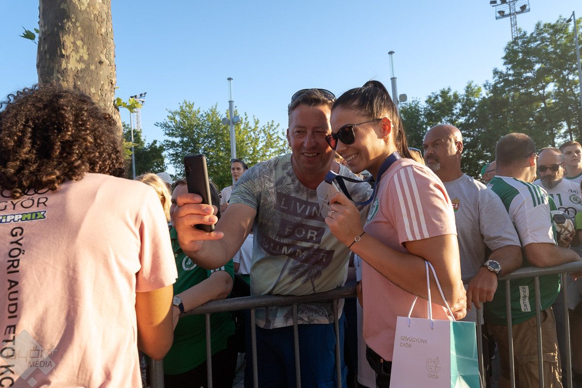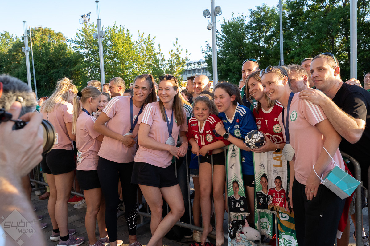 Több tucat győri drukker gyűlt össze az Audi Arénánál, az ETO szurkolói végig éltették a csapatot, amely egészen a végsőkig három sorozatban is az első helyért harcolt. Látszott, a közönség rendkívül hálás a kézilabdázóknak. Zúgott a hajrá ETO, teli torokból kiabálták, hogy szép volt, lányok!