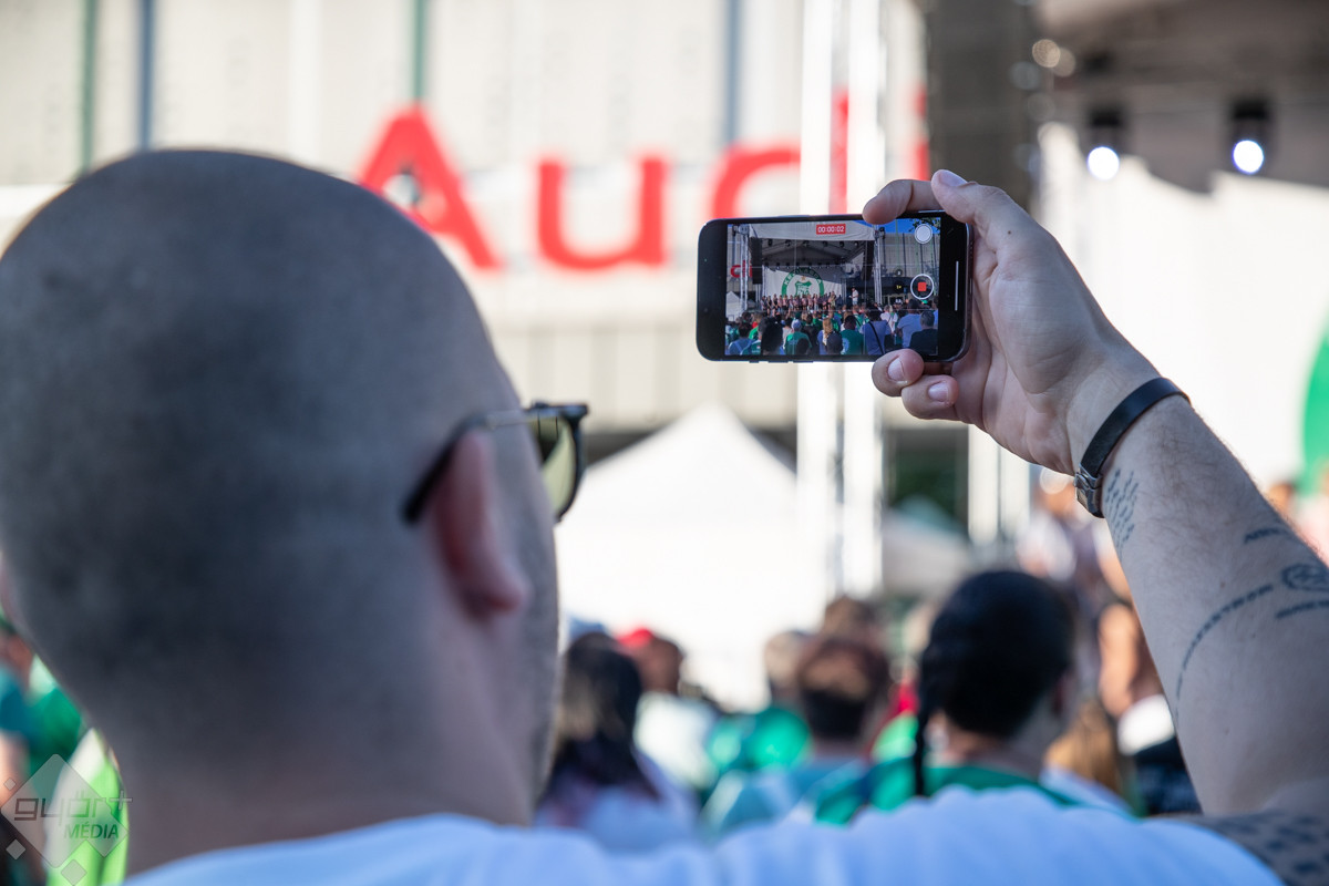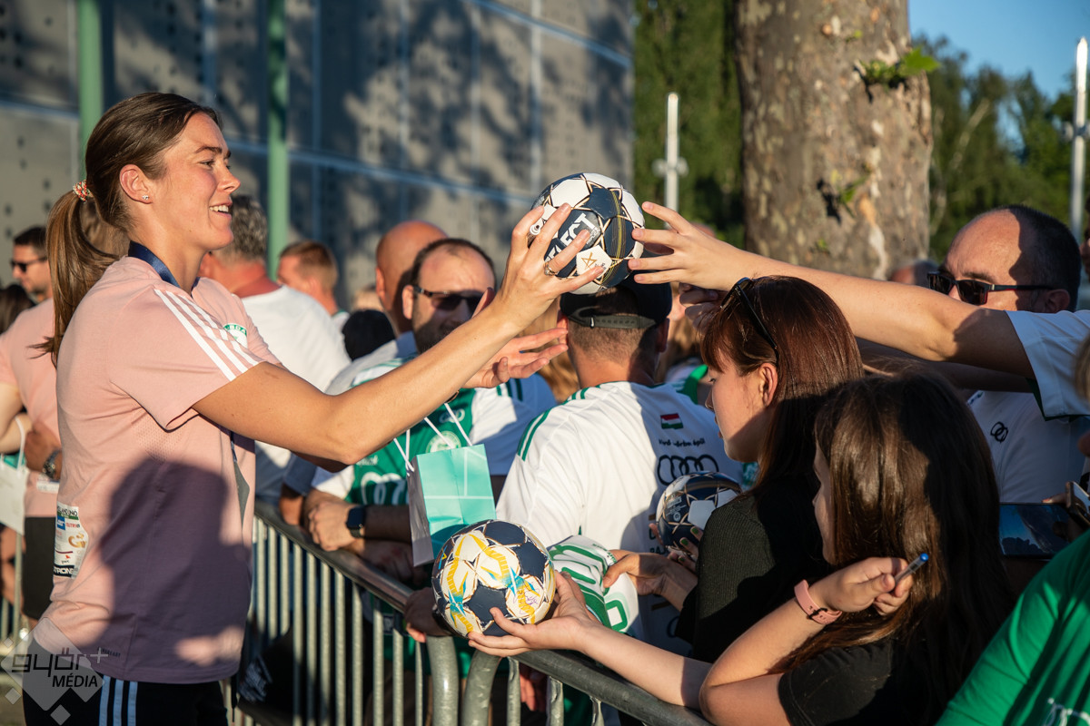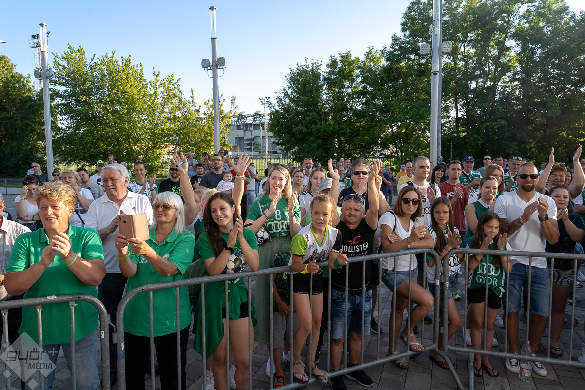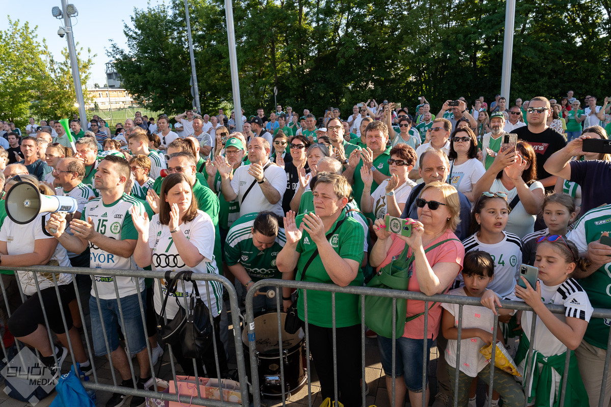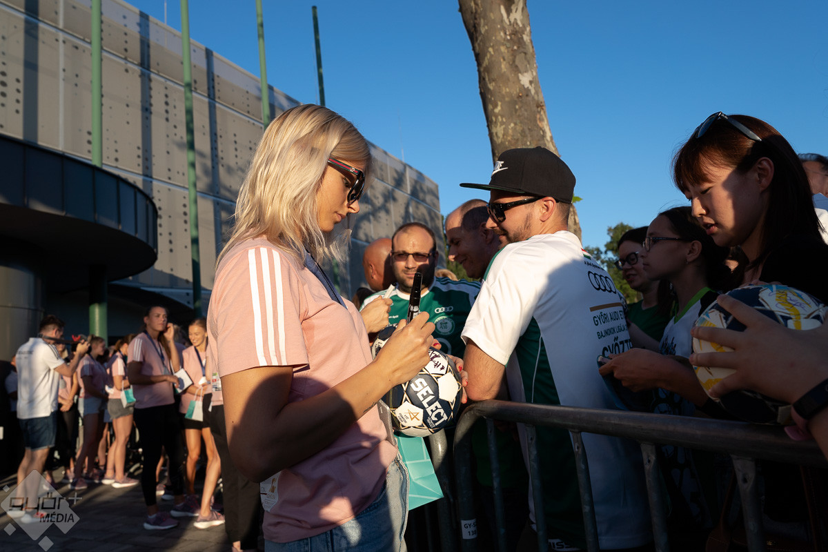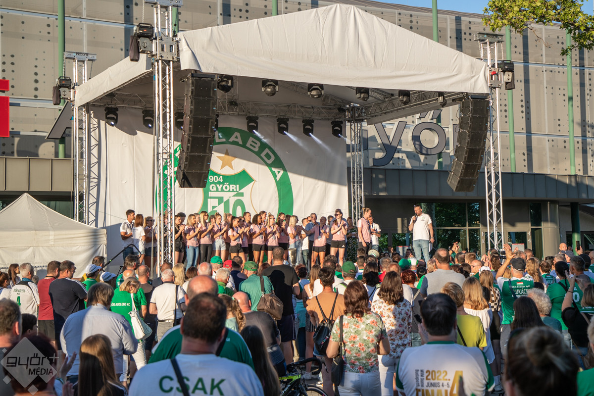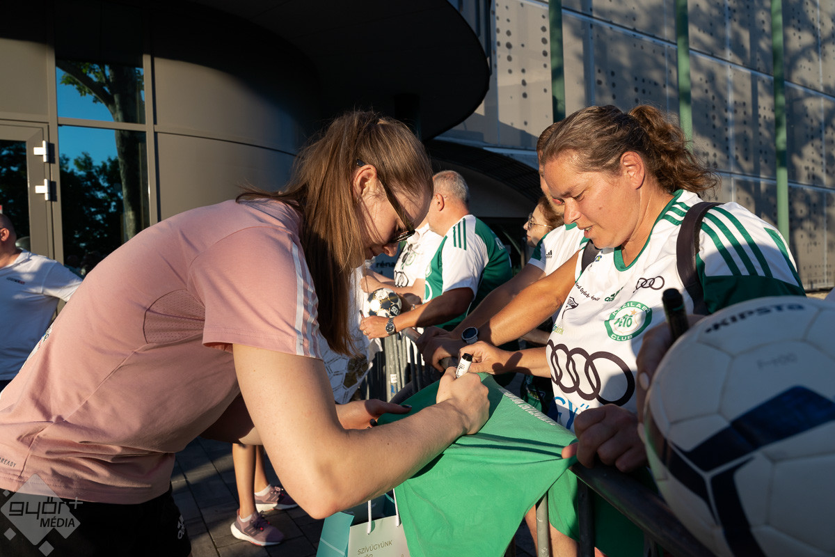 Több tucat győri drukker gyűlt össze az Audi Arénánál, az ETO szurkolói végig éltették a csapatot, amely egészen a végsőkig három sorozatban is az első helyért harcolt. Látszott, a közönség rendkívül hálás a kézilabdázóknak. Zúgott a hajrá ETO, teli torokból kiabálták, hogy szép volt, lányok!