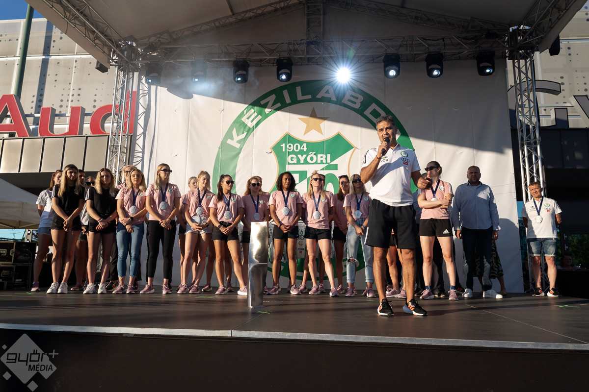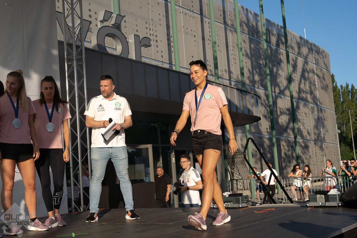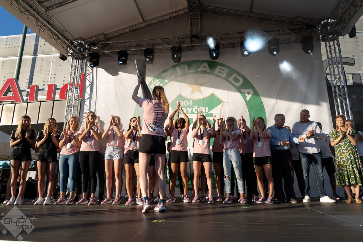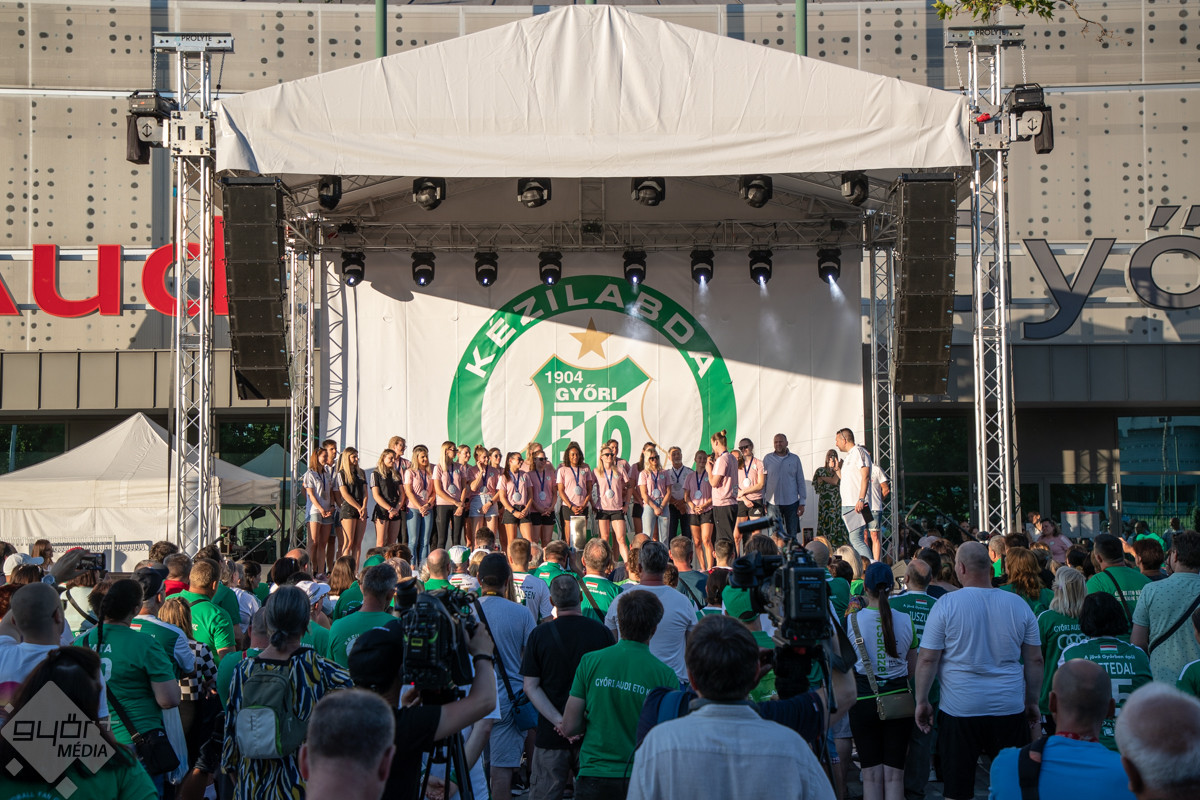 Saját arénája előtt köszöntötték a szurkolók a fantasztikus szezont záró Győri Audi ETO KC-t. A női kézilabdacsapat megnyerte a hazai bajnokságot, illetve ezüstérmesként zárt a Magyar Kupában. A nemzetközi porondon is menetelő gárda a Bajnokok Ligájában szintén második lett.