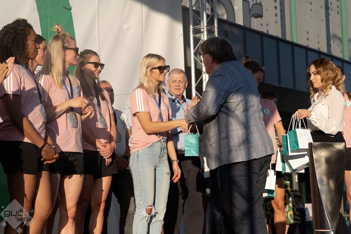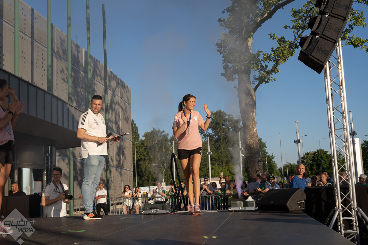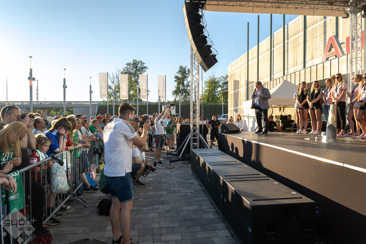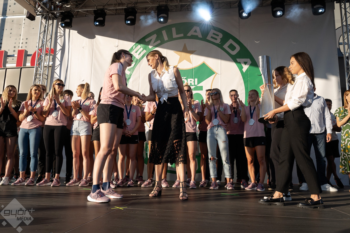 Saját arénája előtt köszöntötték a szurkolók a fantasztikus szezont záró Győri Audi ETO KC-t. A női kézilabdacsapat megnyerte a hazai bajnokságot, illetve ezüstérmesként zárt a Magyar Kupában. A nemzetközi porondon is menetelő gárda a Bajnokok Ligájában szintén második lett.