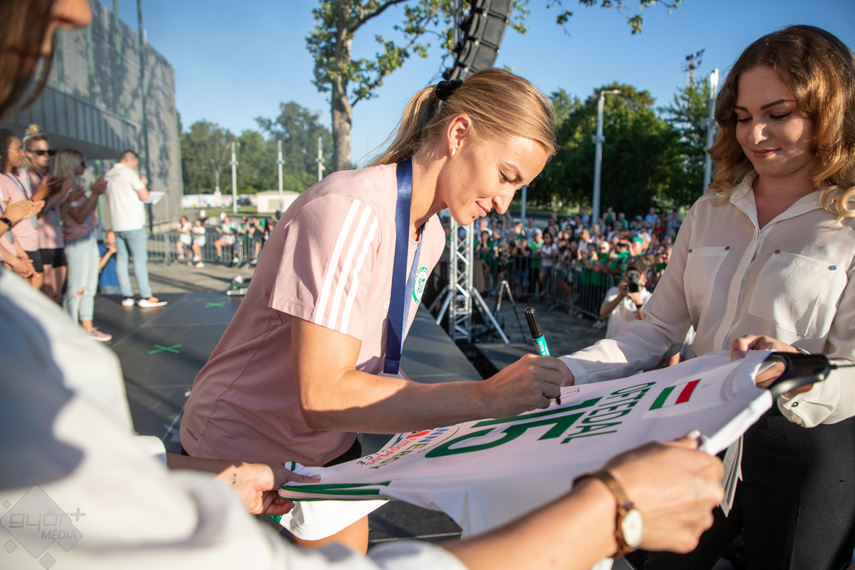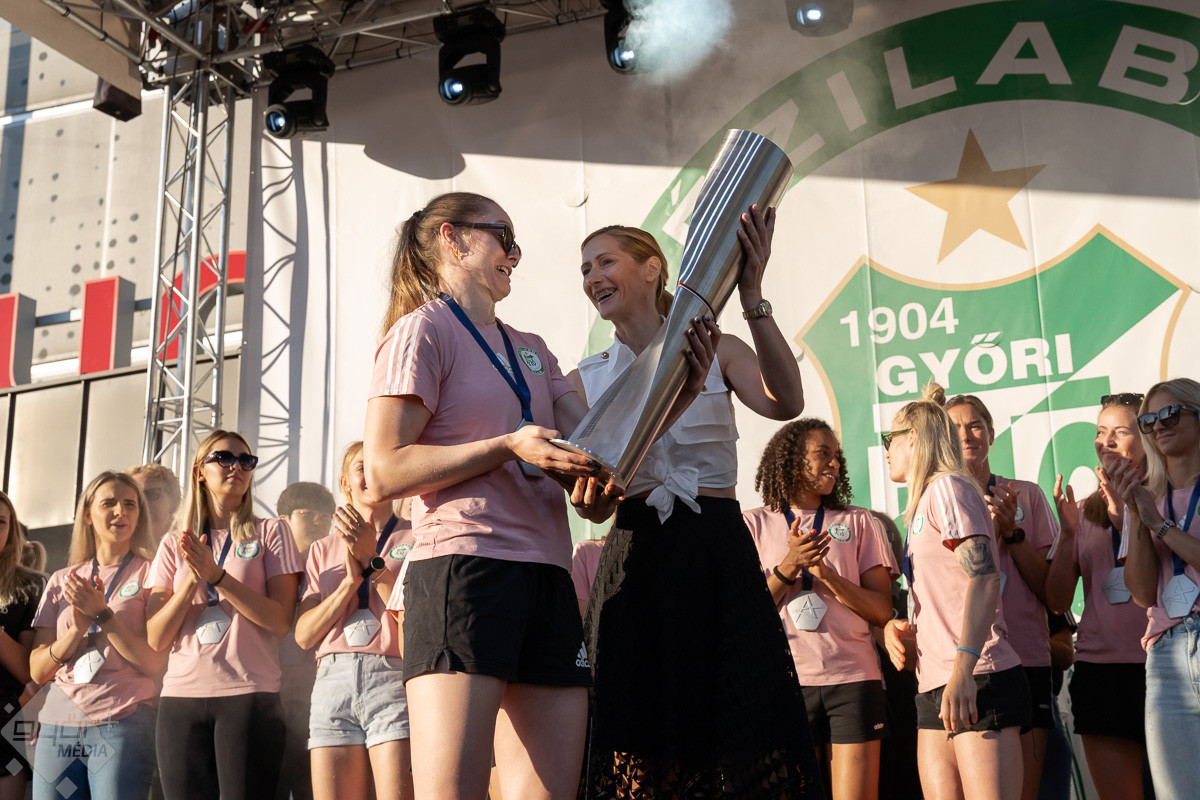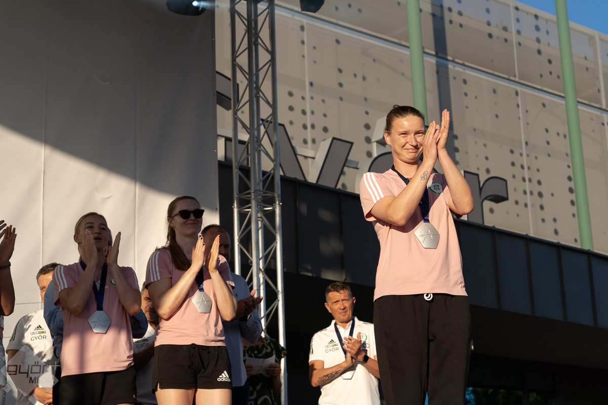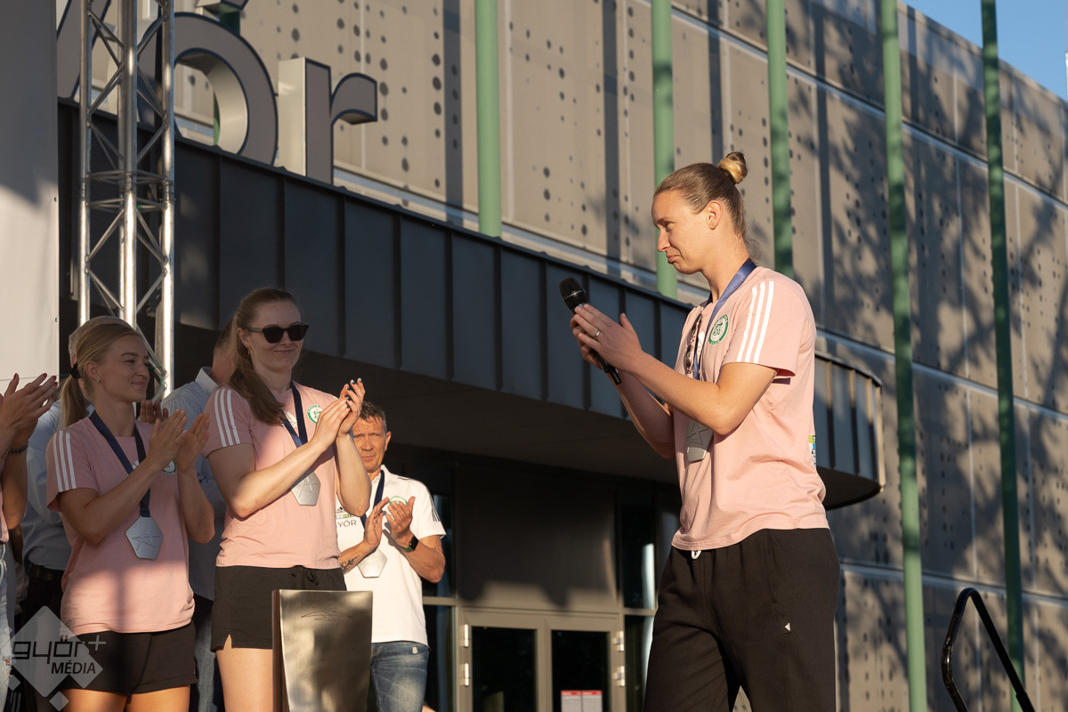 ,,Nagyon mélyen érintett, hogy nem sikerült megnyernünk a Bajnokok Ligája-döntőt. Nehéz időszakon vagyunk túl, de jó volt látni, hogy ebben az idényben végre ismét telt házas meccseket játszhattunk. Sok helyen elmondták már, de most is szeretném hangsúlyozni, ti vagytok a világ legjobb szurkolói – szólt az ünneplő drukkerekhez Görbicz Anita. – Óriási segítség, hogy ott vagytok mellettünk. Büszke vagyok a csapatra. Jövőre visszavágunk, három aranyérmet szeretnénk.”