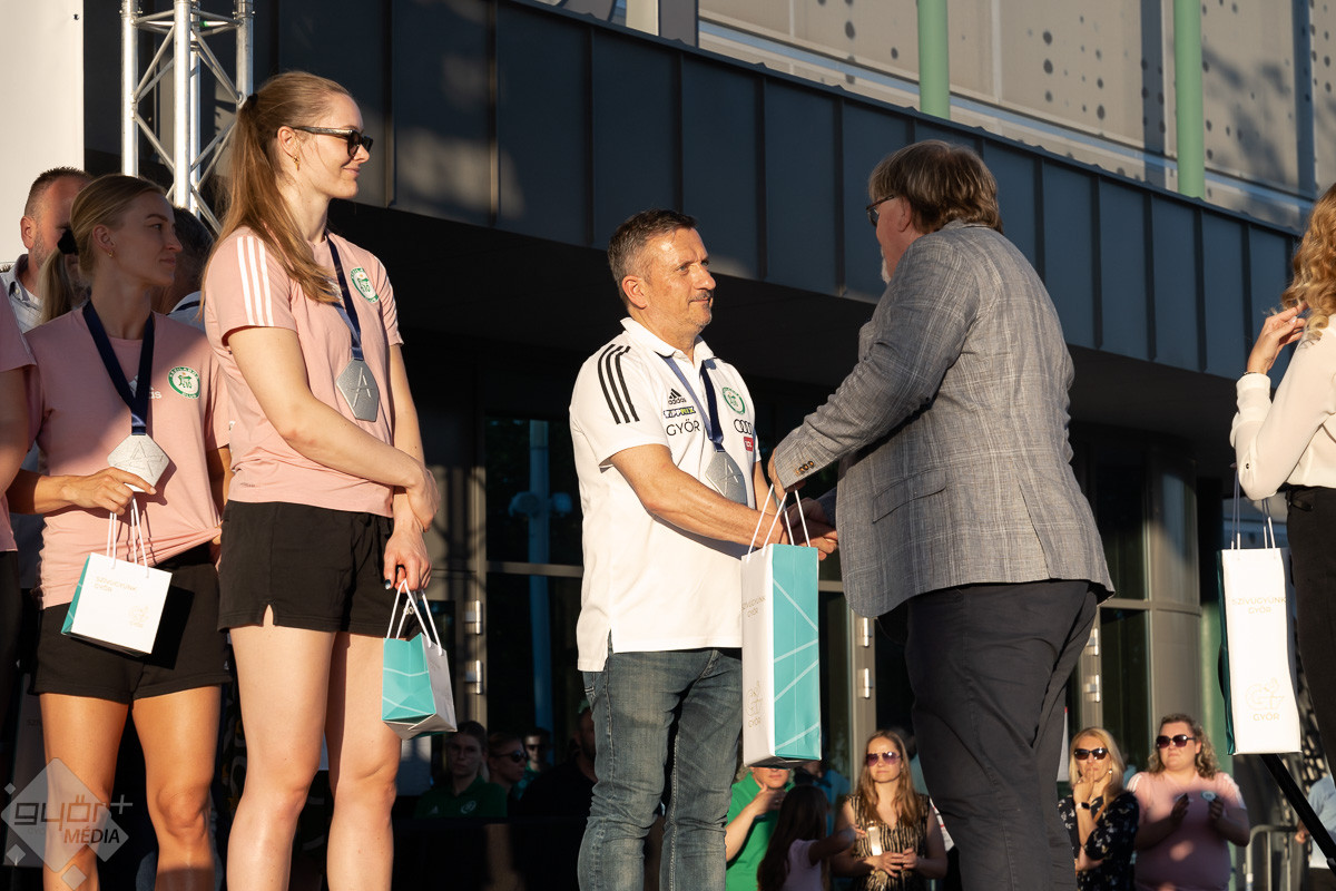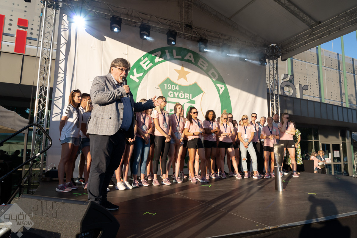 ,,Tavaly bronzérmet szerzett a csapat, idén pedig ezüstöt. Ez azt jelenti, hogy jövőre meg fogjuk nyerni a Bajnokok Ligáját – mondta optimistán a városvezető. – Jó Győrben élni, ez a legszebb város. Az Audi ETO pedig a legjobb női kézilabdacsapat a világon. A szurkolói is a legjobbak, kérem, a jövőben is biztassák az együttest. Az ETO teljesítménye mögött hatalmas munka van, gratulálok az elért eredményekhez.”