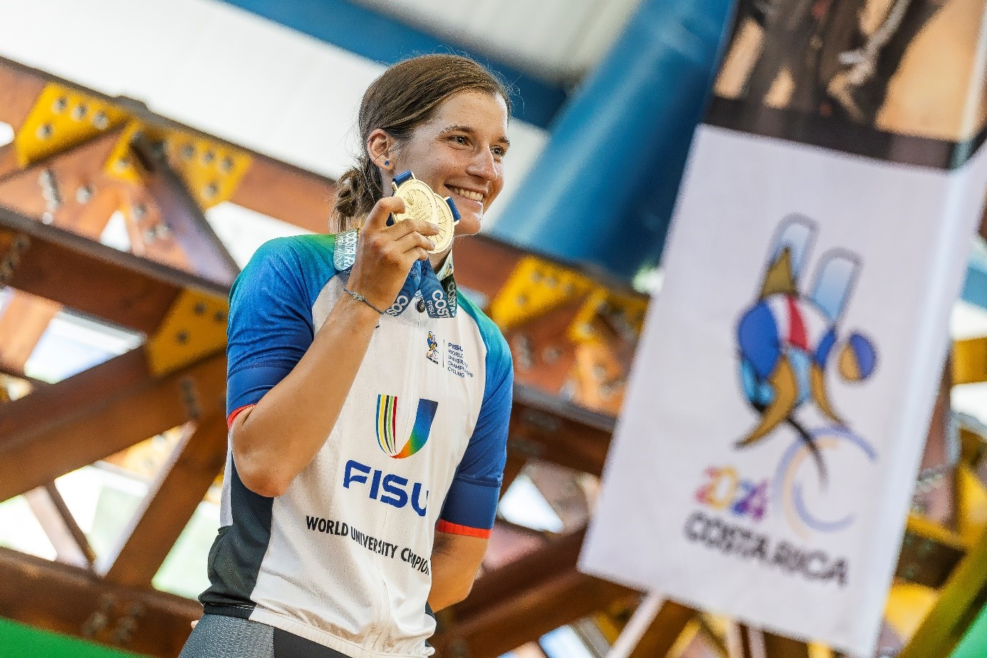 Zsankó Petra, a győri Széchenyi István Egyetem műszaki menedzser szakos hallgatója két aranyérmet és egy hatodik helyet szerzett a Costa Ricában megrendezett, június 2-án befejeződött FISU Egyetemi Kerékpáros-világbajnokságon. A sportoló a kritérium és az egyéni időfutam versenyszámokban győzedelmeskedett.